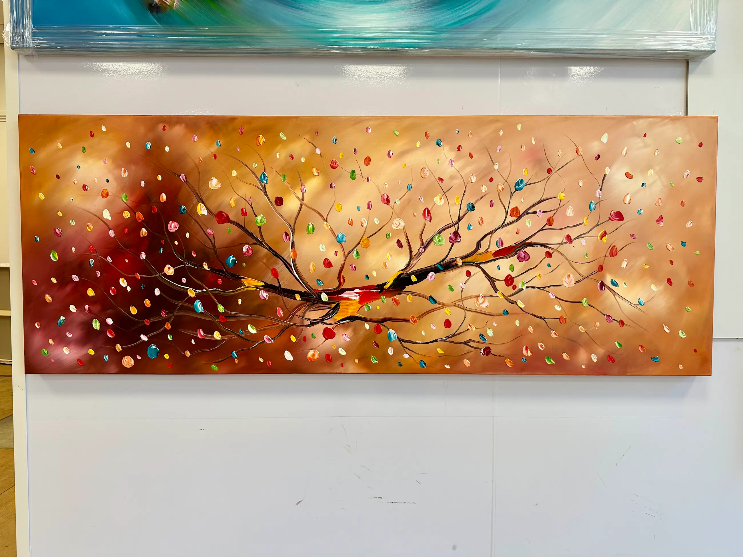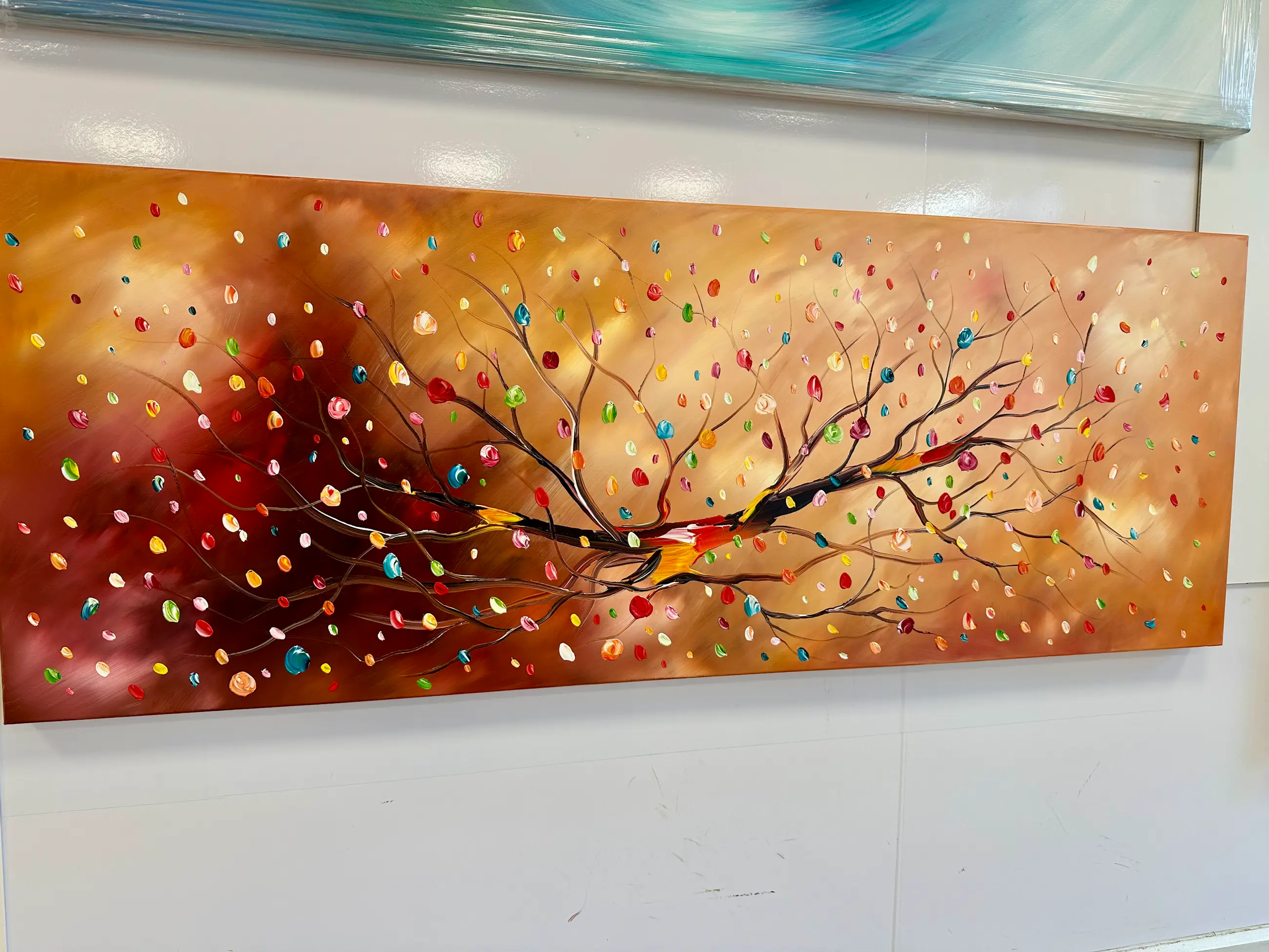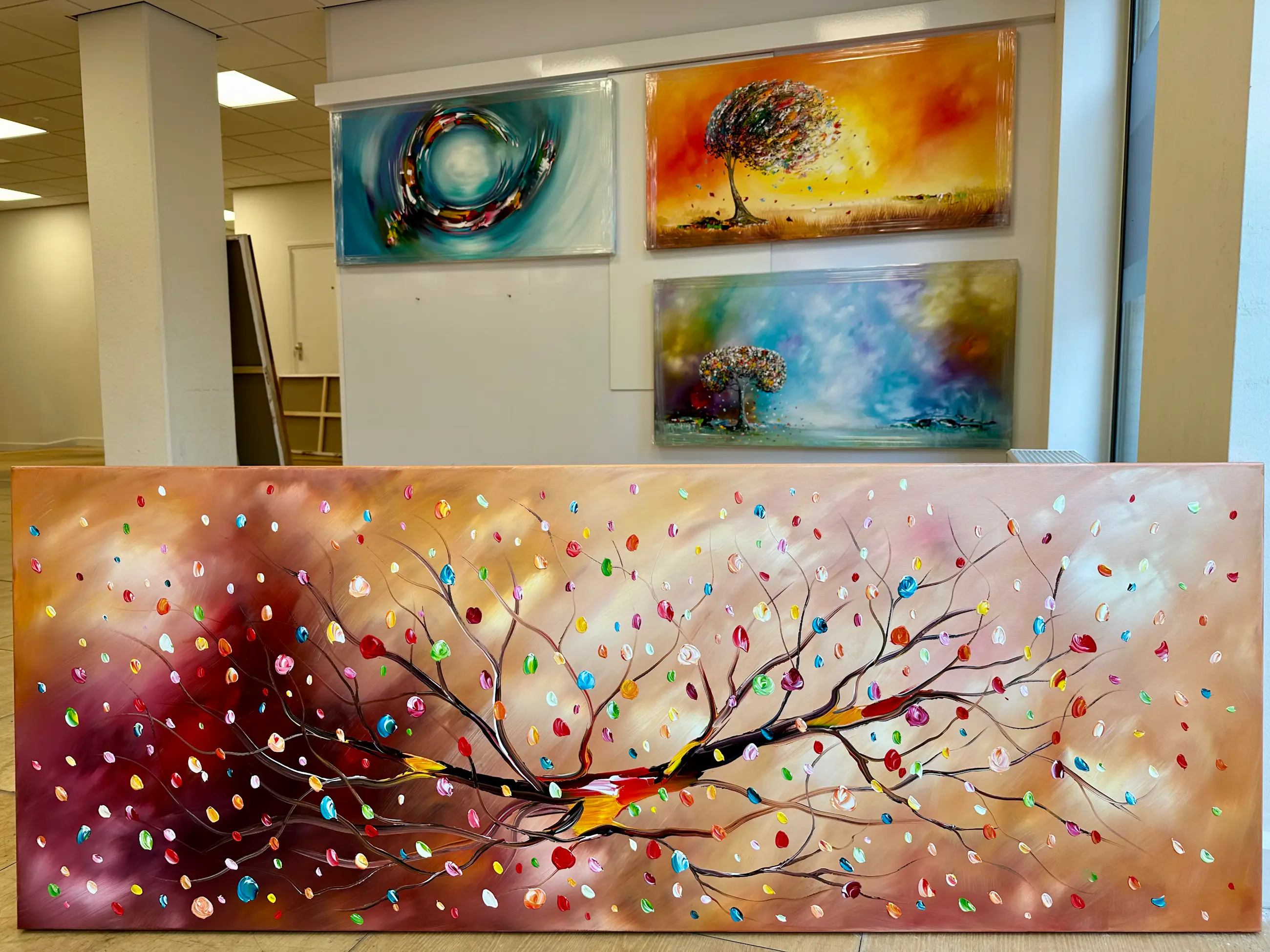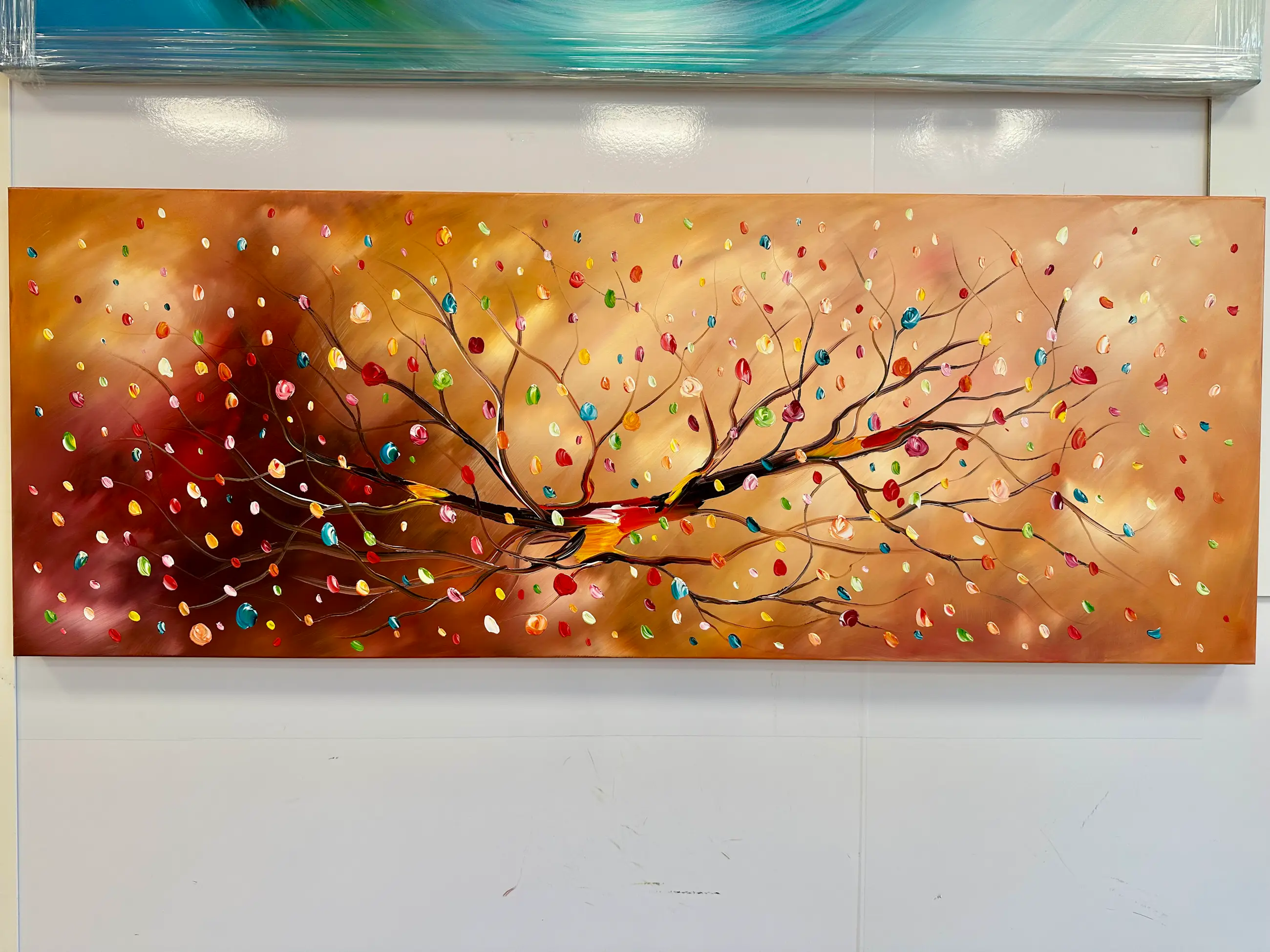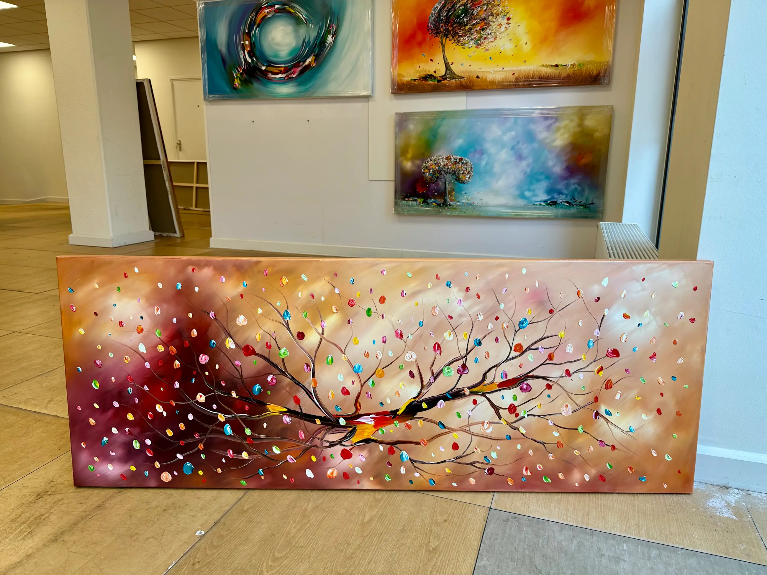 Origineel schilderij van kunstenaar Gena. Wordt geleverd met een certificaat van echtheid. Acrylverf Amsterdam op doek.Zijkanten zijn mee geschilderd, zodat geen lijst nodig direct op te hangen.Het schilderij is voorzien van een vernislaag, dus extra beschermd tegen stof, vuil en vochtinvloed! Formaat: 60x160cm 3D