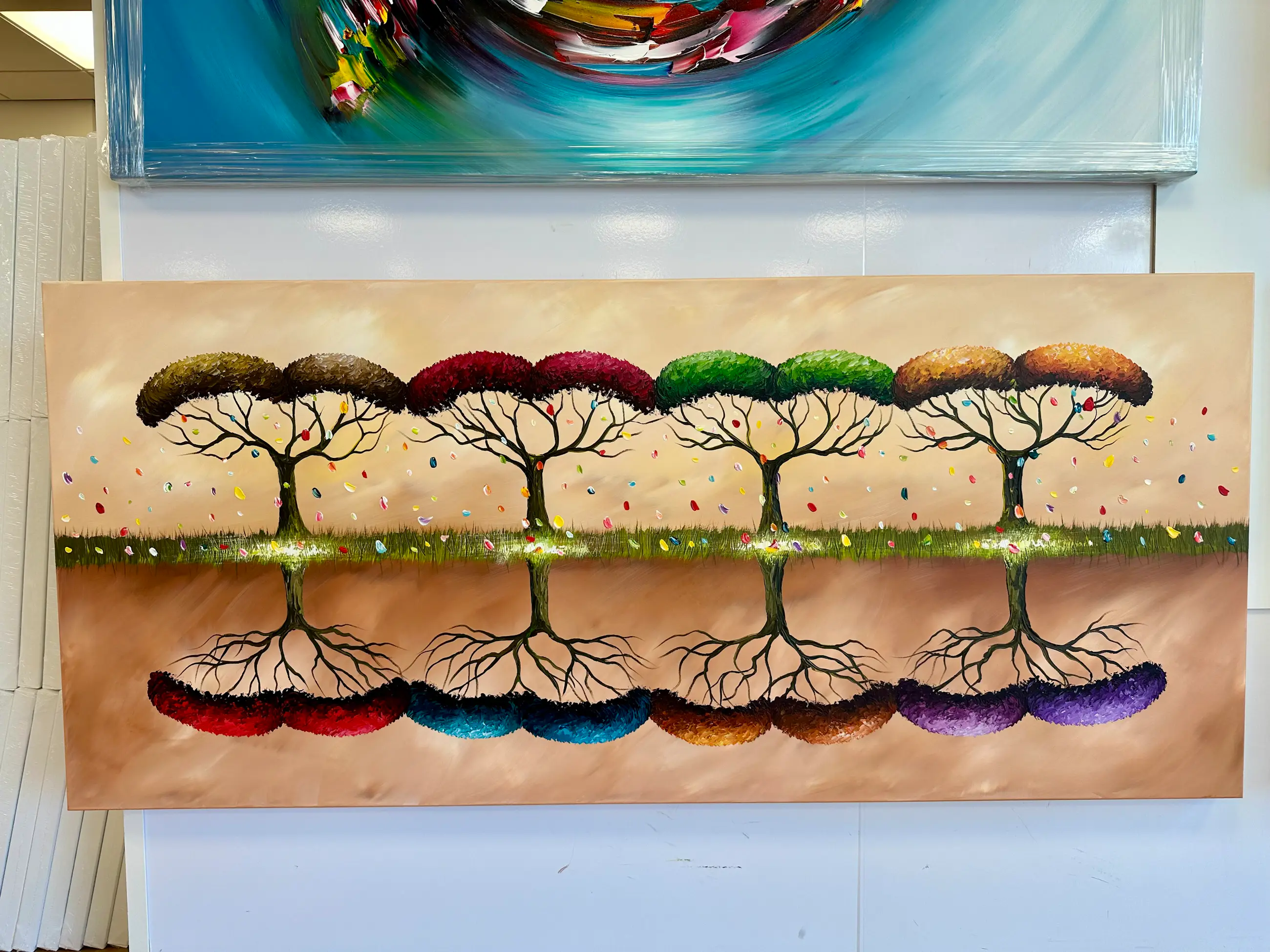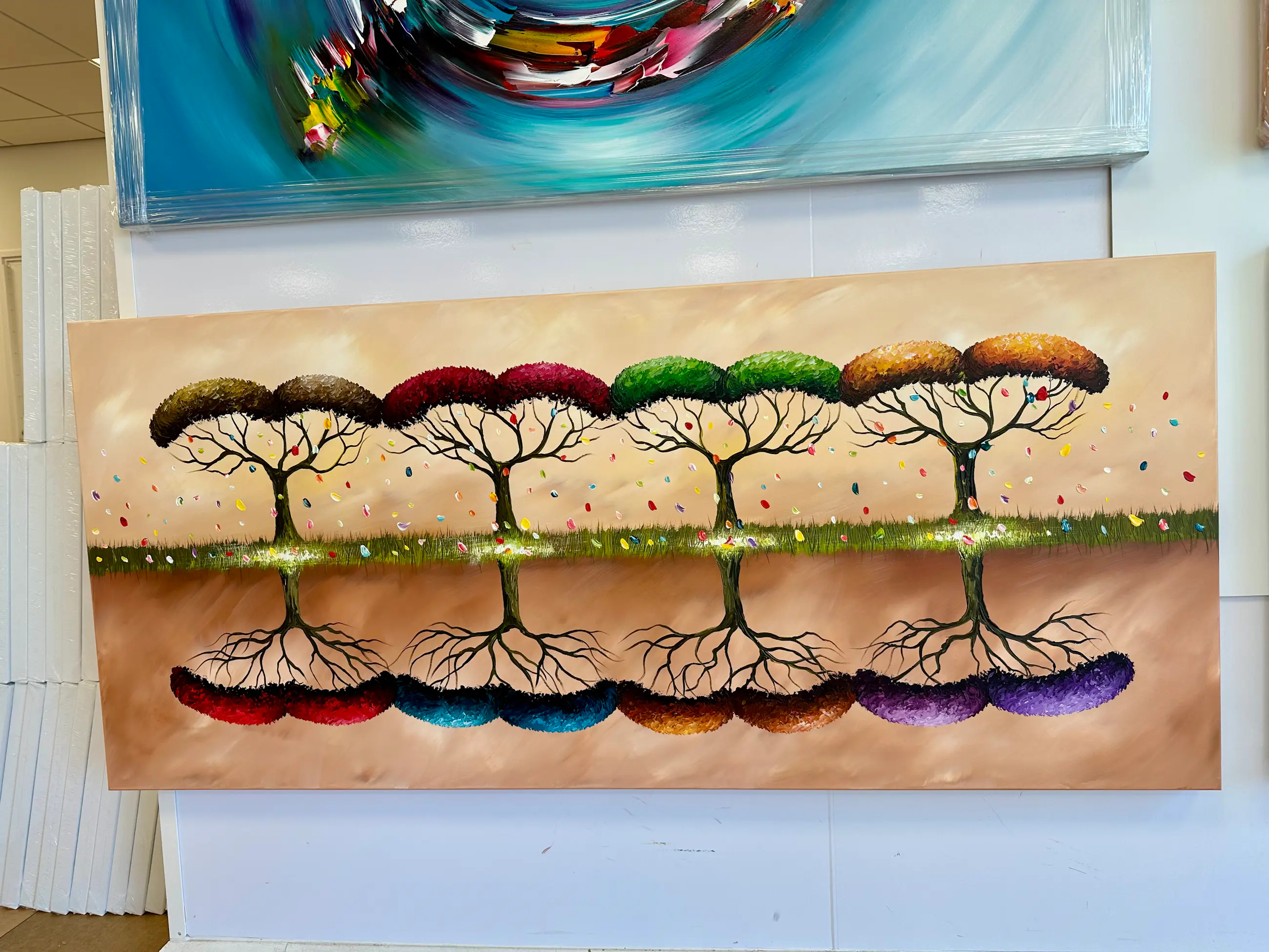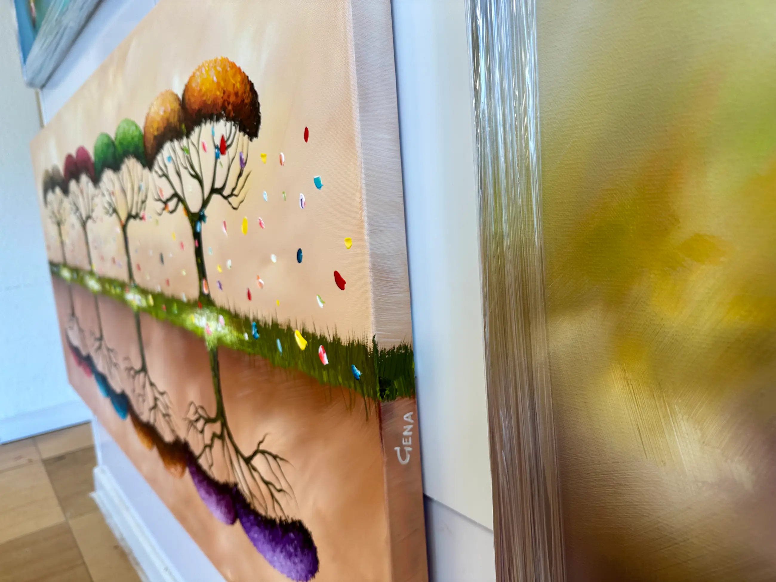Origineel schilderij van kunstenaar Gena. Wordt geleverd met een certificaat van echtheid. Acrylverf Amsterdam op doek.Zijkanten zijn mee geschilderd, zodat geen lijst nodig direct op te hangen.Het schilderij is voorzien van een vernislaag, dus extra beschermd tegen stof, vuil en vochtinvloed! Formaat: 80x180cm 3D