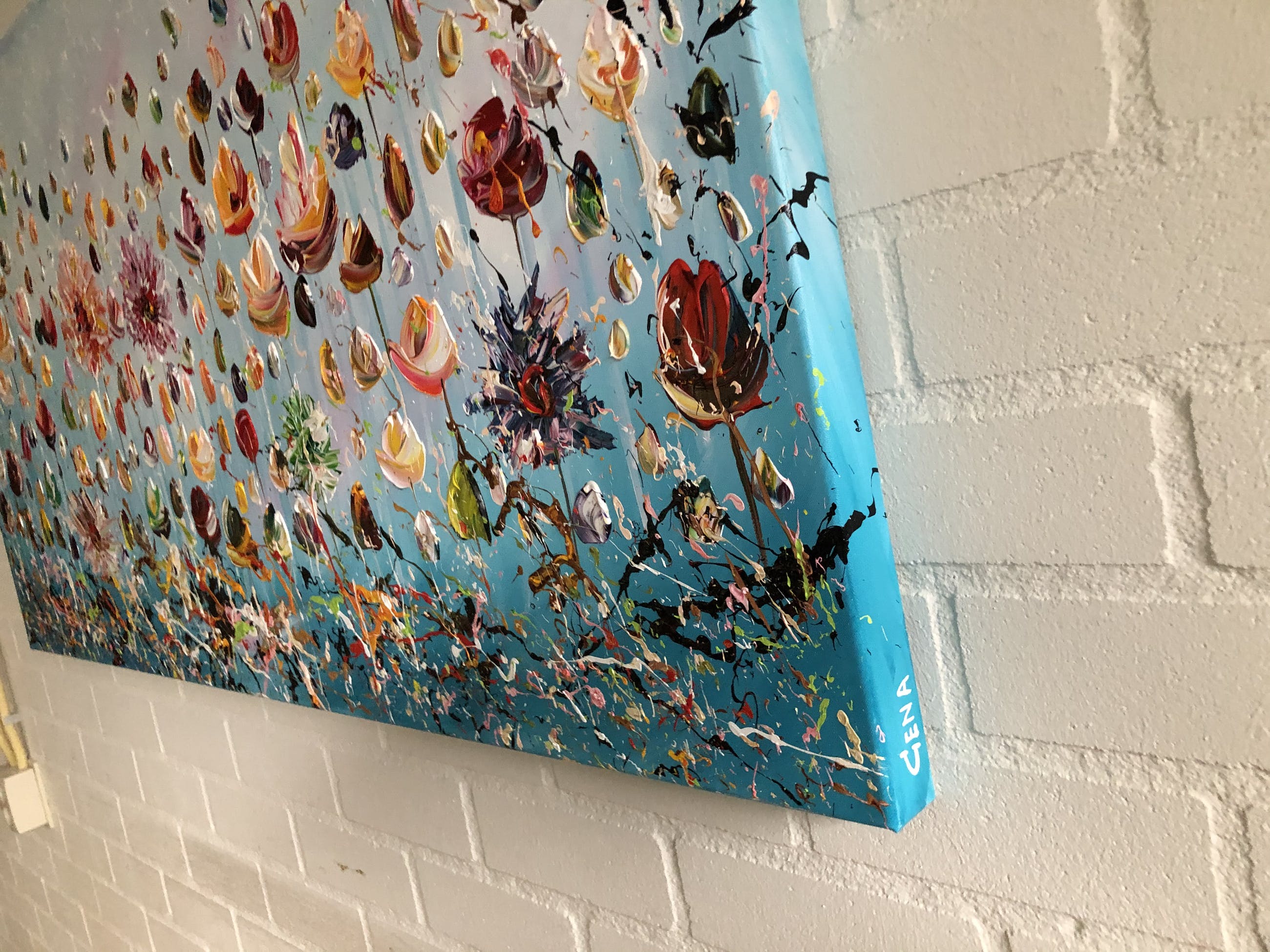 Origineel unique schilderij van kunstenaar Gena. Wordt geleverd met een certificaat van echtheid. Acrylverf Amsterdam op doek.Zijkanten zijn mee geschilderd, zodat geen lijst nodig direct op te hangen.Het schilderij is voorzien van een vernislaag, dus extra beschermd tegen stof, vuil en vochtinvloed! Formaat : 70x140cm3D