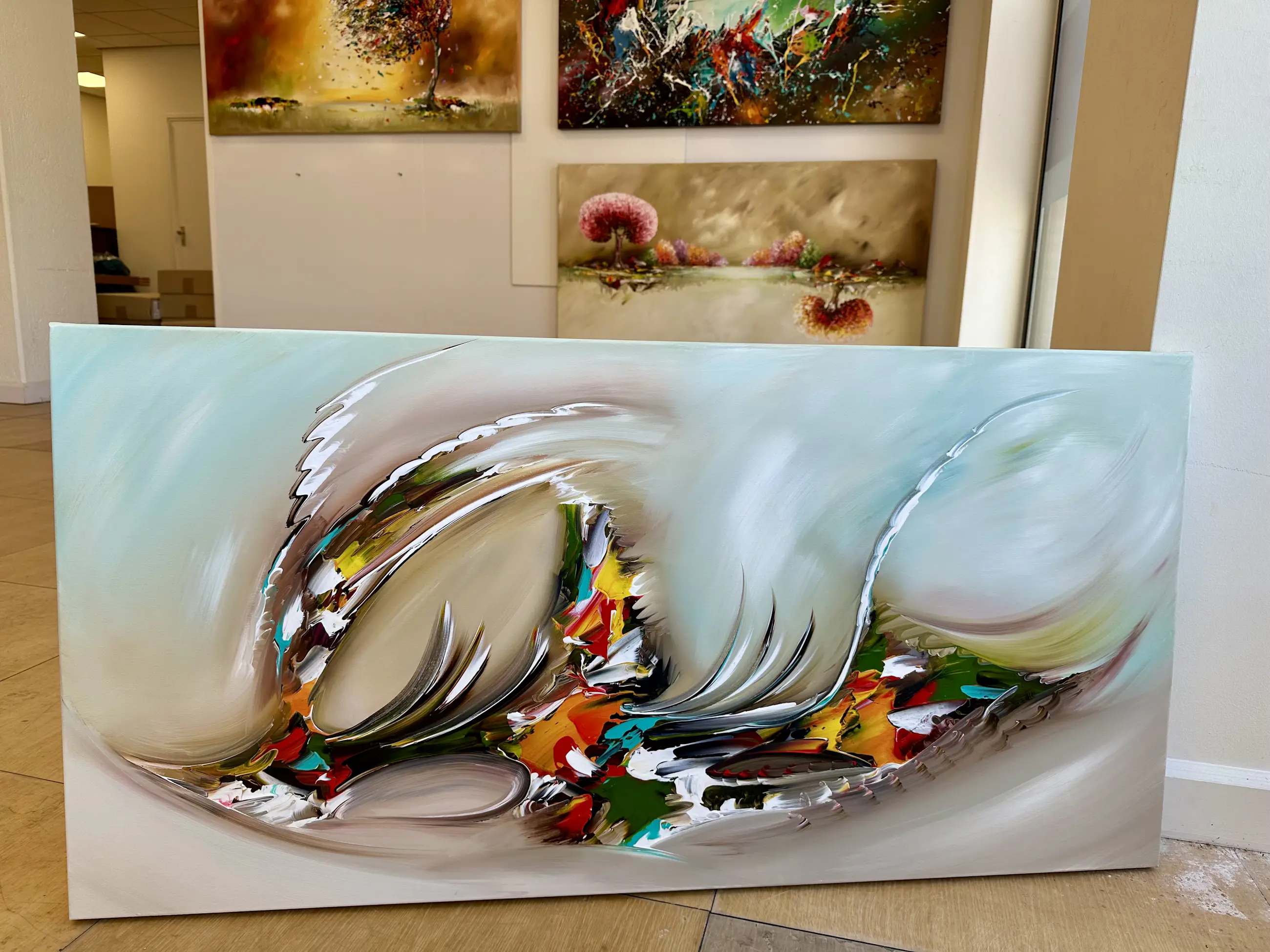 Origineel schilderij van kunstenaar Gena. Wordt geleverd met een certificaat van echtheid. Acrylverf Amsterdam op doek.Zijkanten zijn mee geschilderd, zodat geen lijst nodig direct op te hangen.Het schilderij is voorzien van een vernislaag, dus extra beschermd tegen stof, vuil en vochtinvloed! Formaat: 60x120cm 3D