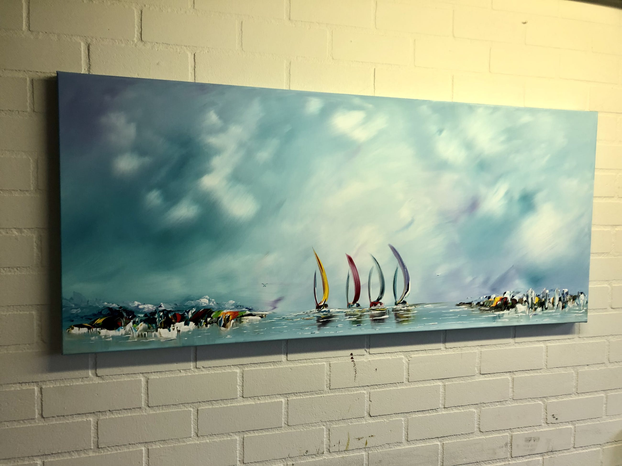Origineel schilderij van kunstenaar Gena. Wordt geleverd met een certificaat van echtheid. Acrylverf Amsterdam op doek.Zijkanten zijn mee geschilderd, zodat geen lijst nodig direct op te hangen.Het schilderij is voorzien van een vernislaag, dus extra beschermd tegen stof, vuil en vochtinvloed! Formaat 60x140cm3D