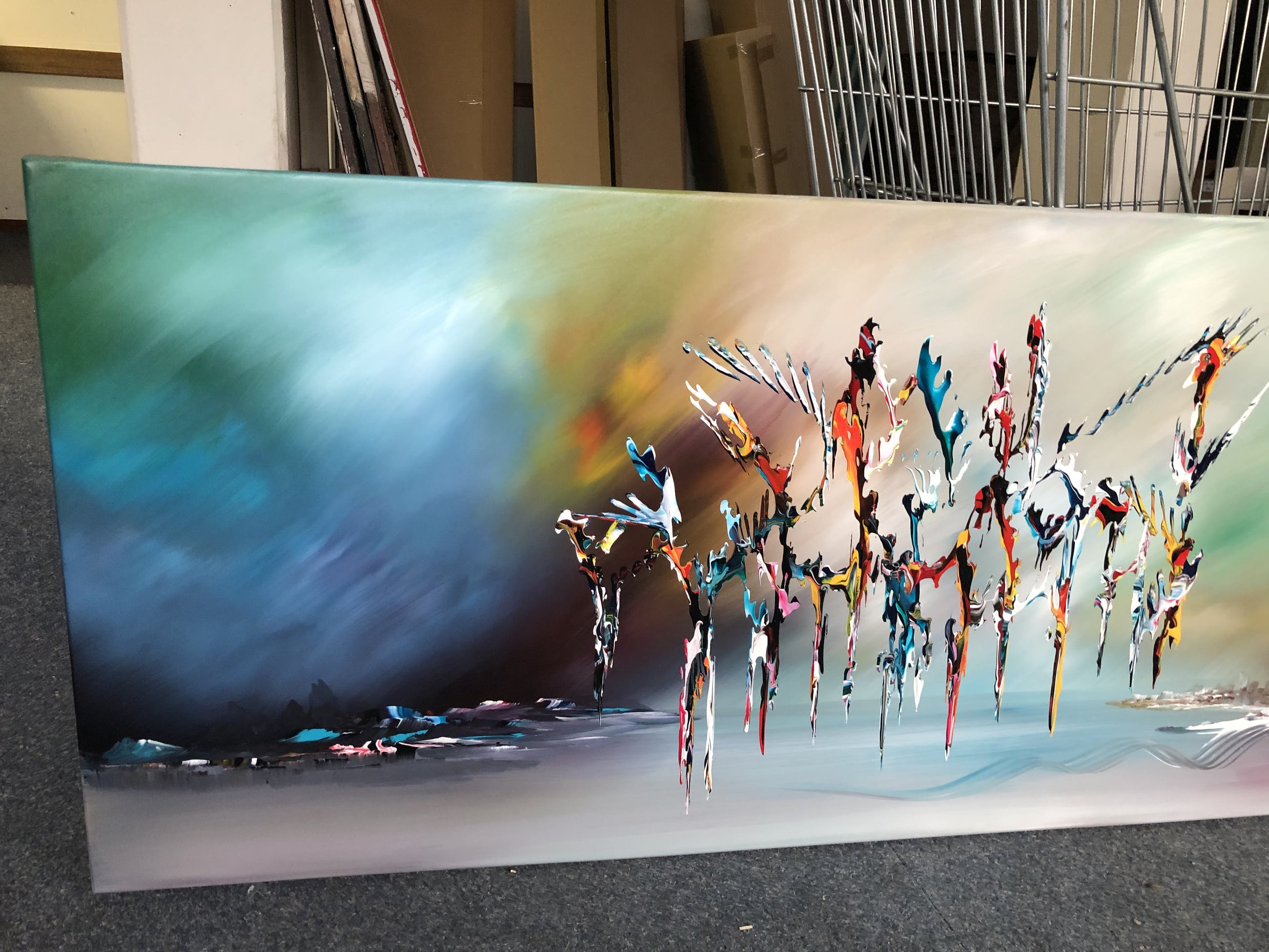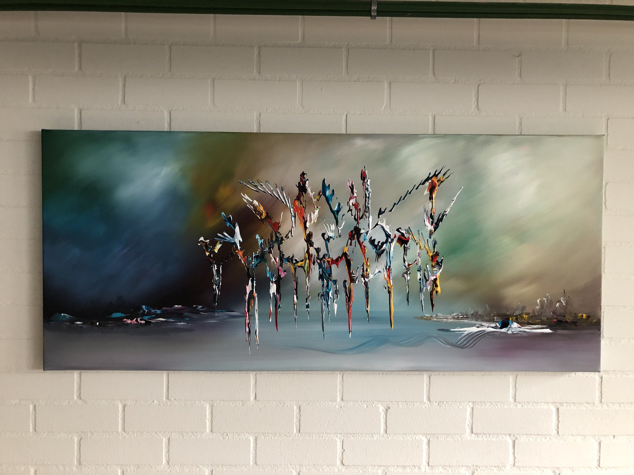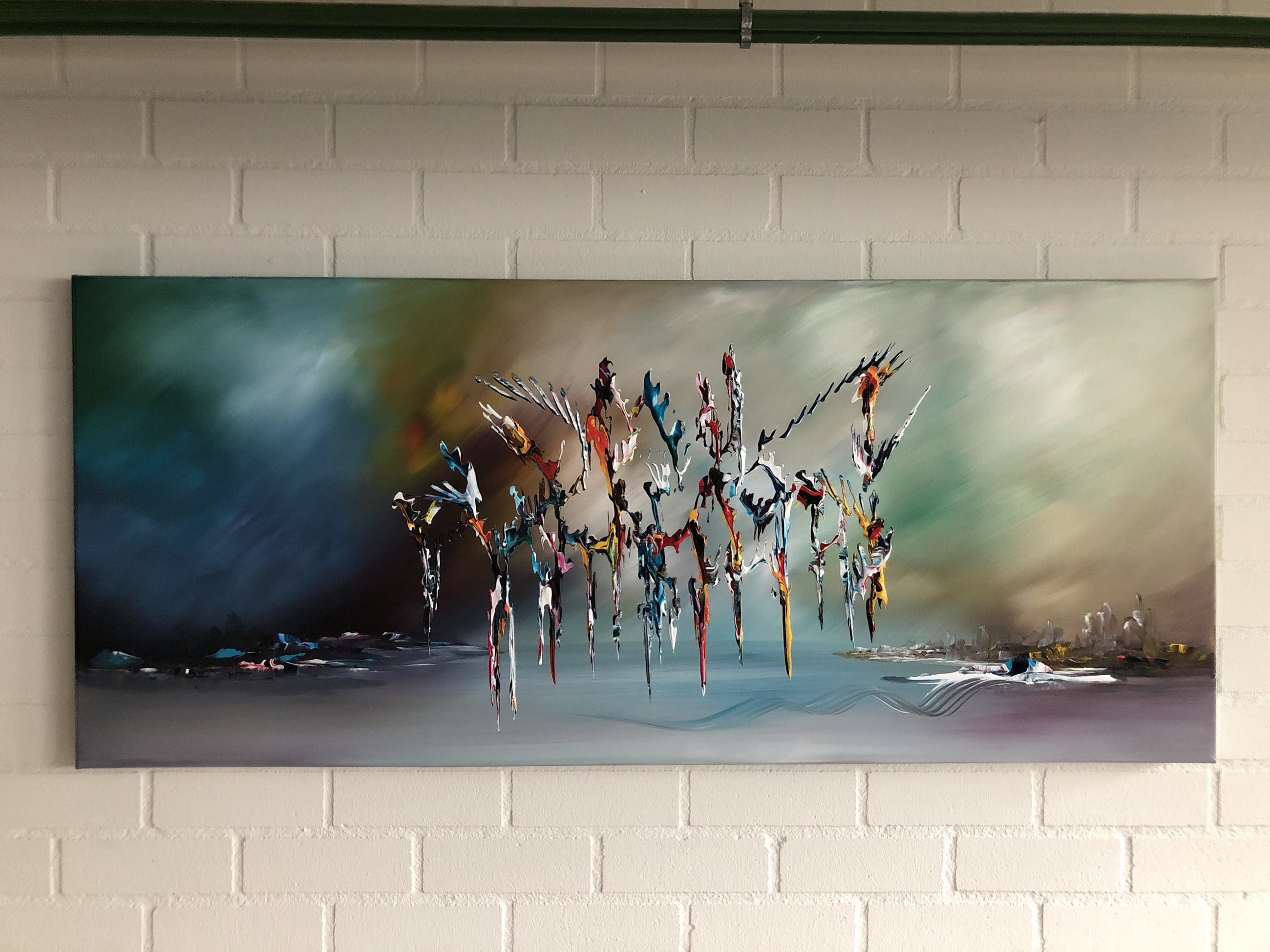 Origineel unique schilderij van kunstenaar Gena. Wordt geleverd met een certificaat van echtheid. Acrylverf Amsterdam op doek.Zijkanten zijn mee geschilderd, zodat geen lijst nodig direct op te hangen.Het schilderij is voorzien van een vernislaag, dus extra beschermd tegen stof, vuil en vochtinvloed! Formaat : 60x140cm 3D