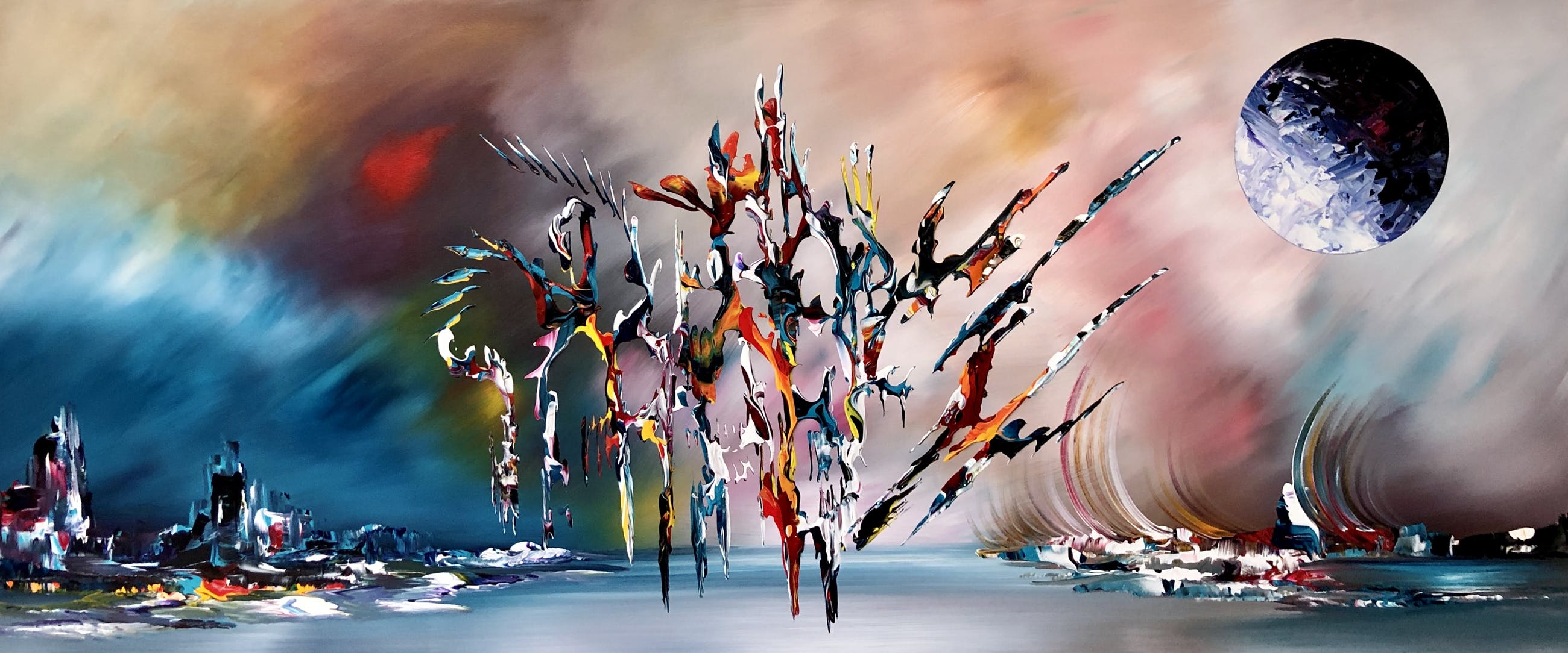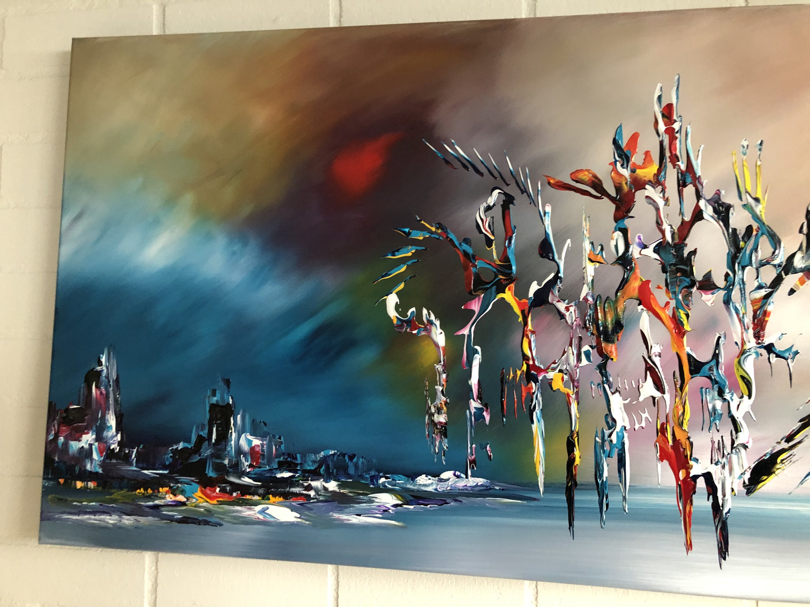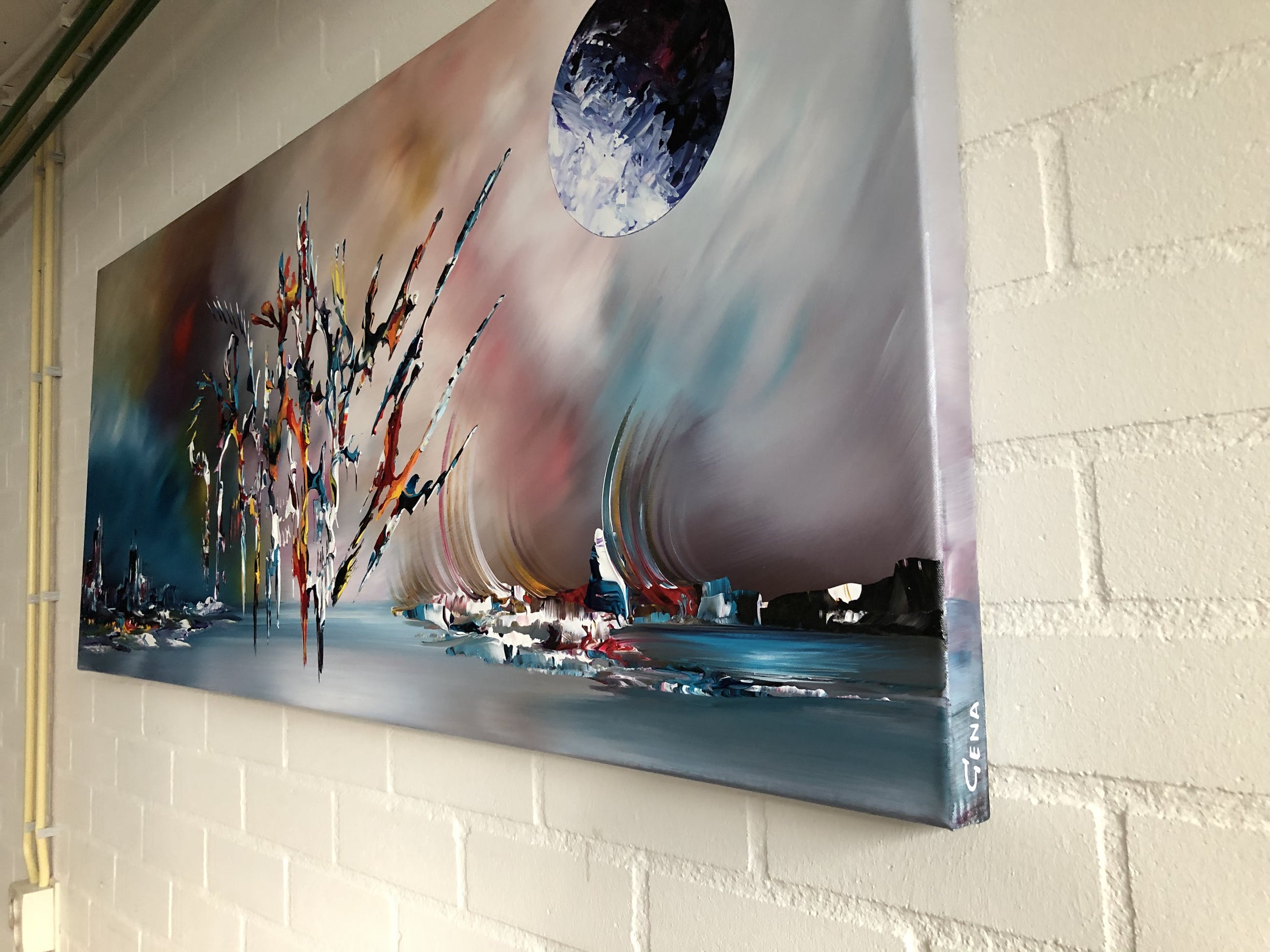 Origineel unique schilderij van kunstenaar Gena. Wordt geleverd met een certificaat van echtheid. Acrylverf Amsterdam op doek.Zijkanten zijn mee geschilderd, zodat geen lijst nodig direct op te hangen.Het schilderij is voorzien van een vernislaag, dus extra beschermd tegen stof, vuil en vochtinvloed! Formaat : 60x140cm 3D