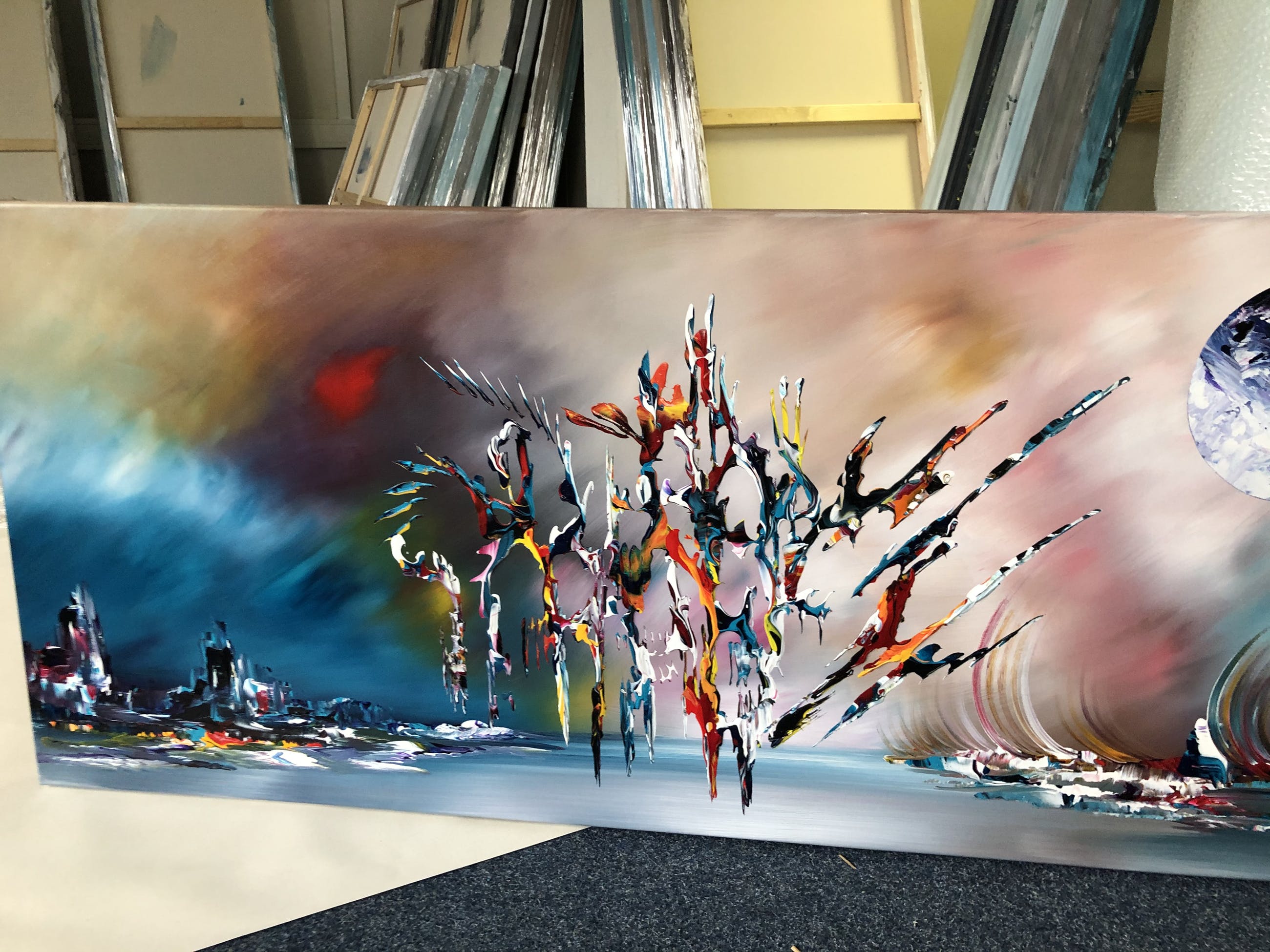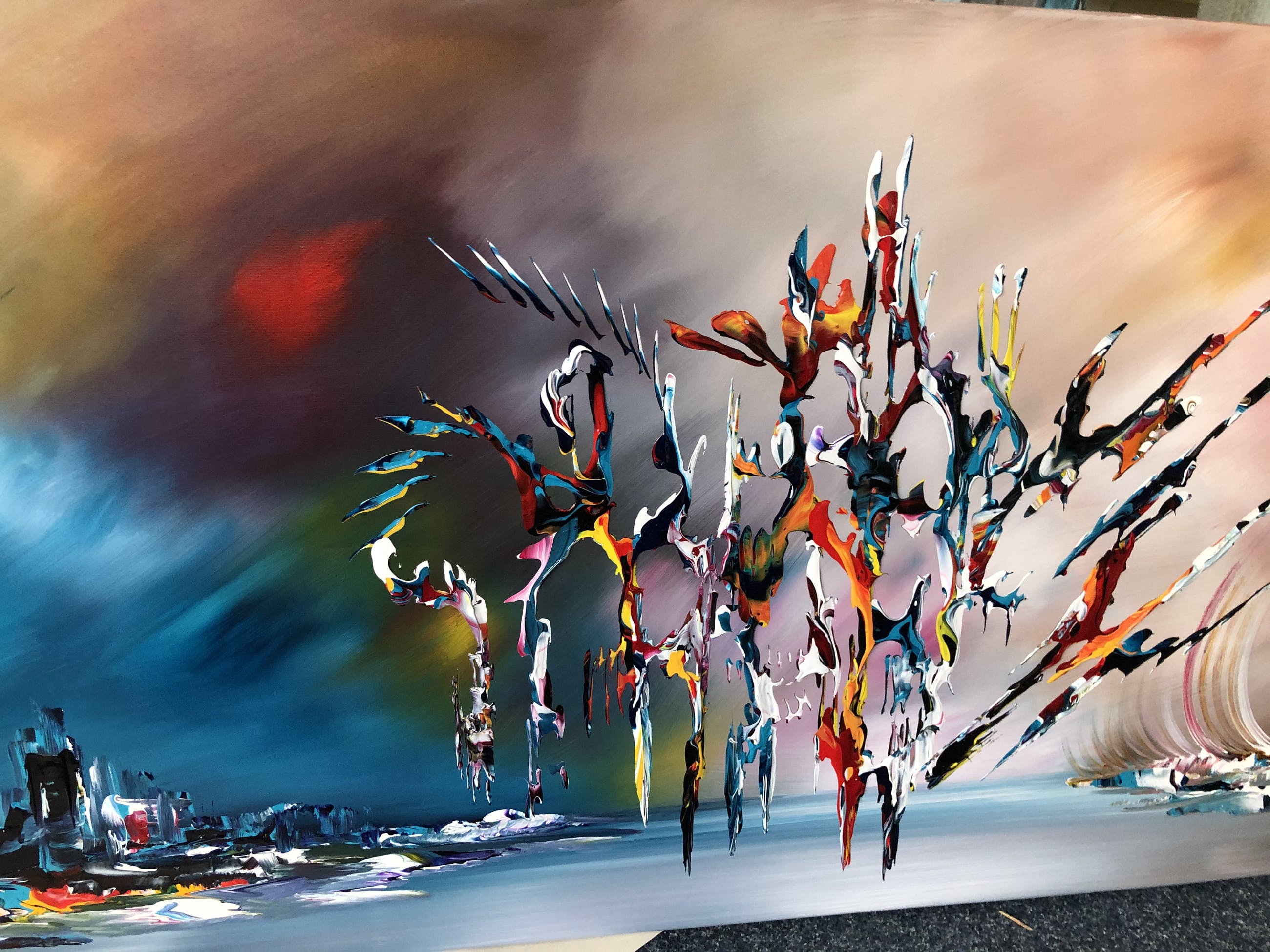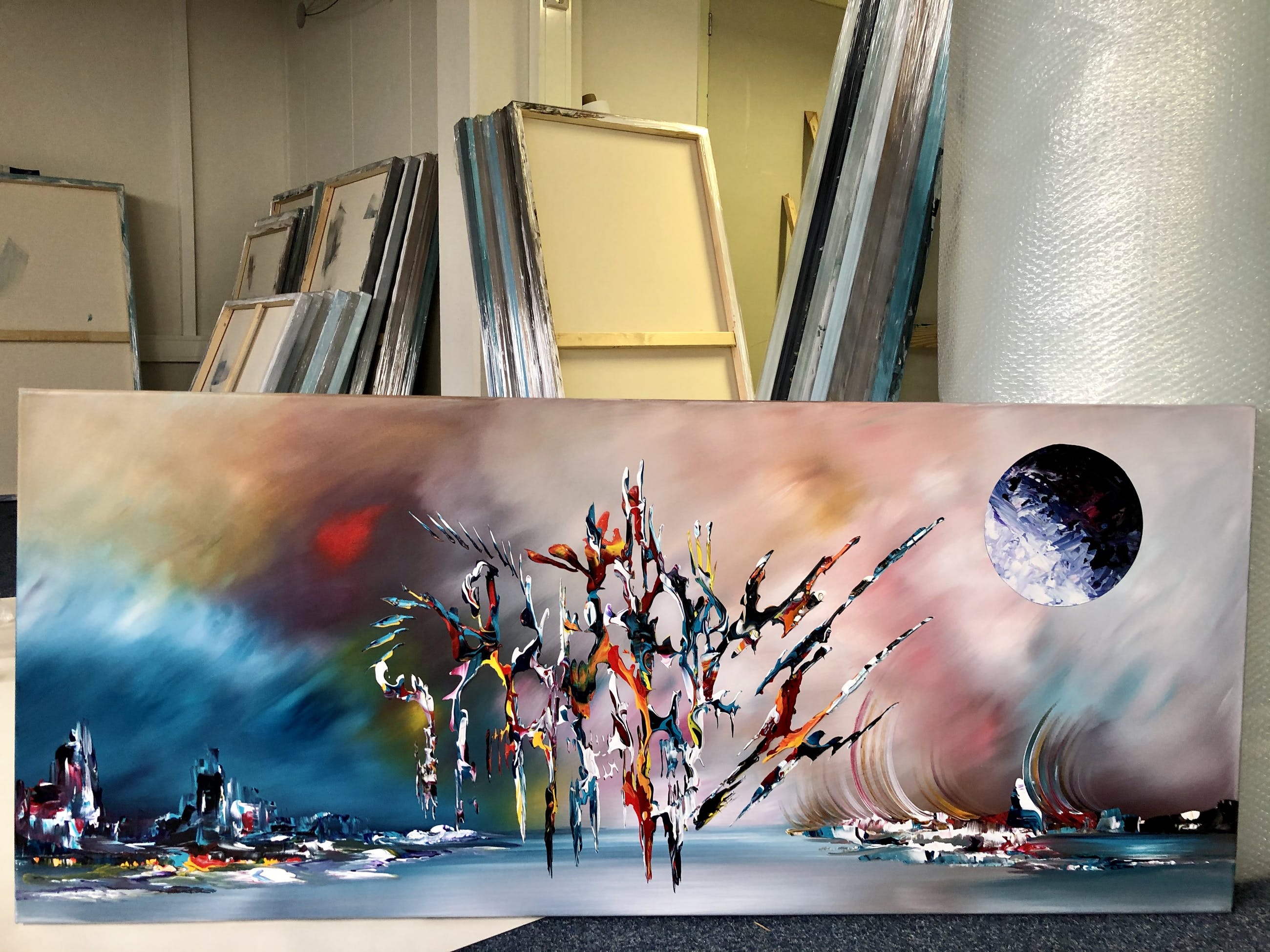 Origineel unique schilderij van kunstenaar Gena. Wordt geleverd met een certificaat van echtheid. Acrylverf Amsterdam op doek.Zijkanten zijn mee geschilderd, zodat geen lijst nodig direct op te hangen.Het schilderij is voorzien van een vernislaag, dus extra beschermd tegen stof, vuil en vochtinvloed! Formaat : 60x140cm 3D