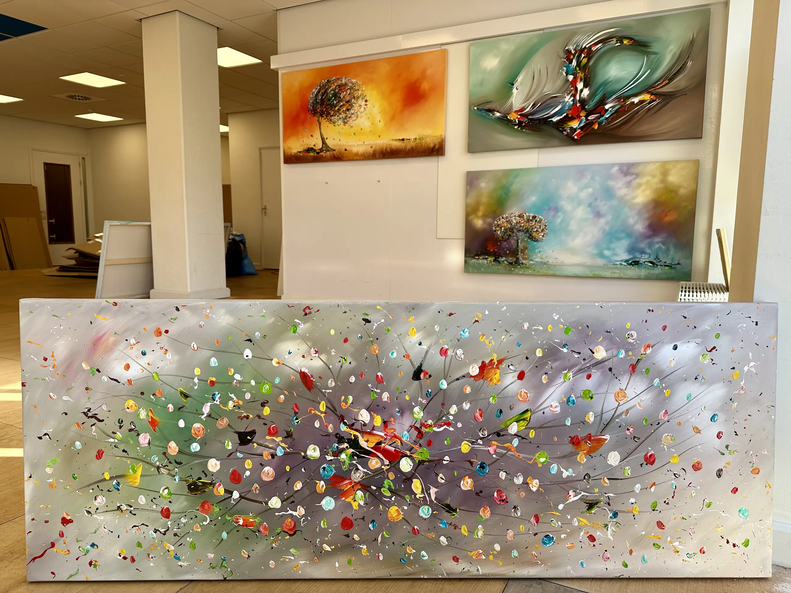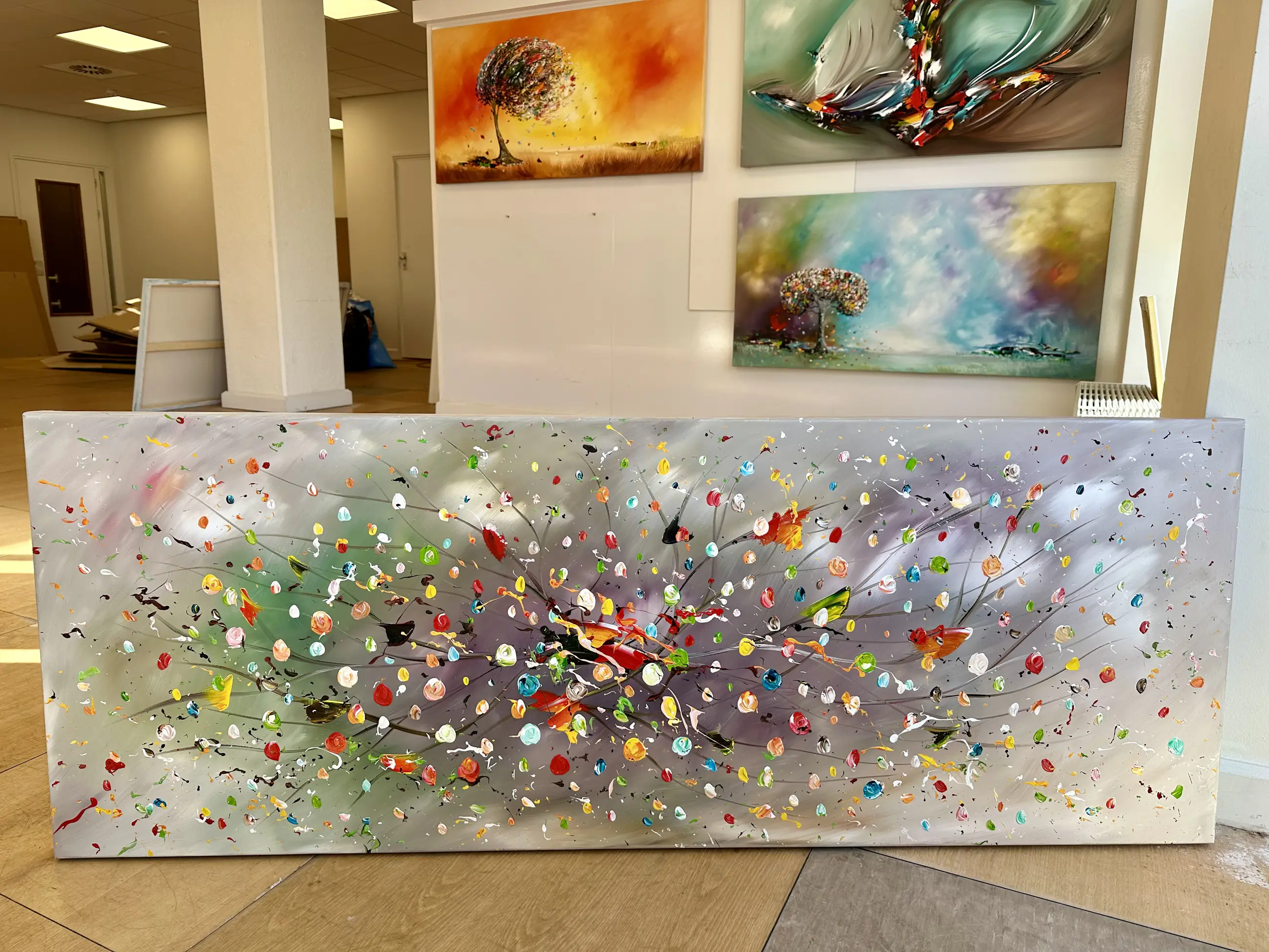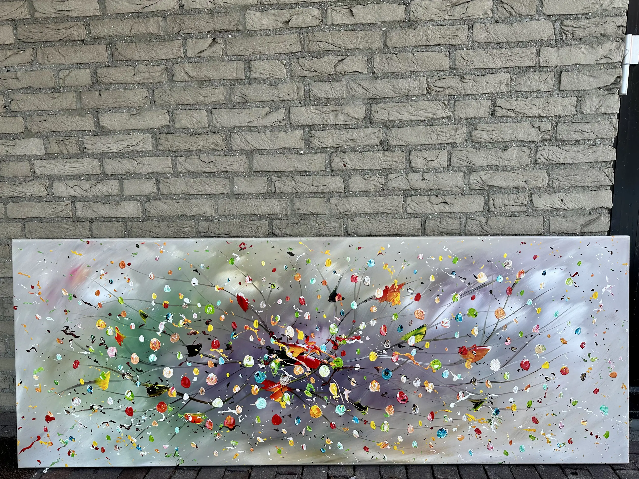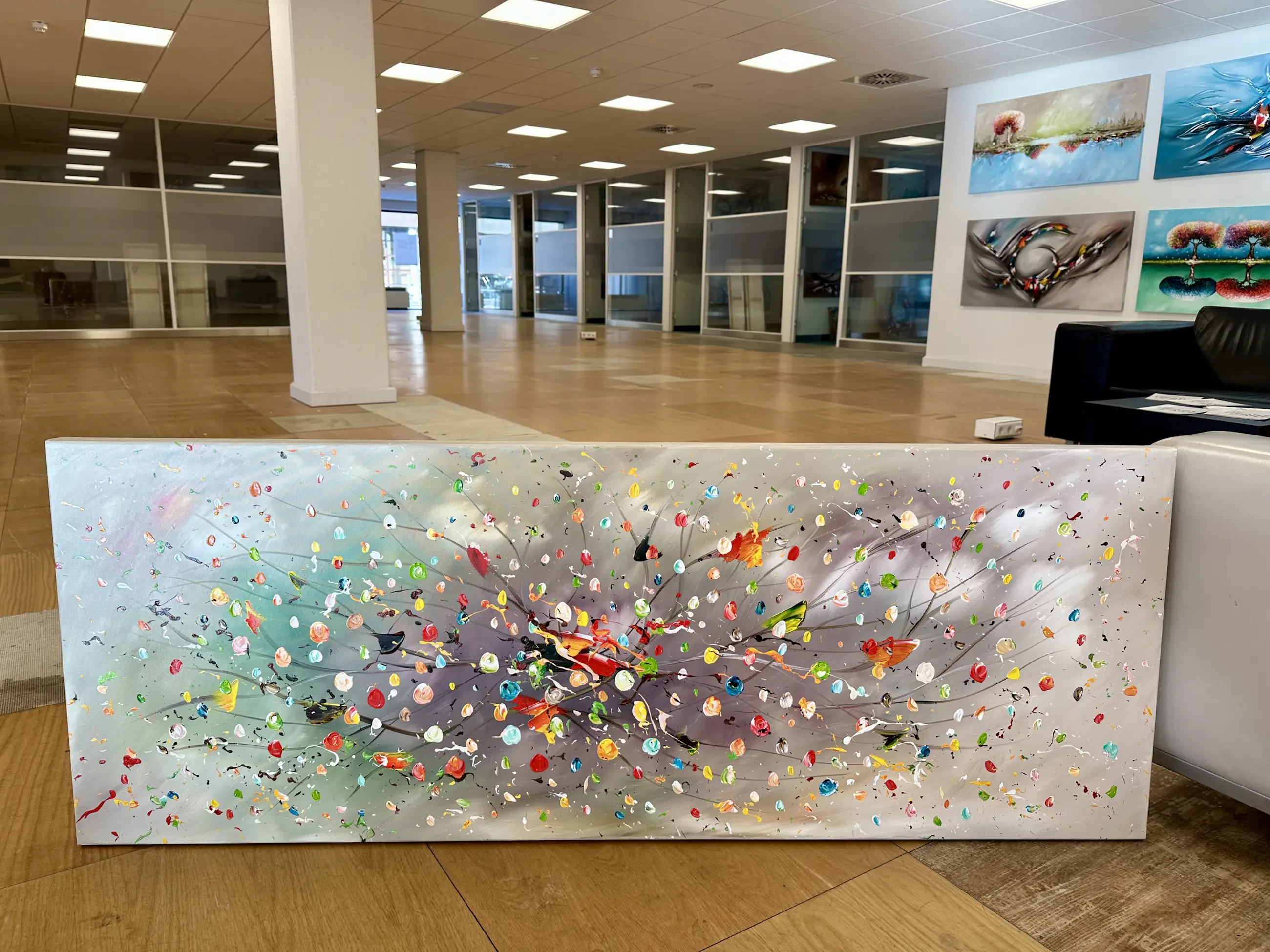 Origineel schilderij van kunstenaar Gena. Wordt geleverd met een certificaat van echtheid. Acrylverf Amsterdam op doek.Zijkanten zijn mee geschilderd, zodat geen lijst nodig direct op te hangen.Het schilderij is voorzien van een vernislaag, dus extra beschermd tegen stof, vuil en vochtinvloed! Formaat: 60x160cm 3D
