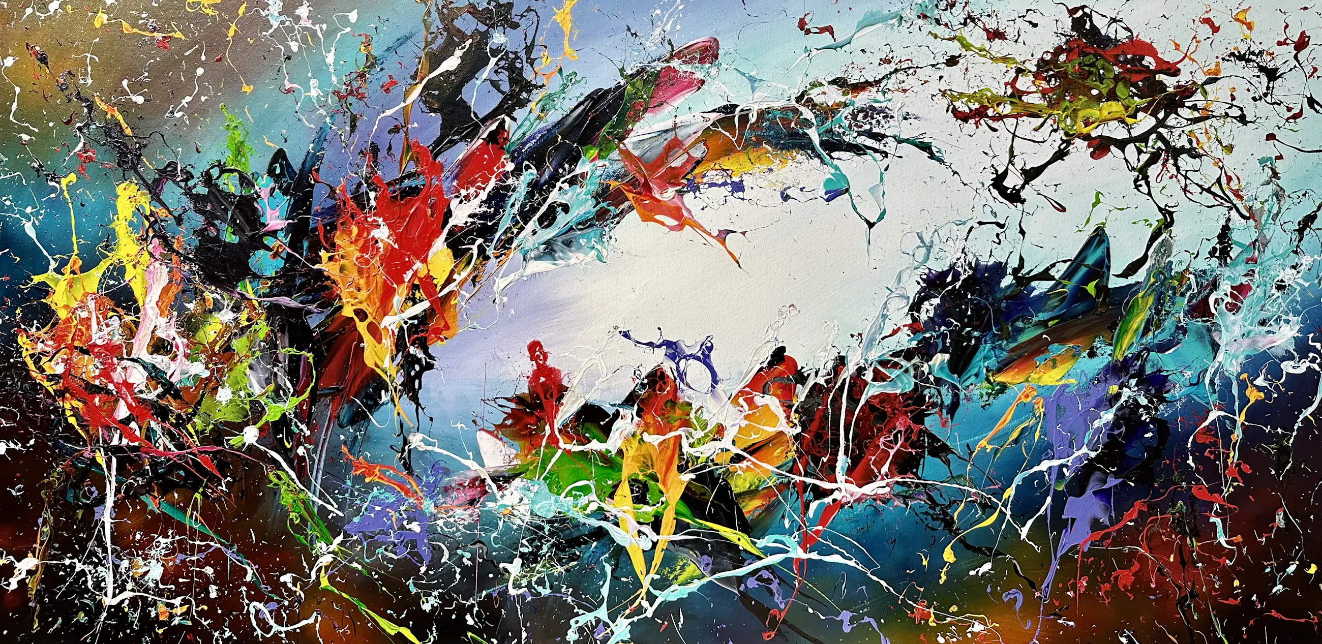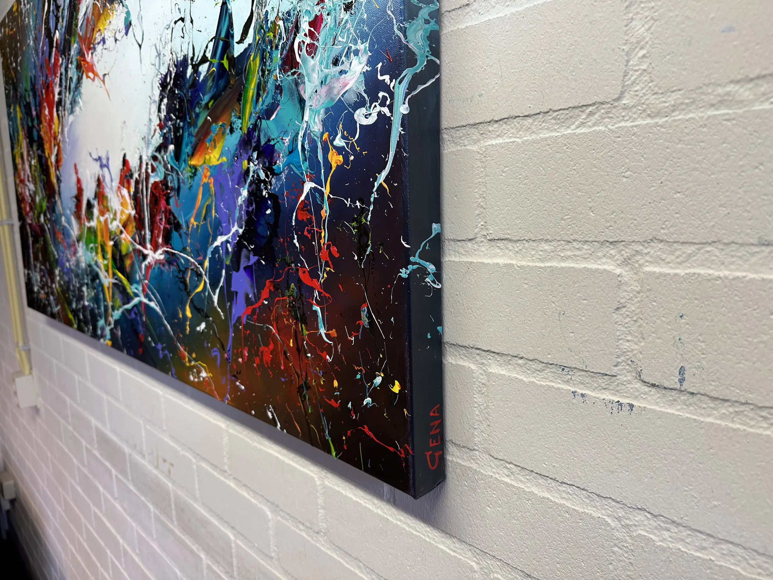 Origineel schilderij van kunstenaar Gena. Wordt geleverd met een certificaat van echtheid. Acrylverf Amsterdam op doek.Zijkanten zijn mee geschilderd, zodat geen lijst nodig direct op te hangen.Het schilderij is voorzien van een vernislaag, dus extra beschermd tegen stof, vuil en vochtinvloed! Formaat: 70x140cm 3D