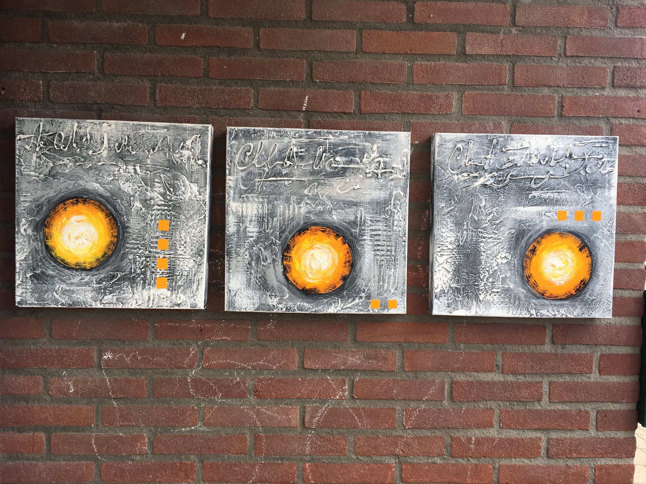 Origineel werk van kunstenaar Gena. Wordt geleverd met een certificaat van echtheid. Acrylverf op doek.Zijkanten zijn mee geschilderd, zodat geen lijst nodig - direct op te hangen.Het schilderij is voorzien van een vernislaag, dus extra beschermd tegen stof, vuil en vochtinvloed! Formaat : 3 st. x 40 x 40 cm, 3D.