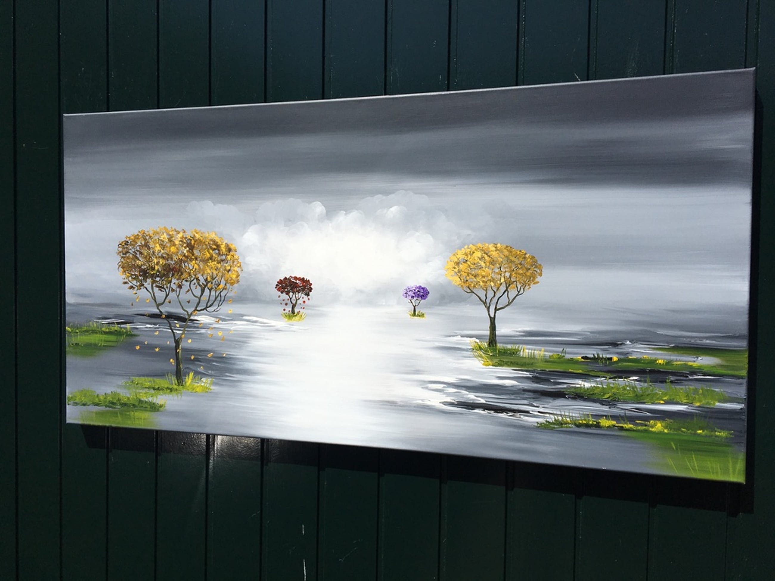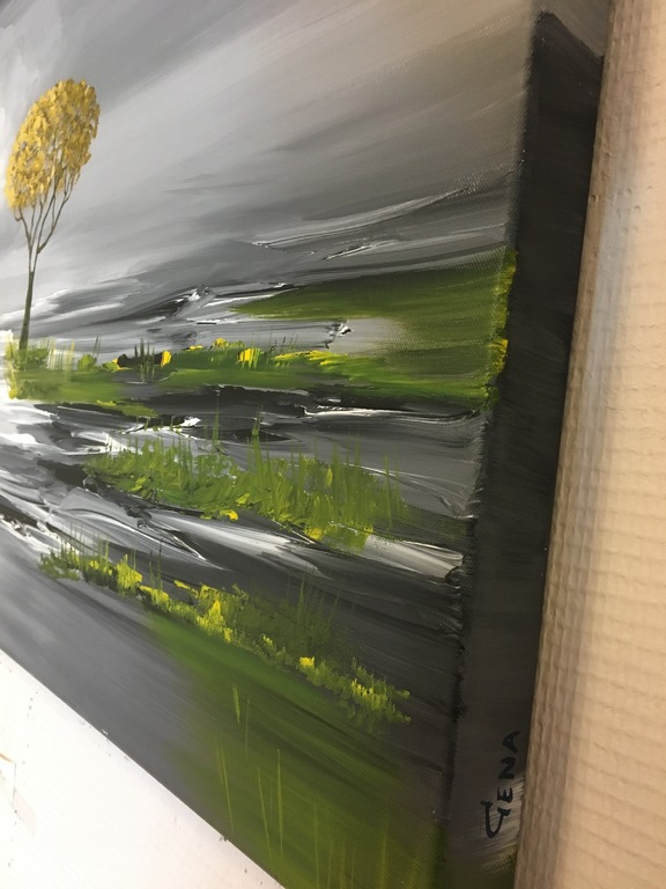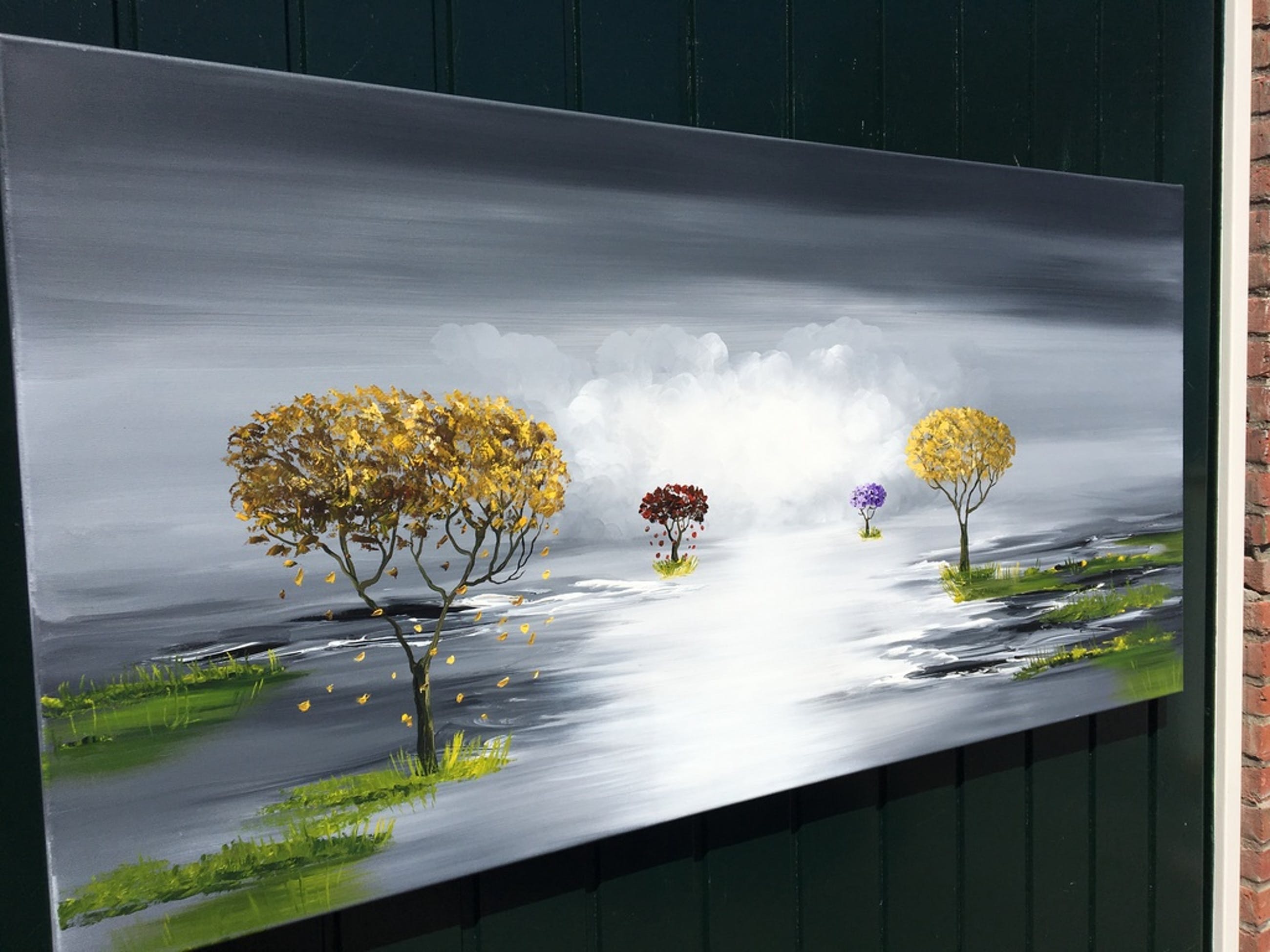 Acrylverv op doek, zijkanten zijn meegeschilderd.