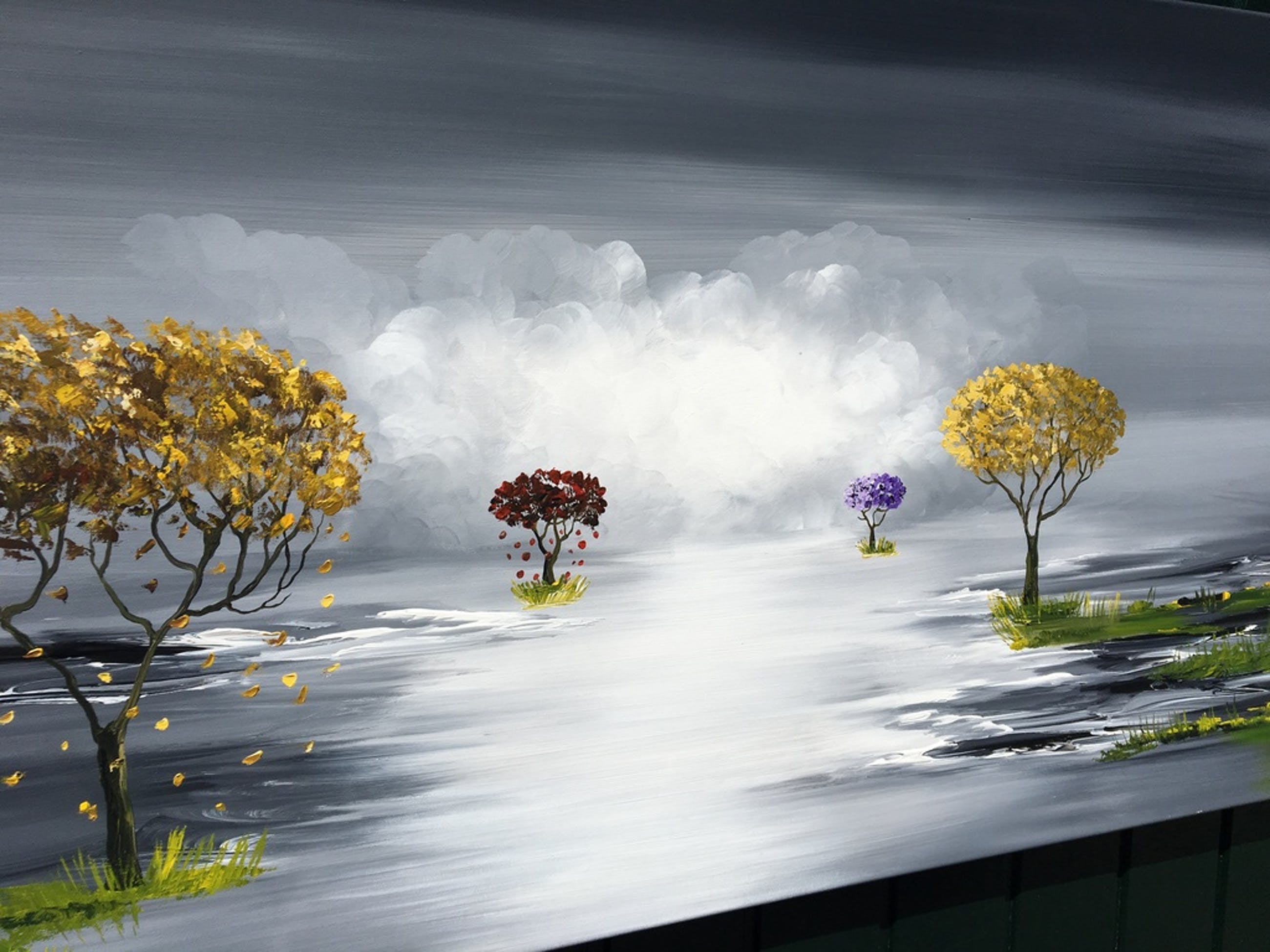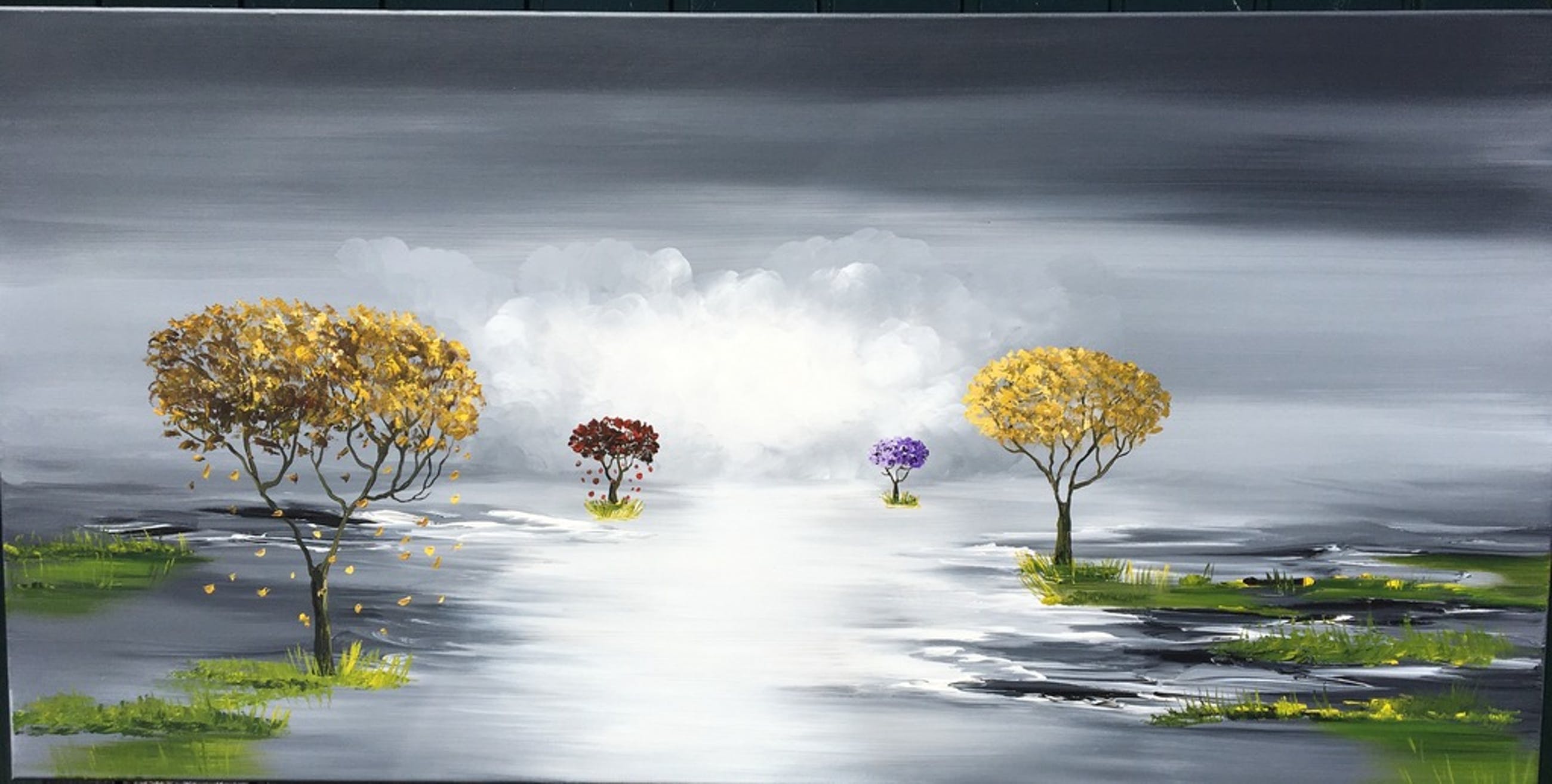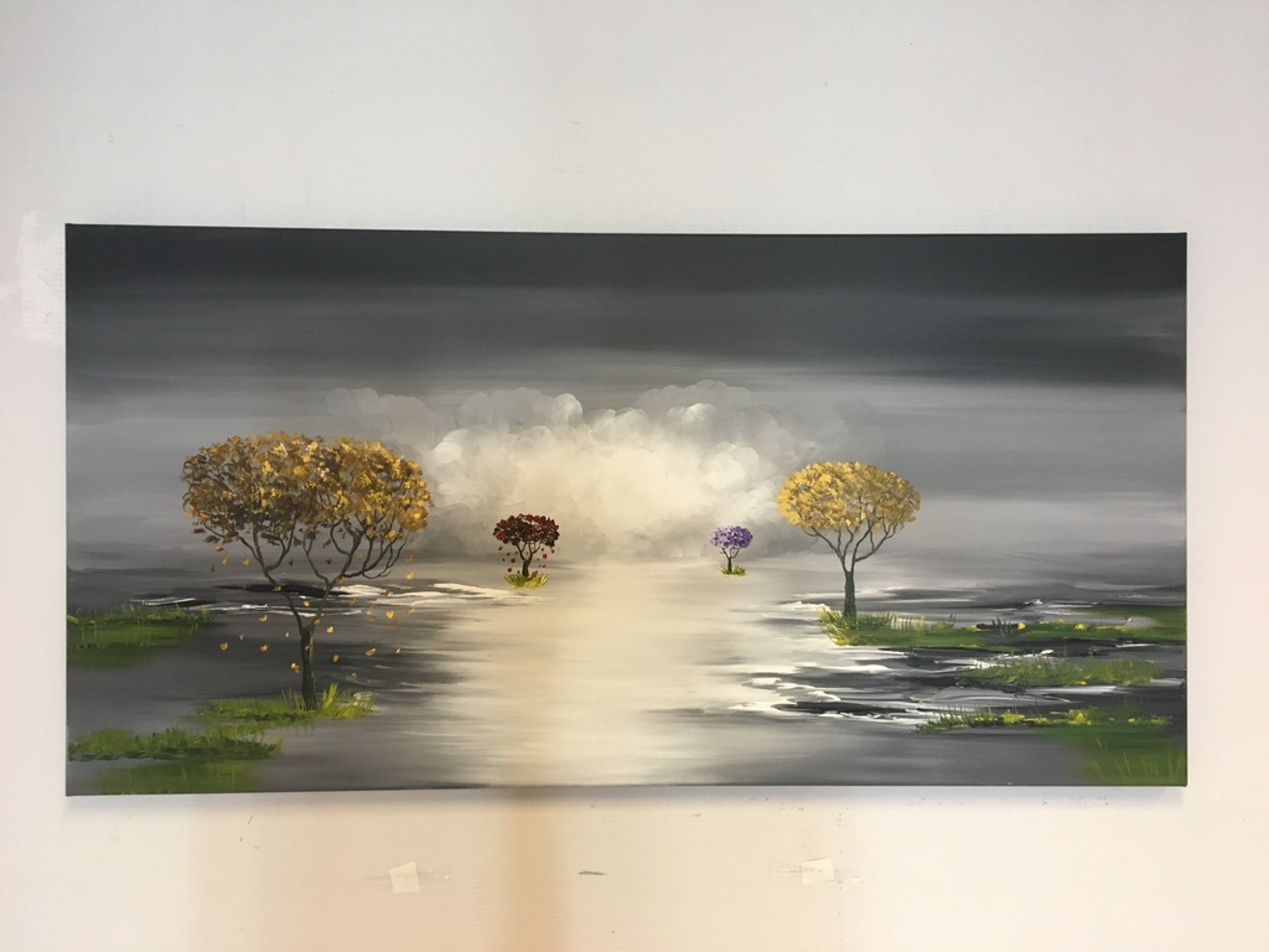 Acrylverv op doek, zijkanten zijn meegeschilderd.