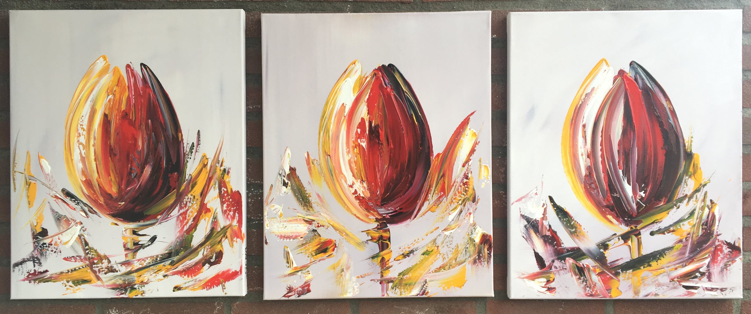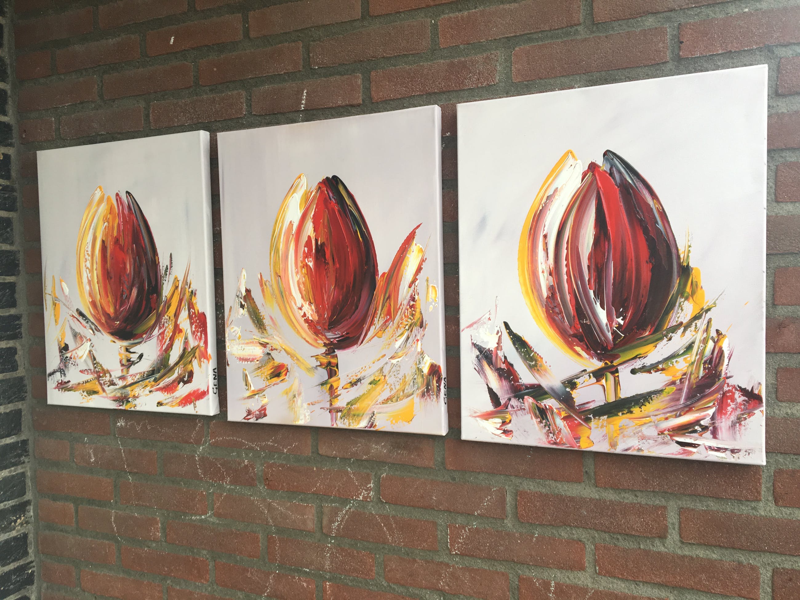 Origineel werk van kunstenaar Gena. Wordt geleverd met een certificaat van echtheid. Acrylverf op doek.Zijkanten zijn mee geschilderd, zodat geen lijst nodig - direct op te hangen.Het schilderij is voorzien van een vernislaag, dus extra beschermd tegen stof, vuil en vochtinvloed! Formaat : 3 st. x 50 x 40 cm.
