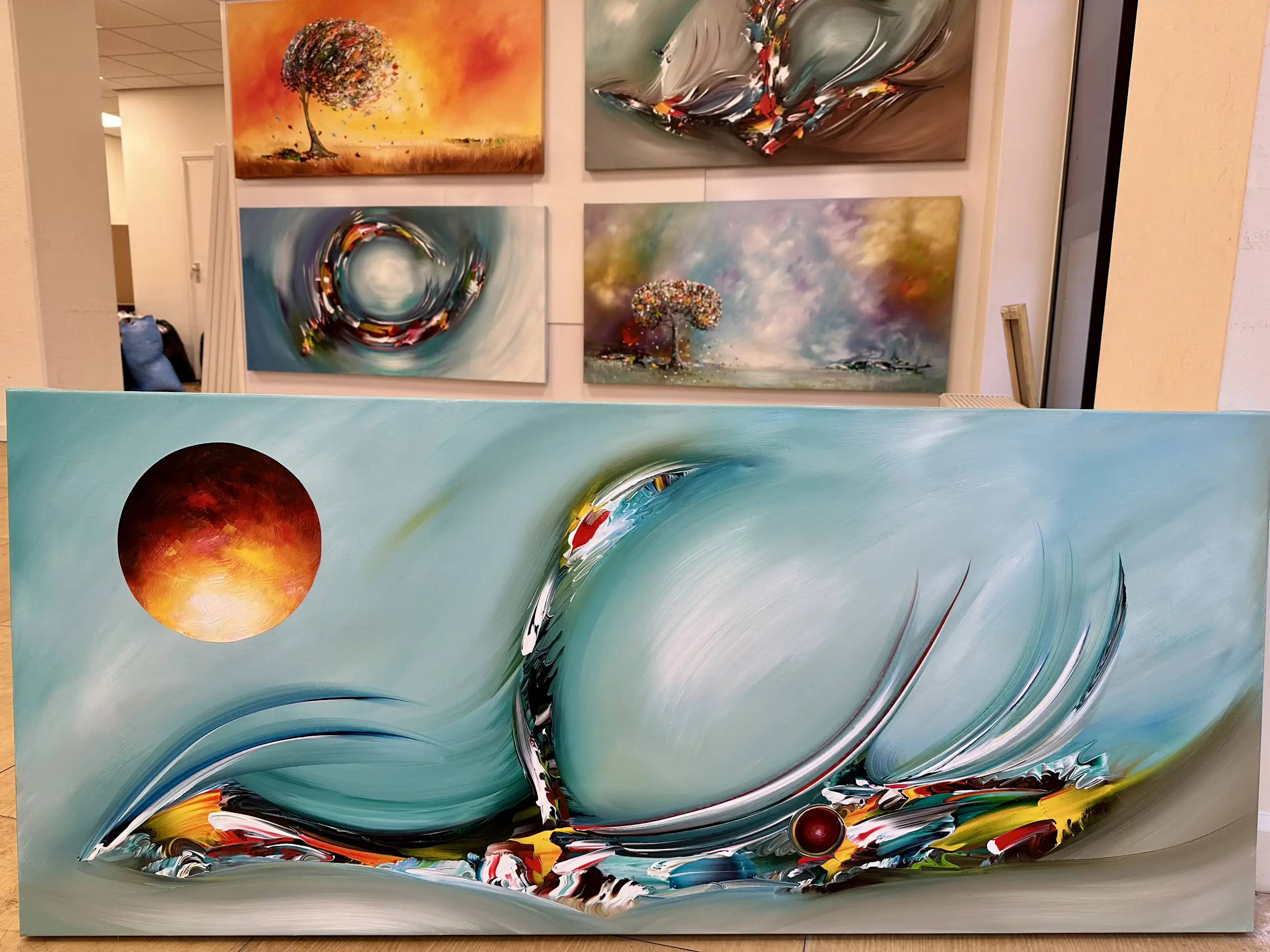 Origineel schilderij van kunstenaar Gena. Wordt geleverd met een certificaat van echtheid. Acrylverf Amsterdam op doek.Zijkanten zijn mee geschilderd, zodat geen lijst nodig direct op te hangen.Het schilderij is voorzien van een vernislaag, dus extra beschermd tegen stof, vuil en vochtinvloed! Formaat: 60x140cm 3D