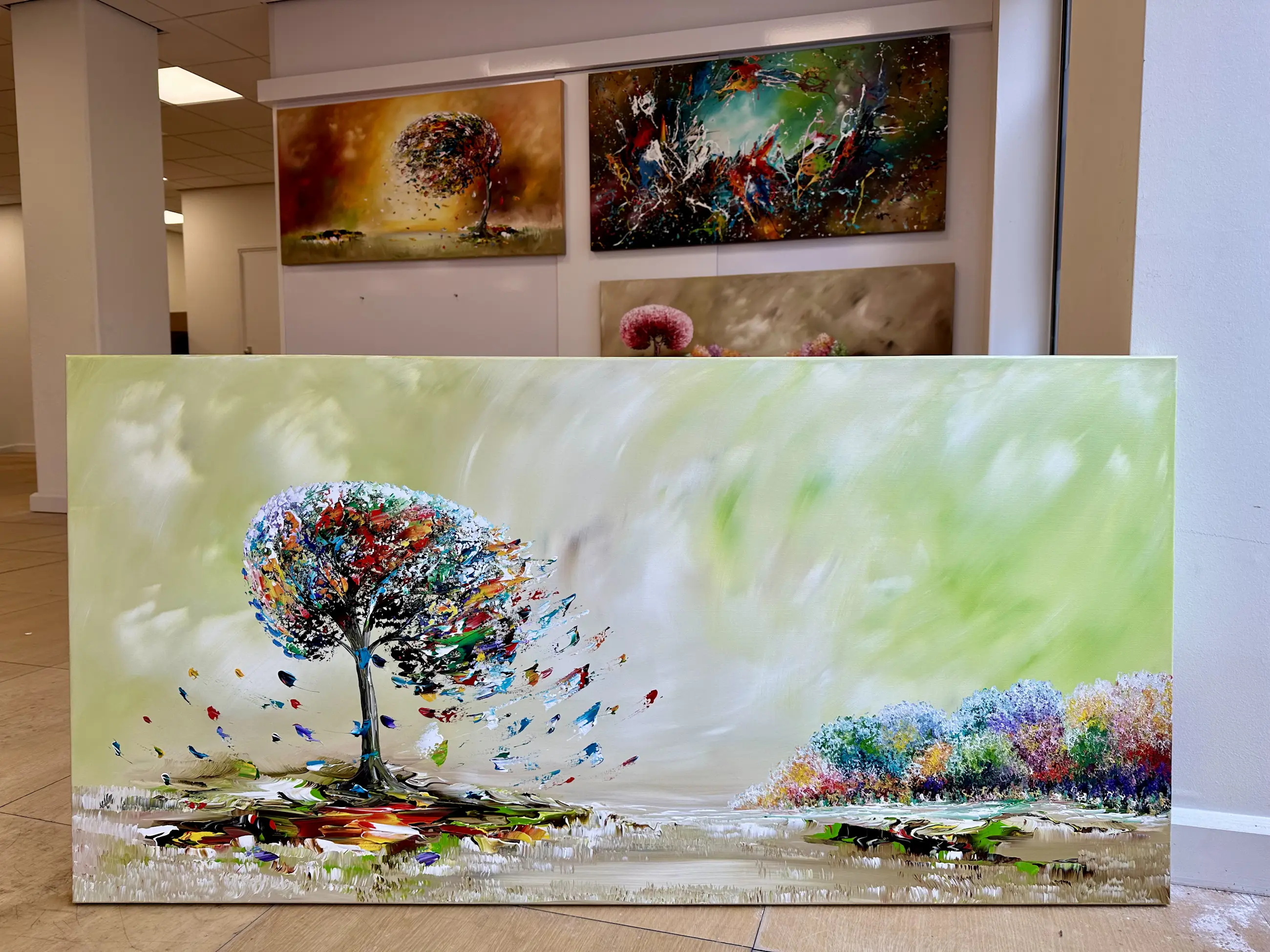 Origineel schilderij van kunstenaar Gena. Wordt geleverd met een certificaat van echtheid. Acrylverf Amsterdam op doek.Zijkanten zijn mee geschilderd, zodat geen lijst nodig direct op te hangen.Het schilderij is voorzien van een vernislaag, dus extra beschermd tegen stof, vuil en vochtinvloed! Formaat: 70x140cm 3D