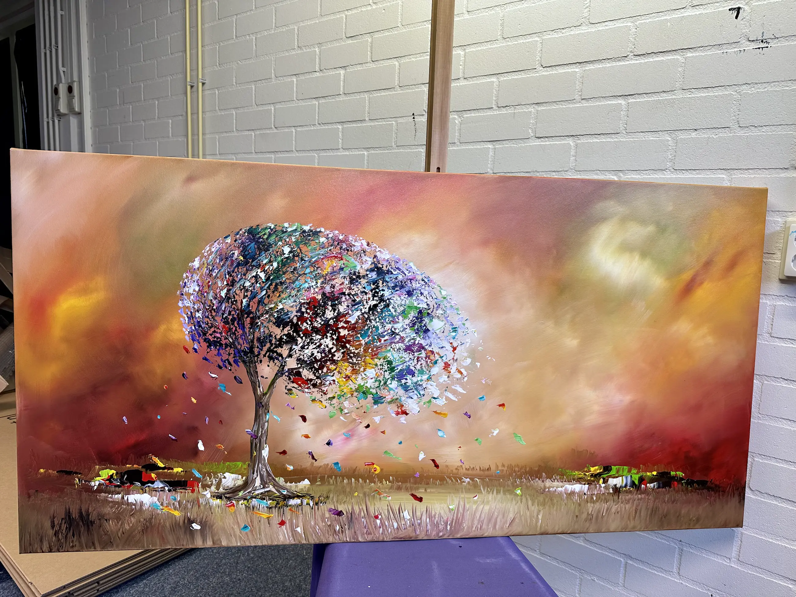Origineel schilderij van kunstenaar Gena. Wordt geleverd met een certificaat van echtheid. Acrylverf Amsterdam op doek.Zijkanten zijn mee geschilderd, zodat geen lijst nodig direct op te hangen.Het schilderij is voorzien van een vernislaag, dus extra beschermd tegen stof, vuil en vochtinvloed! Formaat: 70x140cm 3D