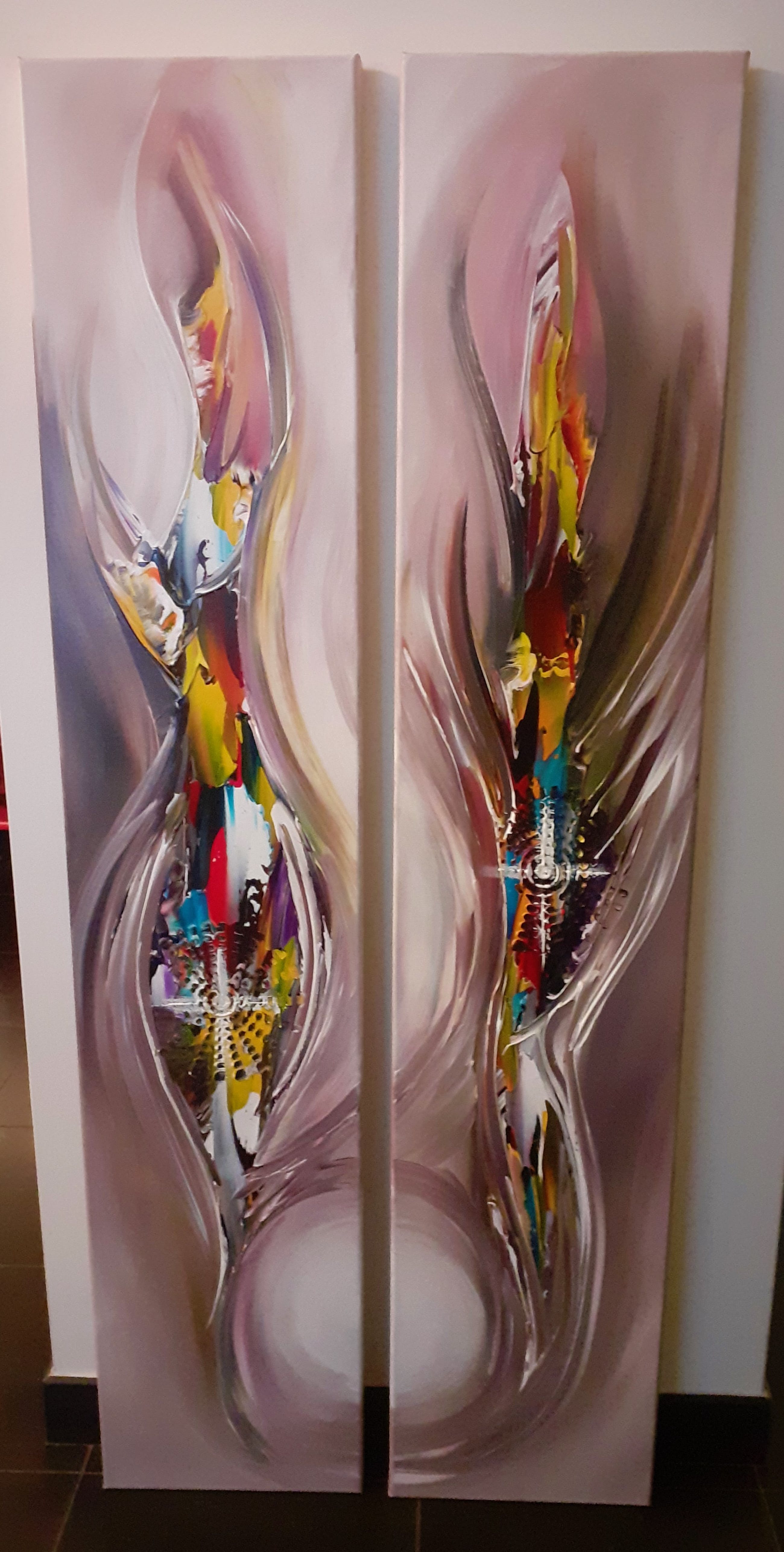 Prachtig tweeluik van Gena op 3D-doek opgespannen op dikke spielatten