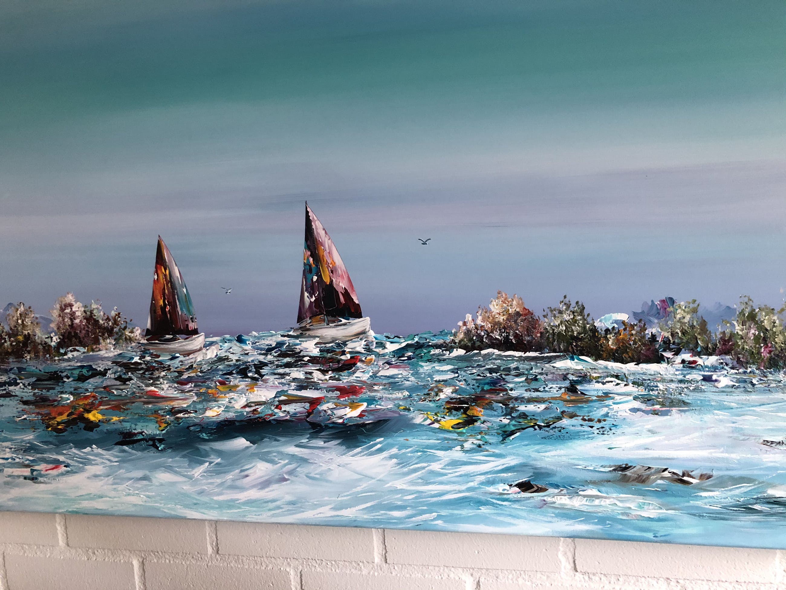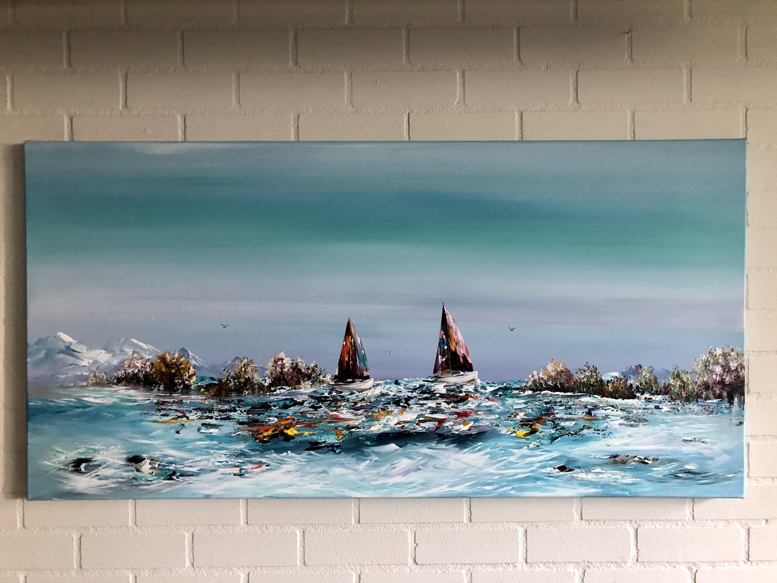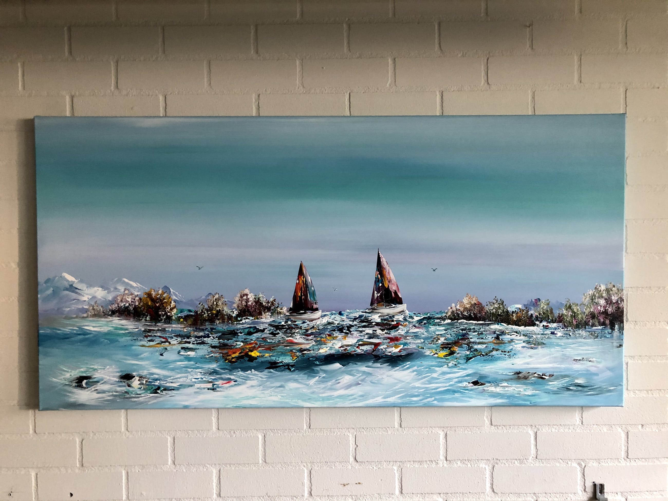 Origineel unique schilderij op doek van kunstenaar Gena. Wordt geleverd met een certificaat van echtheid. Acrylverf Amsterdam op doek.Zijkanten zijn mee geschilderd, zodat geen lijst nodig direct op te hangen.Het schilderij is voorzien van een vernislaag, dus extra beschermd tegen stof, vuil en vochtinvloed! Formaat : 70x140cm3D