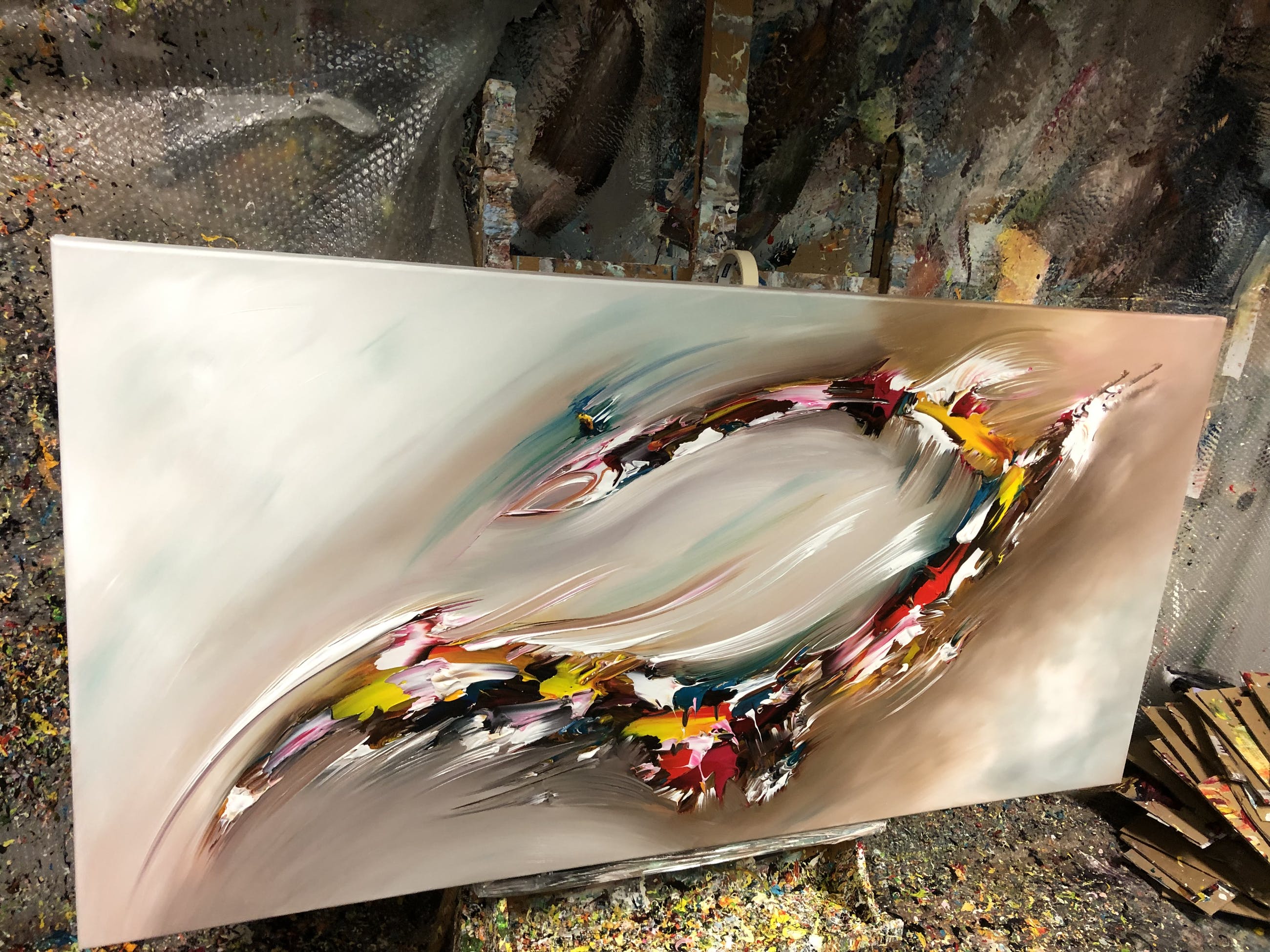 Origineel schilderij van kunstenaar Gena. Wordt geleverd met een certificaat van echtheid. Acrylverf Amsterdam op doek.Zijkanten zijn mee geschilderd, zodat geen lijst nodig -direct op te hangen.Het schilderij is voorzien van een vernislaag, dus extra beschermd tegen stof, vuil en vochtinvloed! Formaat 70x140cm3D