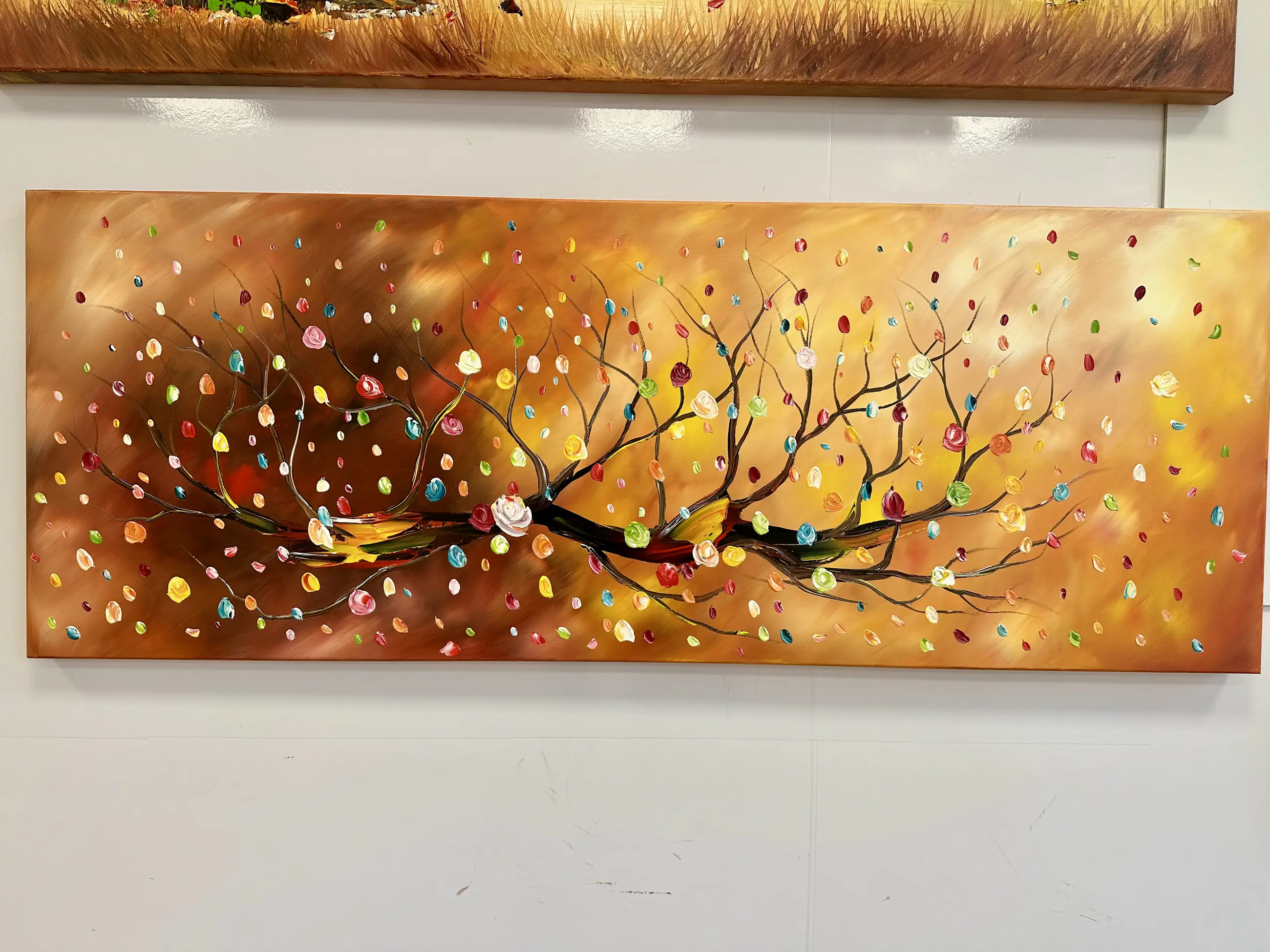 Origineel schilderij van kunstenaar Gena. Wordt geleverd met een certificaat van echtheid. Acrylverf Amsterdam op doek.Zijkanten zijn mee geschilderd, zodat geen lijst nodig direct op te hangen.Het schilderij is voorzien van een vernislaag, dus extra beschermd tegen stof, vuil en vochtinvloed! Formaat: 60x160cm 3D