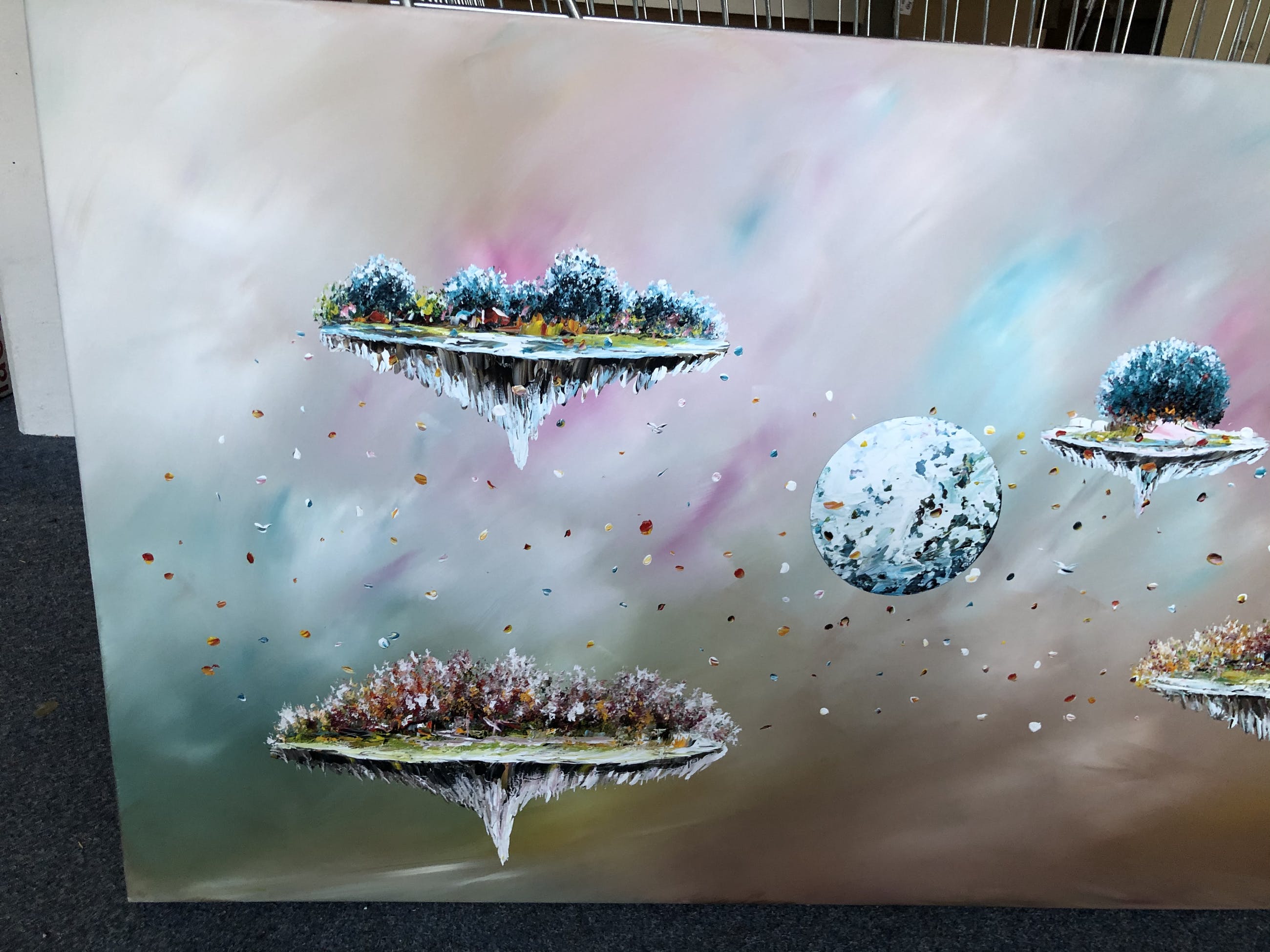 Origineel Unigue schilderij van kunstenaar Gena. Wordt geleverd met een certificaat van echtheid. Acrylverf Amsterdam op doek.Zijkanten zijn mee geschilderd, zodat geen lijst nodig -direct op te hangen.Het schilderij is voorzien van een vernislaag, dus extra beschermd tegen stof, vuil en vochtinvloed! Formaat : 70x140cm3D