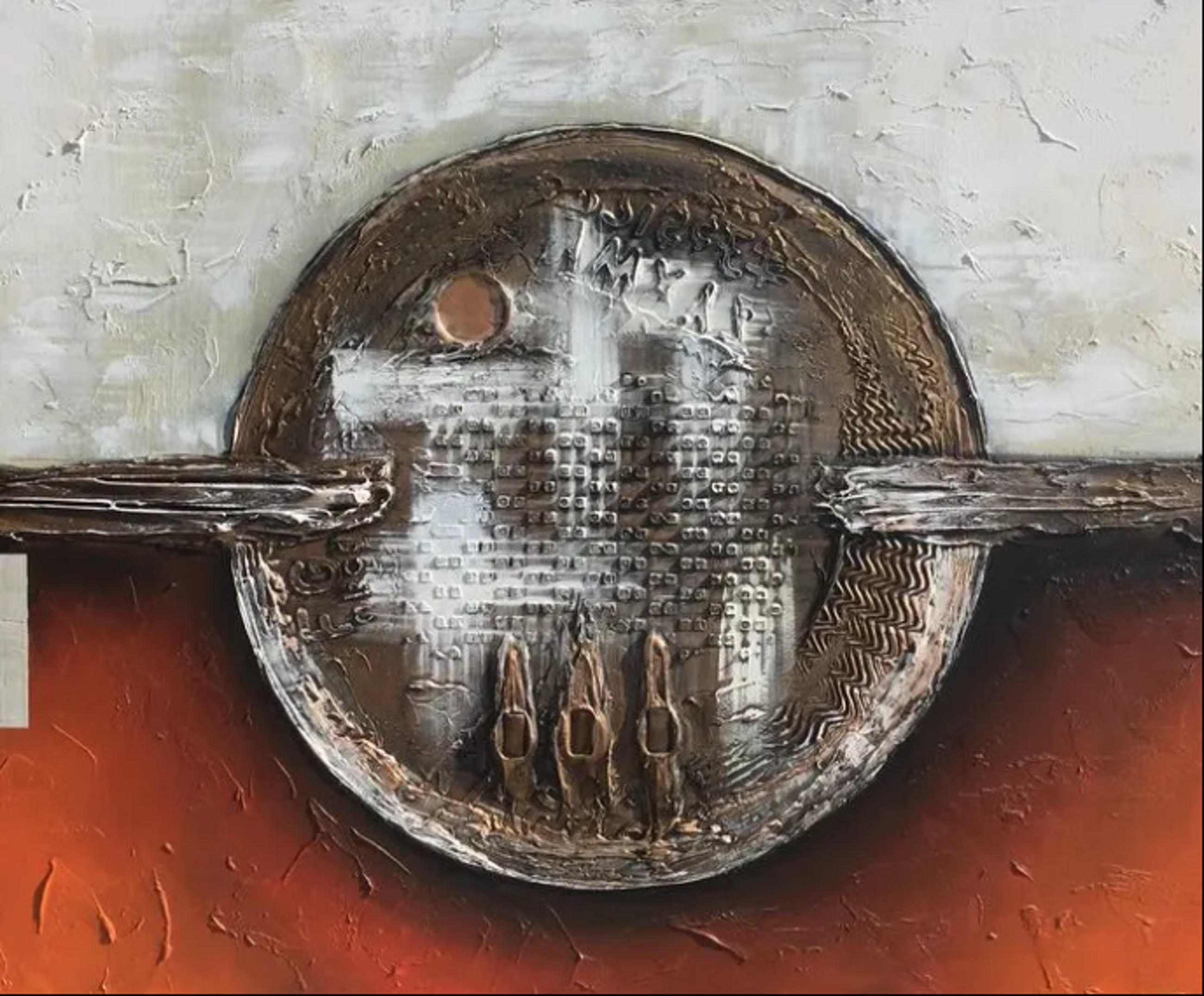 ACRYLVERF OP DOEK –TITEL: THE CODE GESIGNEERD – 2010 ORIGINEEL WERK VAN KUNSTENAAR GENA. HET DOEK WORDT GELEVERD MET EEN CERTIFICAAT VAN ECHTHEID. OPGESPANNEN OP DIK SPIERAAM 3D, ZIJKANTEN MEEGESCHILDERD. FORMAAT : 100 X 120 CM3D TITEL: THE CODE