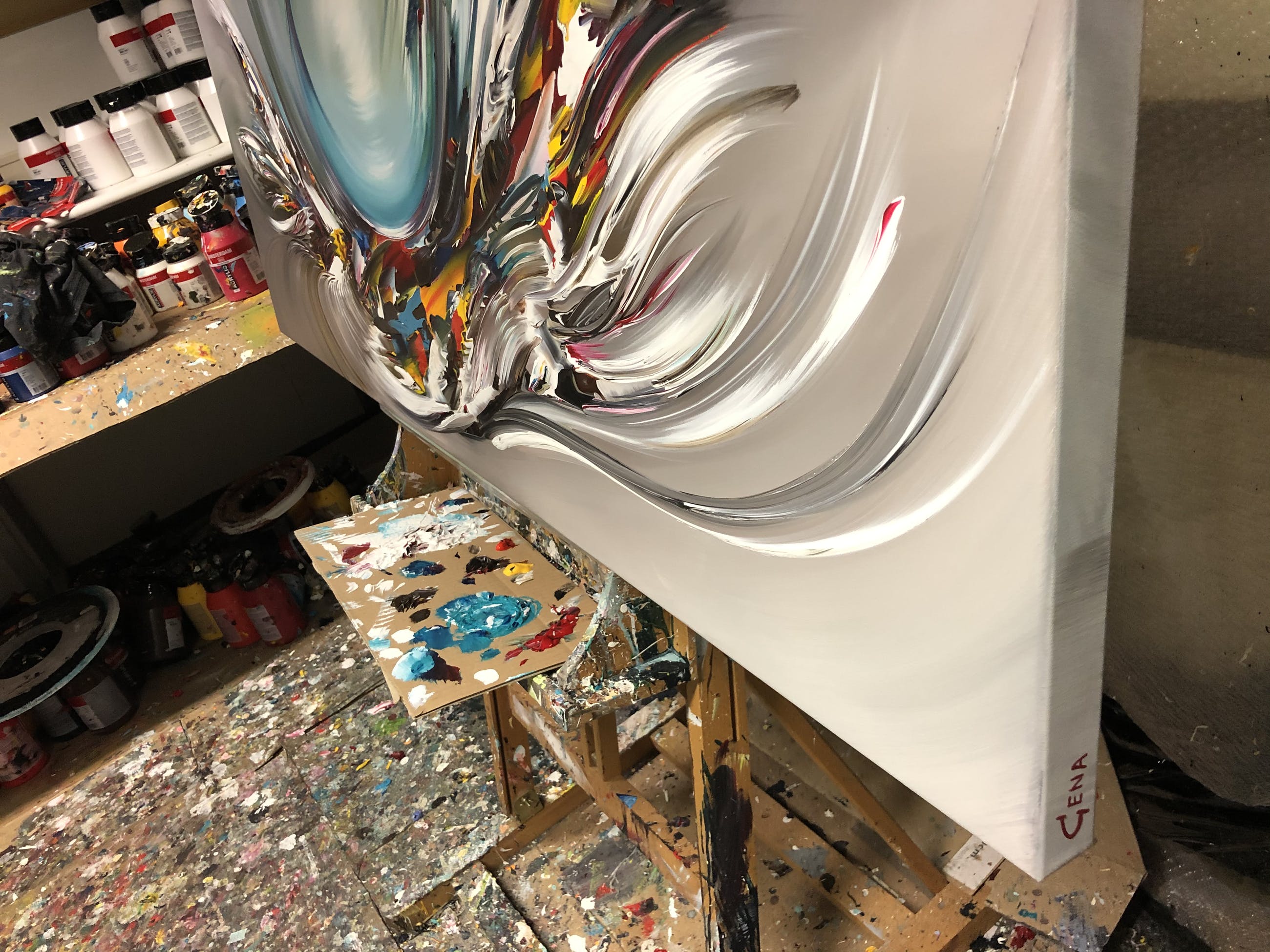 Origineel unique schilderij van kunstenaar Gena. Wordt geleverd met een certificaat van echtheid. Acrylverf Amsterdam op doek.Zijkanten zijn mee geschilderd, zodat geen lijst nodig direct op te hangen.Het schilderij is voorzien van een vernislaag, dus extra beschermd tegen stof, vuil en vochtinvloed! Formaat : 60x140cm3D