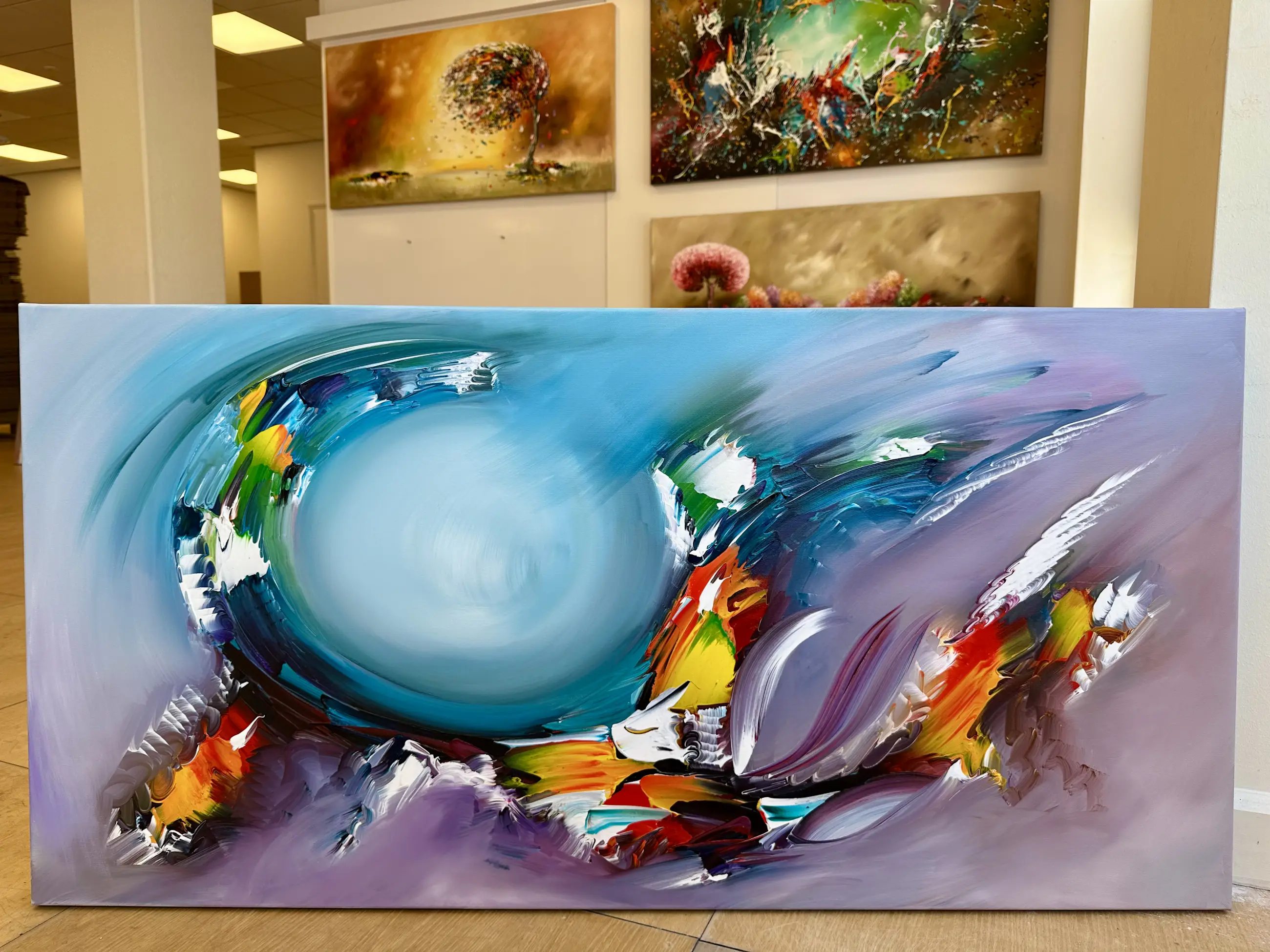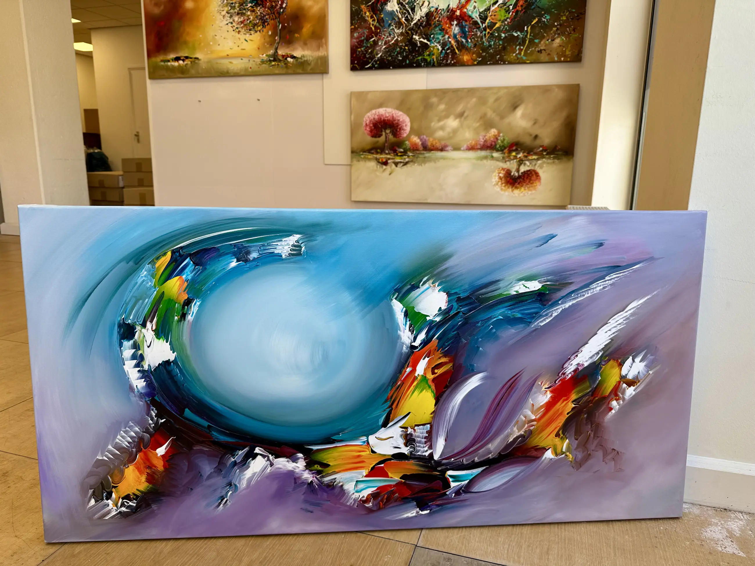 Origineel schilderij van kunstenaar Gena. Wordt geleverd met een certificaat van echtheid. Acrylverf Amsterdam op doek.Zijkanten zijn mee geschilderd, zodat geen lijst nodig direct op te hangen.Het schilderij is voorzien van een vernislaag, dus extra beschermd tegen stof, vuil en vochtinvloed! Formaat: 60x120cm 3D