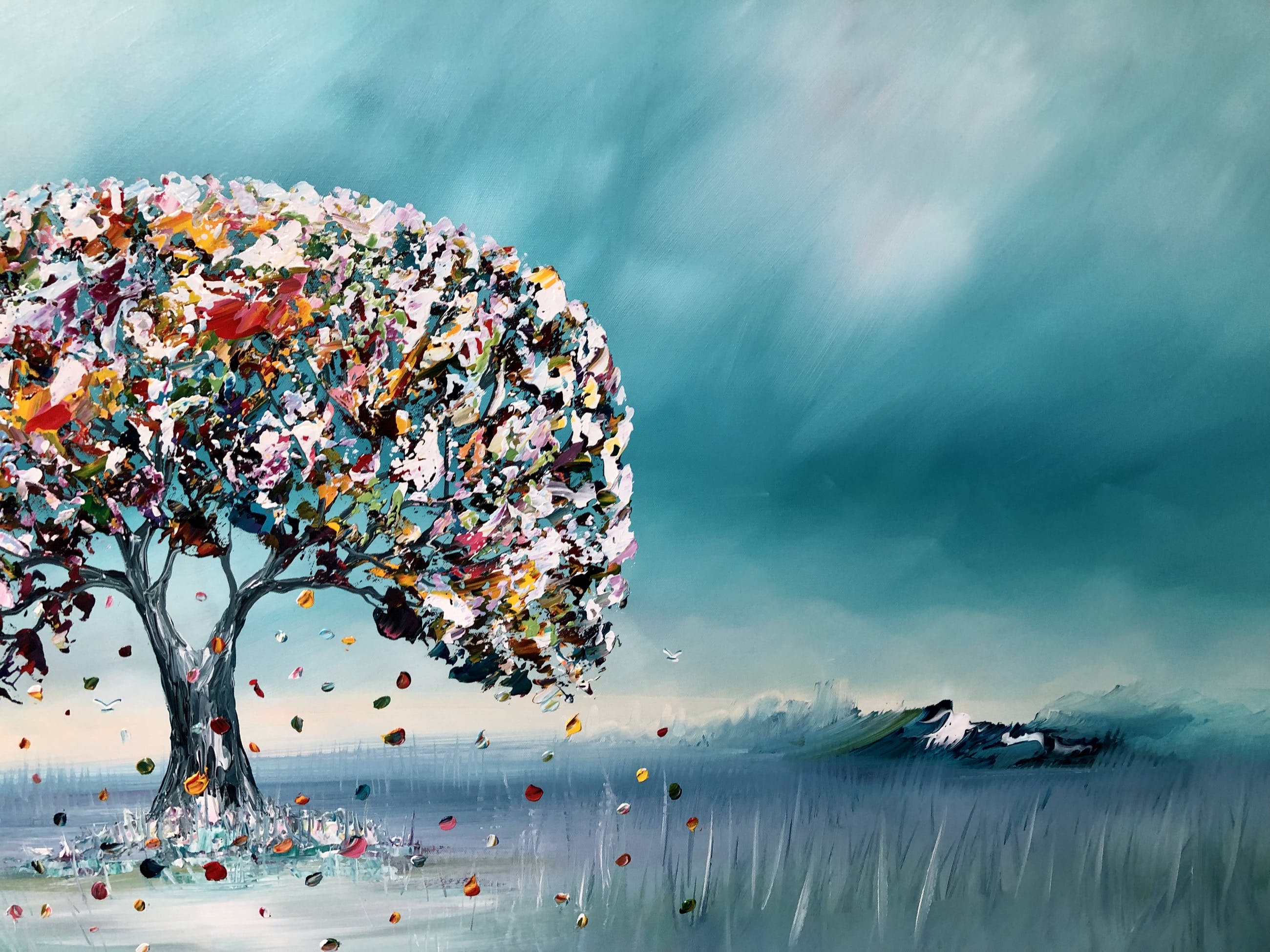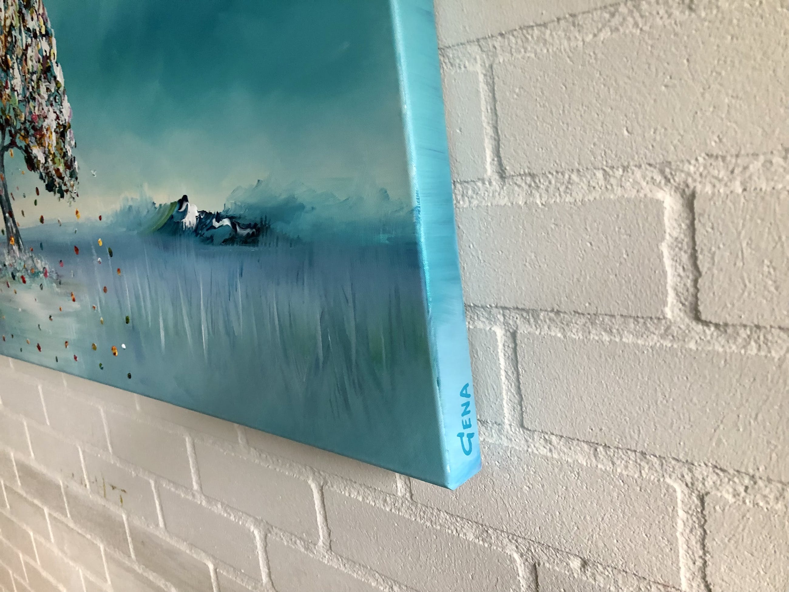 Origineel schilderij van kunstenaar Gena. Wordt geleverd met een certificaat van echtheid. Acrylverf Amsterdam op doek.Zijkanten zijn mee geschilderd, zodat geen lijst nodig -direct op te hangen.Het schilderij is voorzien van een vernislaag, dus extra beschermd tegen stof, vuil en vochtinvloed! Formaat 70x140cm3D