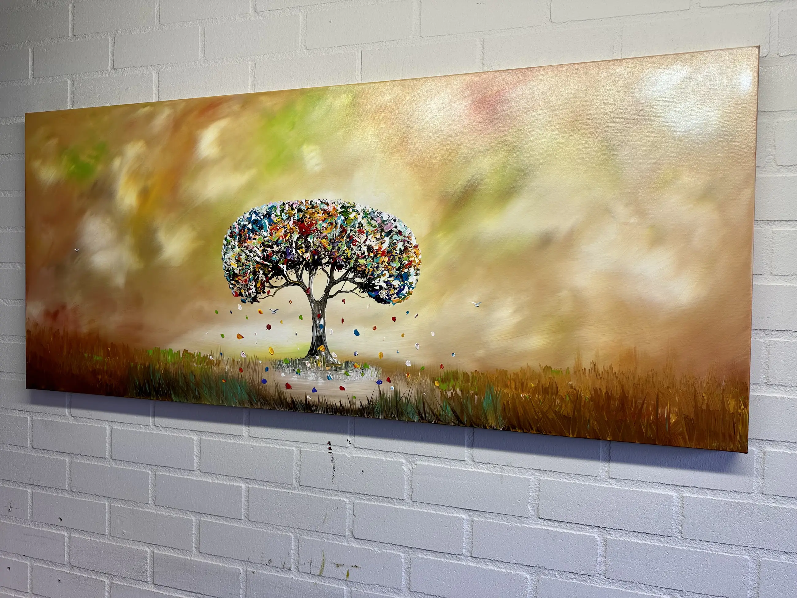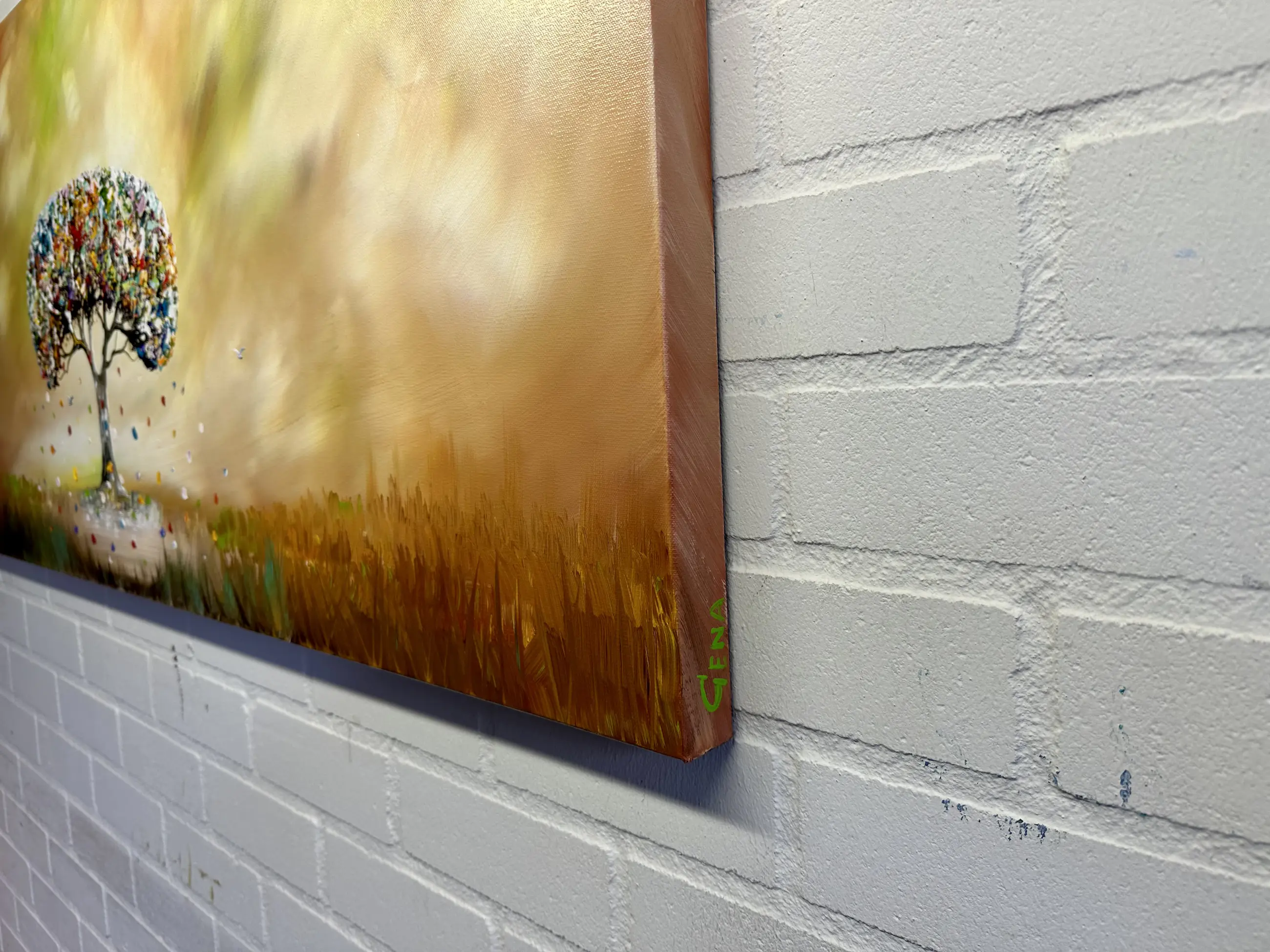Origineel schilderij van kunstenaar Gena. Wordt geleverd met een certificaat van echtheid. Acrylverf Amsterdam op doek.Zijkanten zijn mee geschilderd, zodat geen lijst nodig direct op te hangen.Het schilderij is voorzien van een vernislaag, dus extra beschermd tegen stof, vuil en vochtinvloed! Formaat: 60x140cm 3D