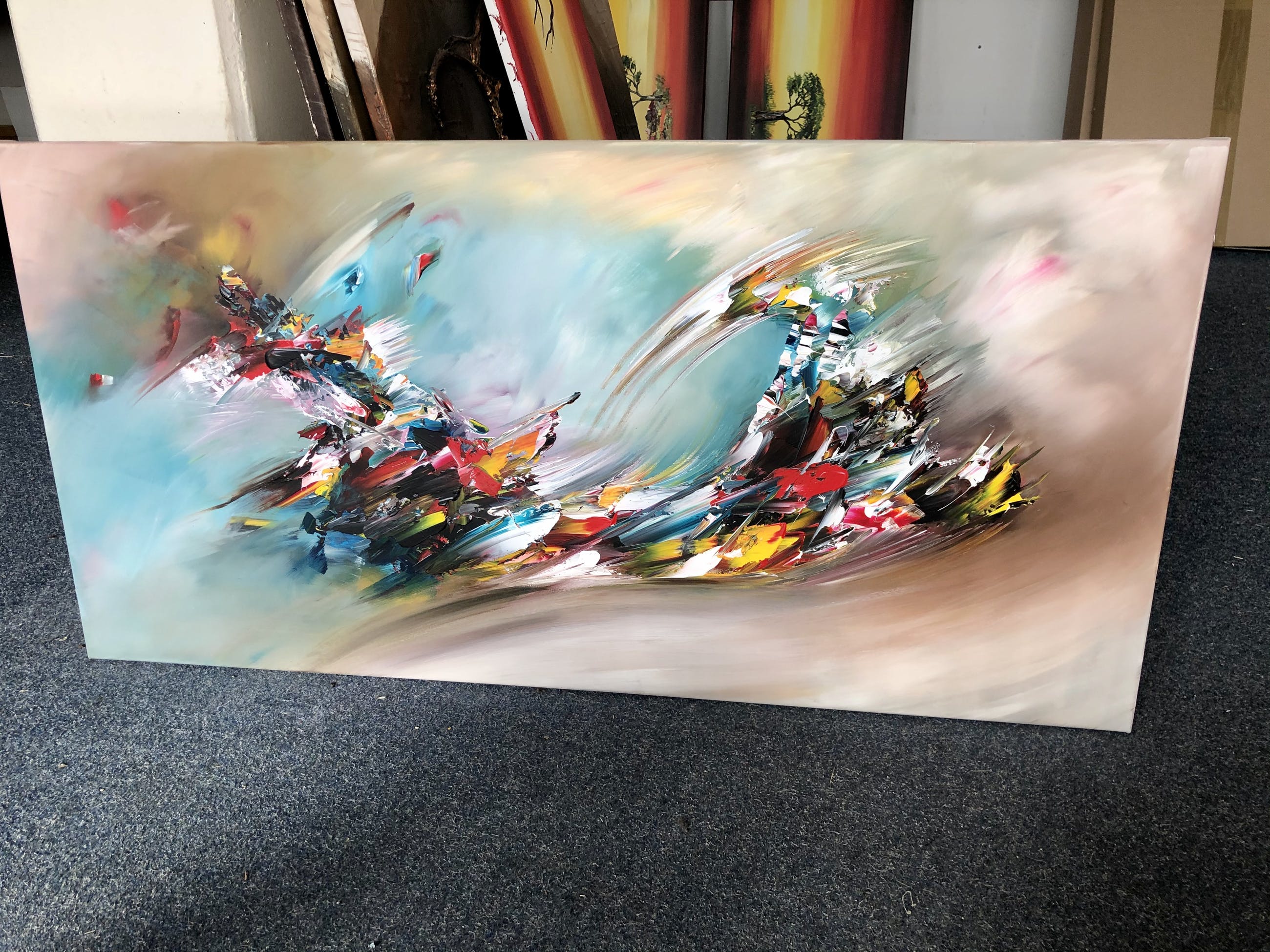 Origineel unique schilderij van kunstenaar Gena. Wordt geleverd met een certificaat van echtheid. Acrylverf Amsterdam op doek.Zijkanten zijn mee geschilderd, zodat geen lijst nodig direct op te hangen.Het schilderij is voorzien van een vernislaag, dus extra beschermd tegen stof, vuil en vochtinvloed! Formaat : 60x120cm