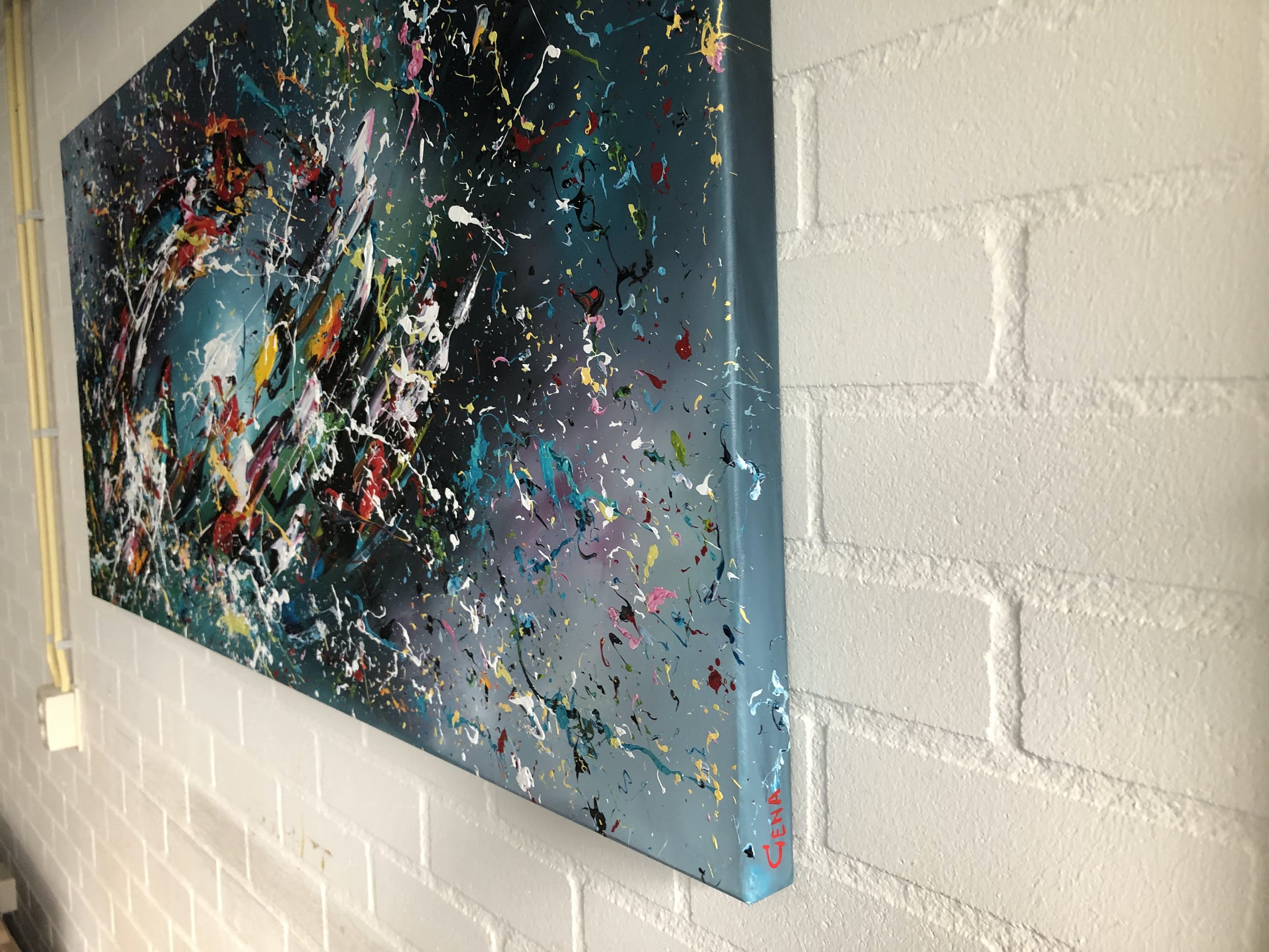 Origineel schilderij van kunstenaar Gena. Wordt geleverd met een certificaat van echtheid. Acrylverf Amsterdam op doek.Zijkanten zijn mee geschilderd, zodat geen lijst nodig -direct op te hangen.Het schilderij is voorzien van een vernislaag, dus extra beschermd tegen stof, vuil en vochtinvloed! Formaat 70x140cm3D