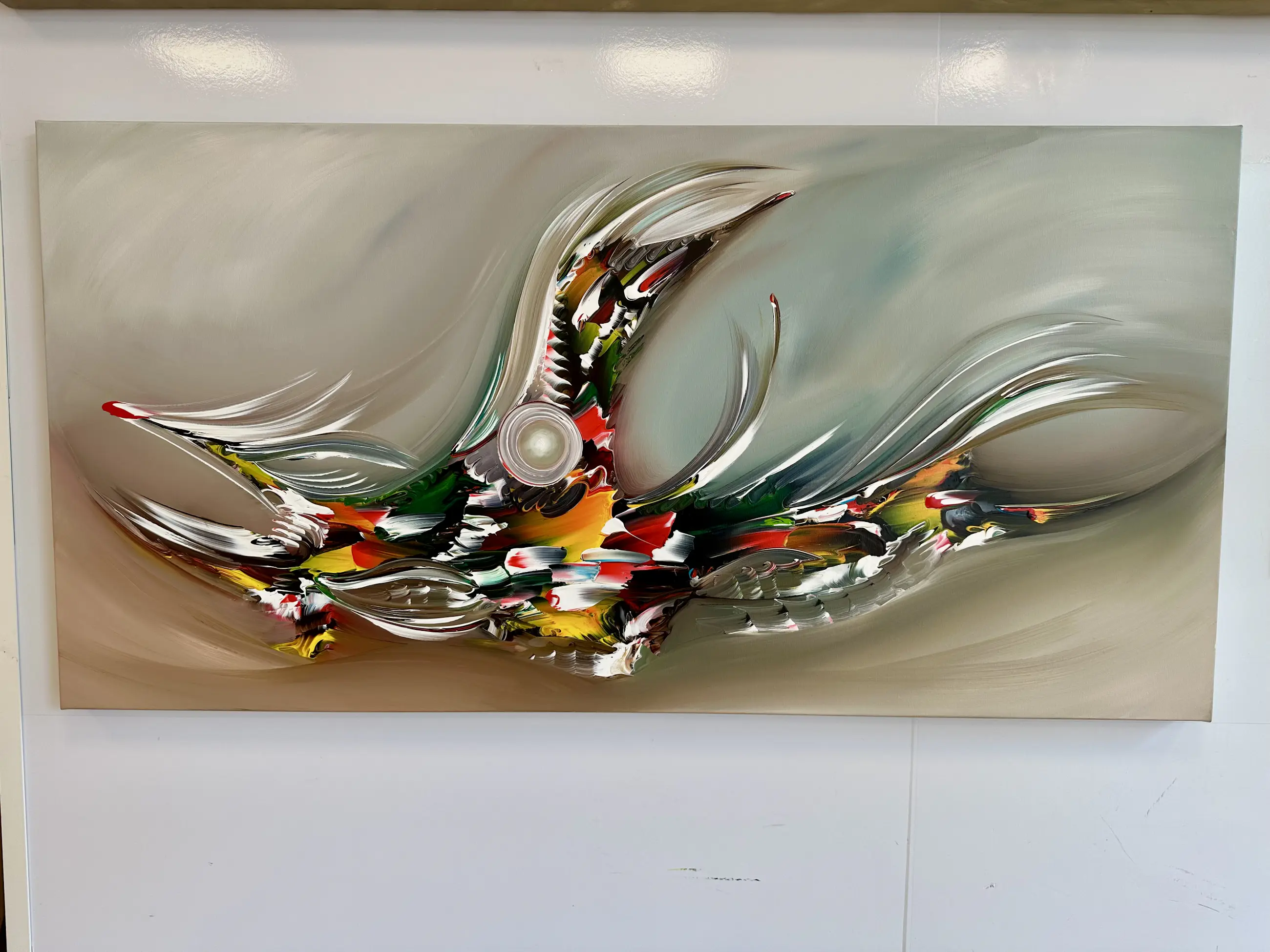 Origineel schilderij van kunstenaar Gena. Wordt geleverd met een certificaat van echtheid. Acrylverf Amsterdam op doek.Zijkanten zijn mee geschilderd, zodat geen lijst nodig direct op te hangen.Het schilderij is voorzien van een vernislaag, dus extra beschermd tegen stof, vuil en vochtinvloed! Formaat: 70x140cm 3D