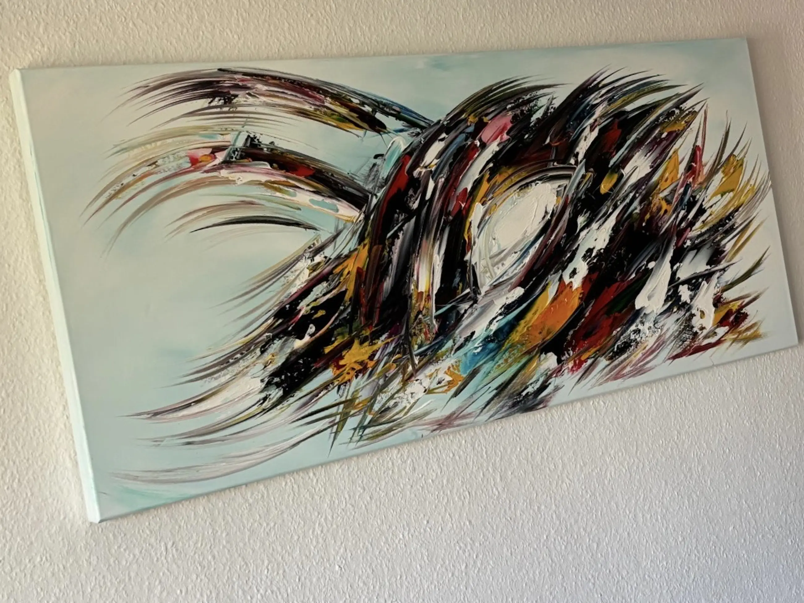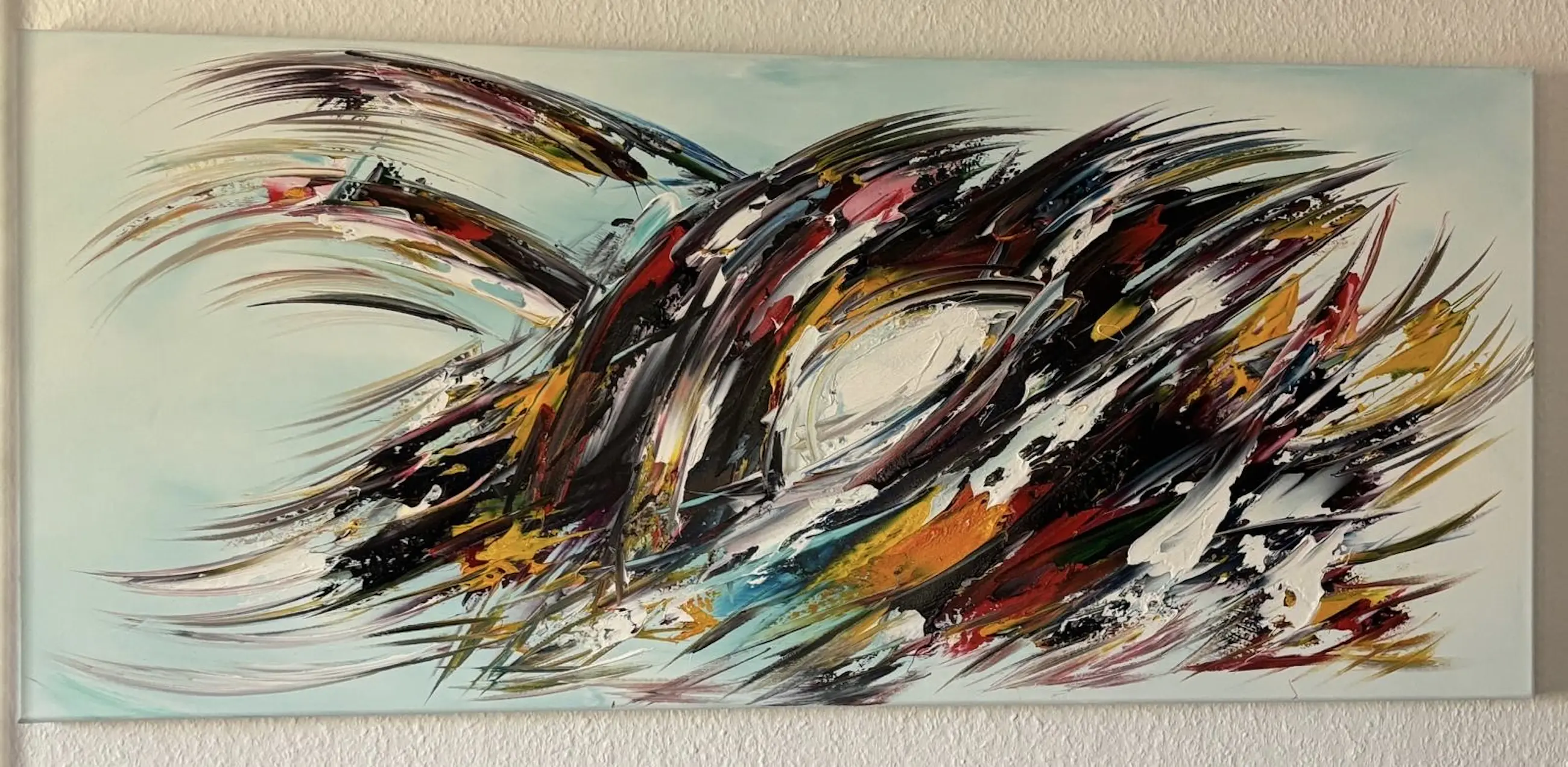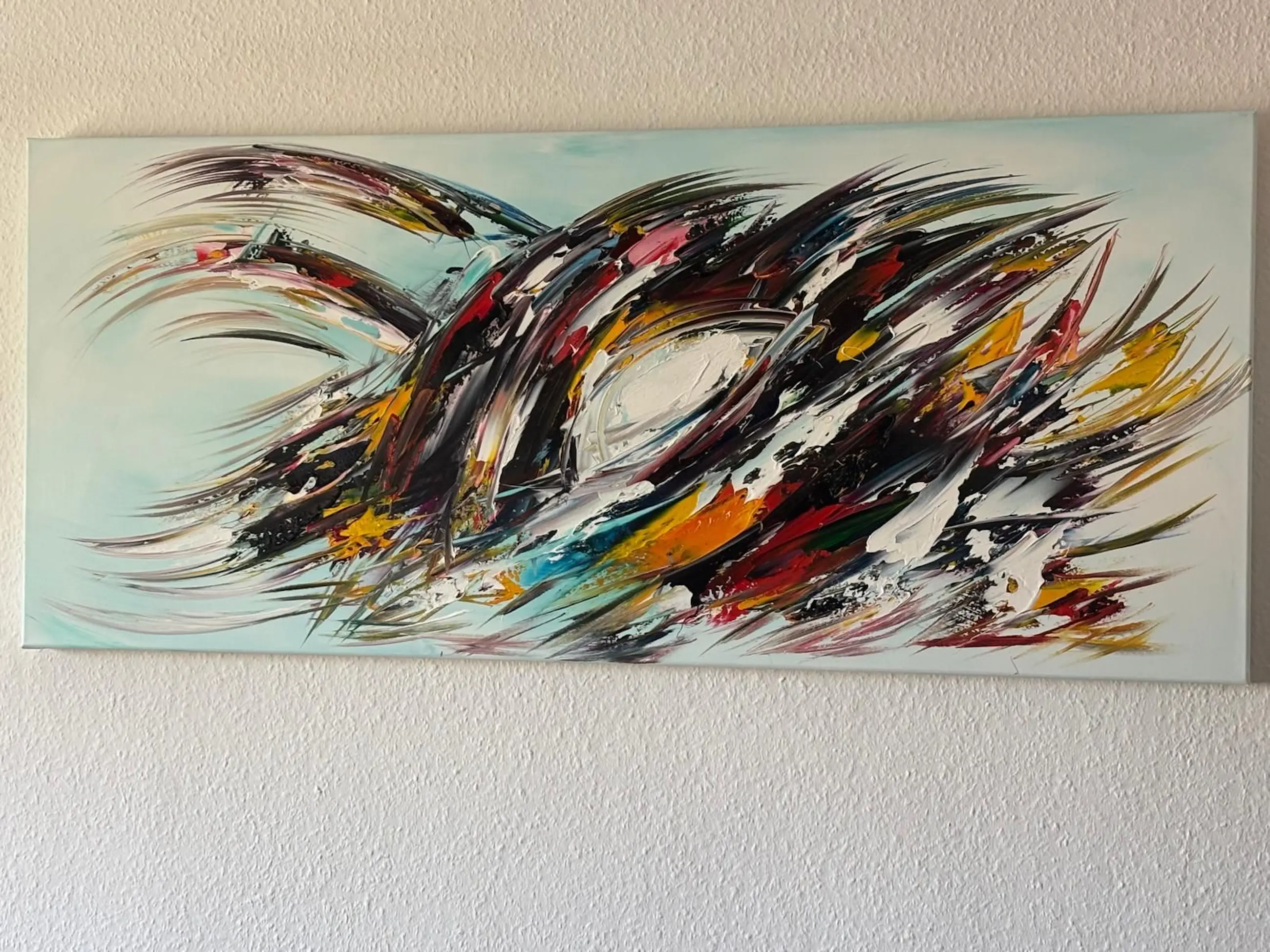Das Bild ist von dem Künstler Gena aus der Niederlande.Dieses beeindruckende Gemälde wurde mit hochwertiger Amsterdam Acrylfarbe auf Leinwand erschaffen. Die Seiten sind ebenfalls kunstvoll bemalt, sodass kein zusätzlicher Rahmen benötigt wird – es ist sofort bereit, an die Wand gehängt zu werden. Eine schützende Lackschicht verleiht dem Kunstwerk zusätzlichen Schutz vor Staub, Schmutz und Feuchtigkeit und sorgt dafür, dass es lange in seinem beständigen Glanz erstrahlt!