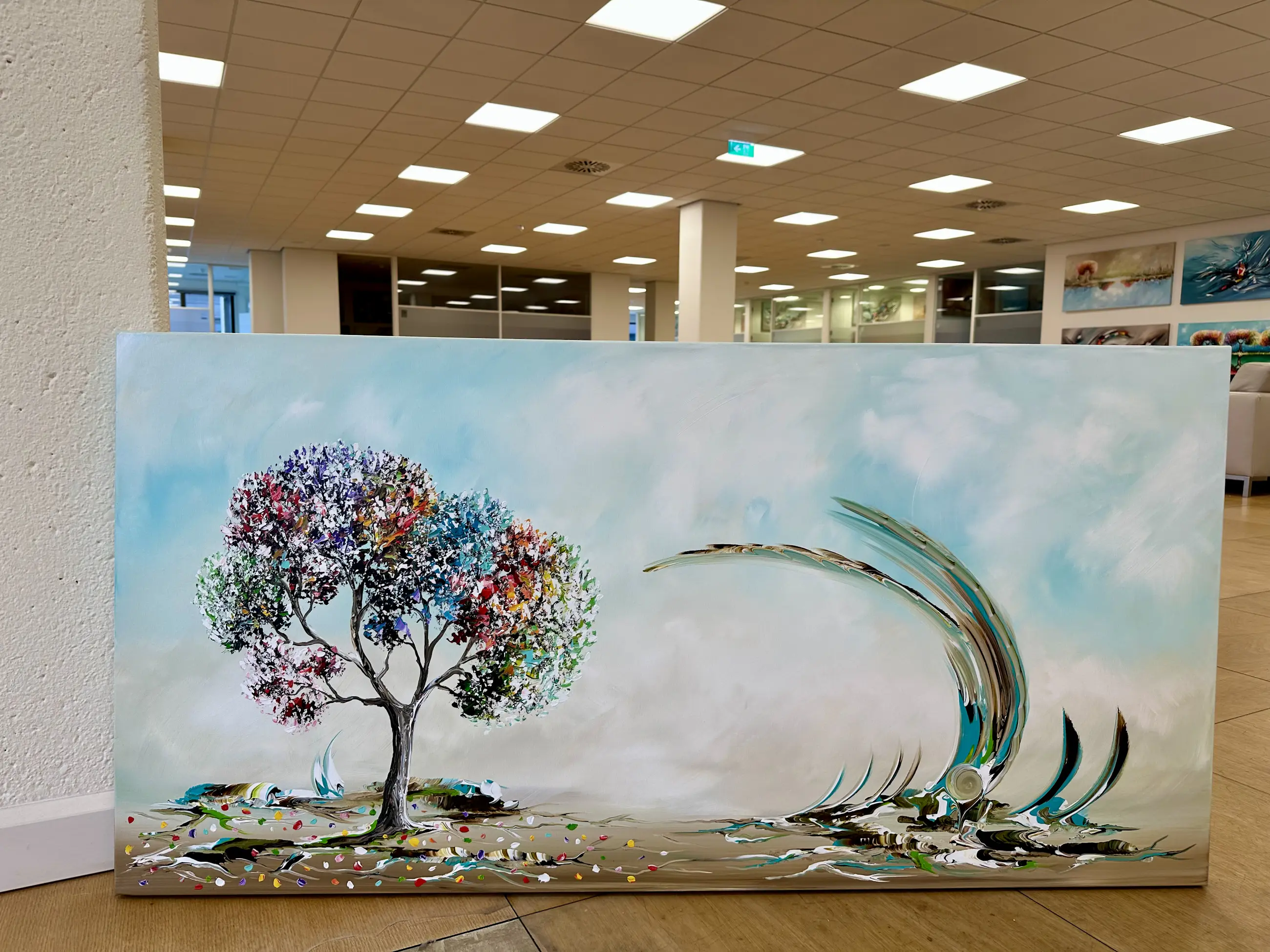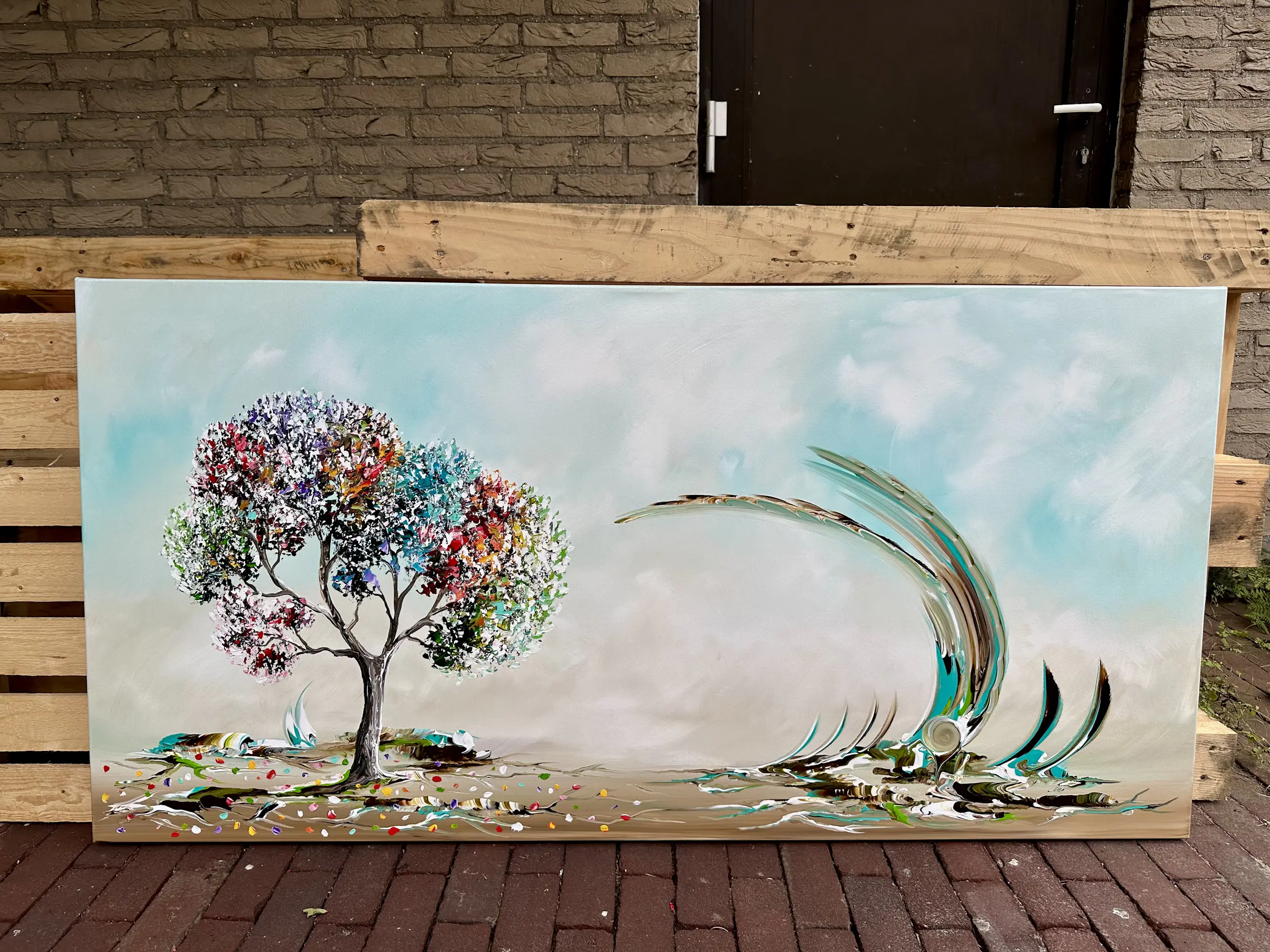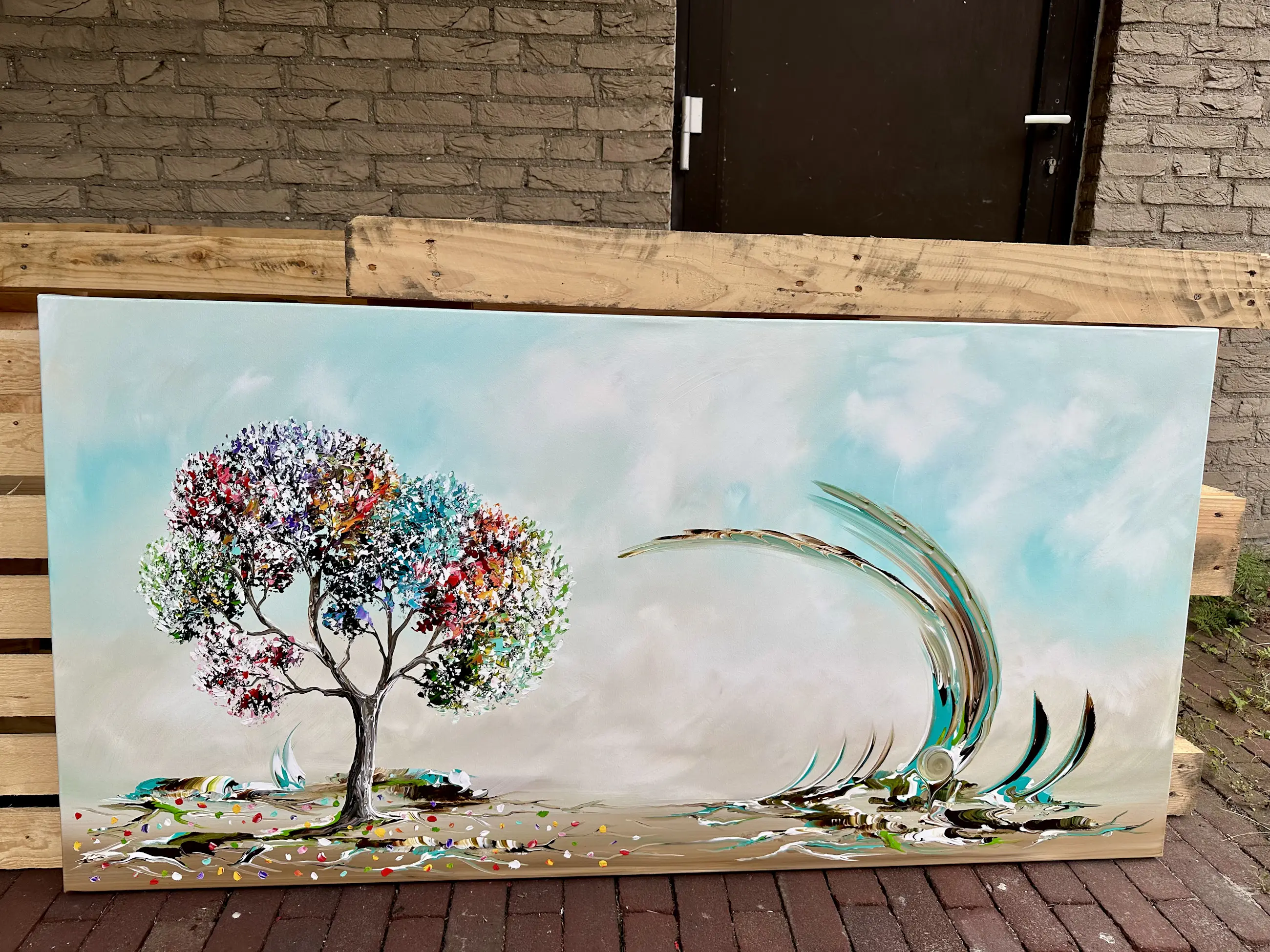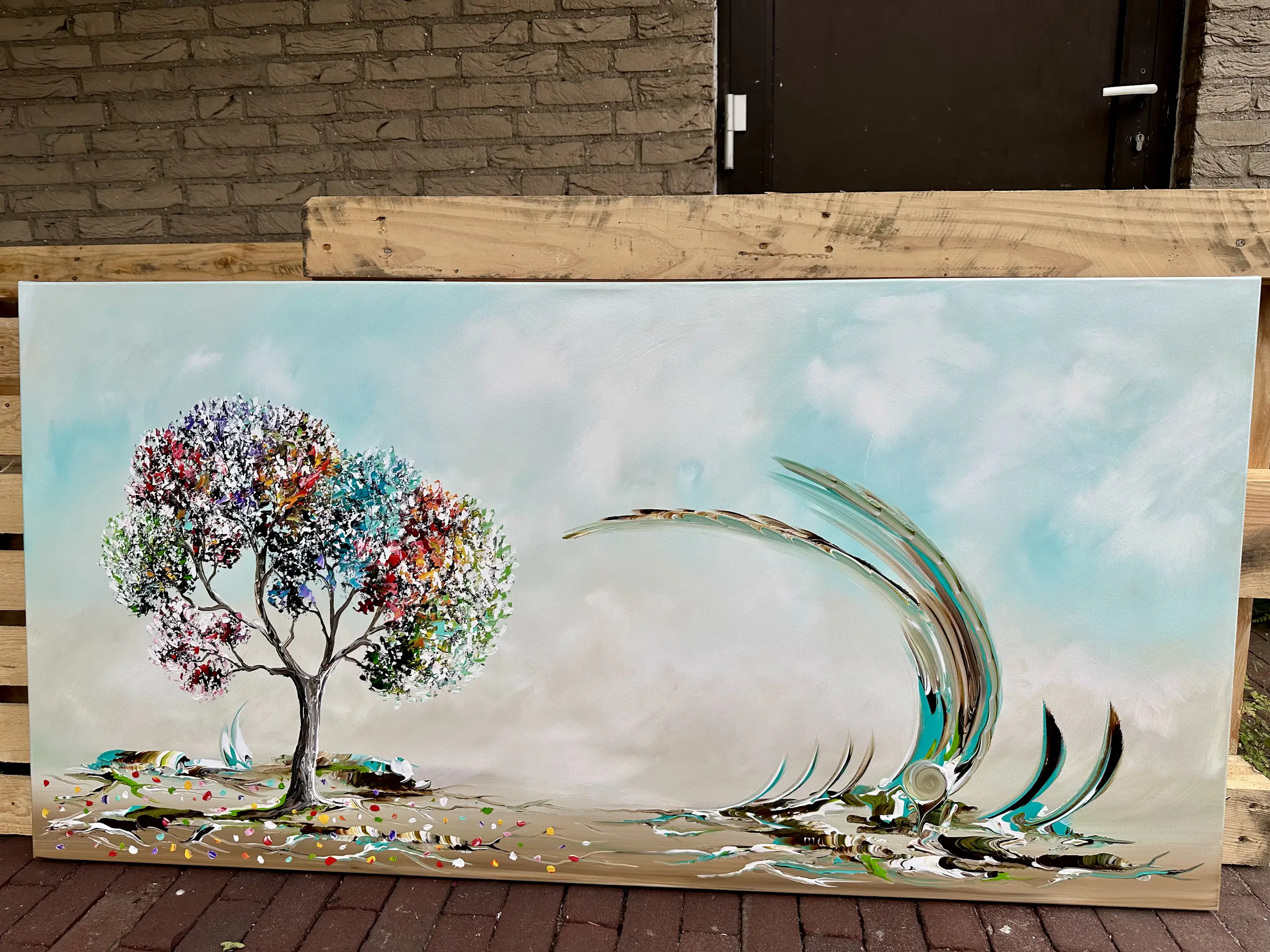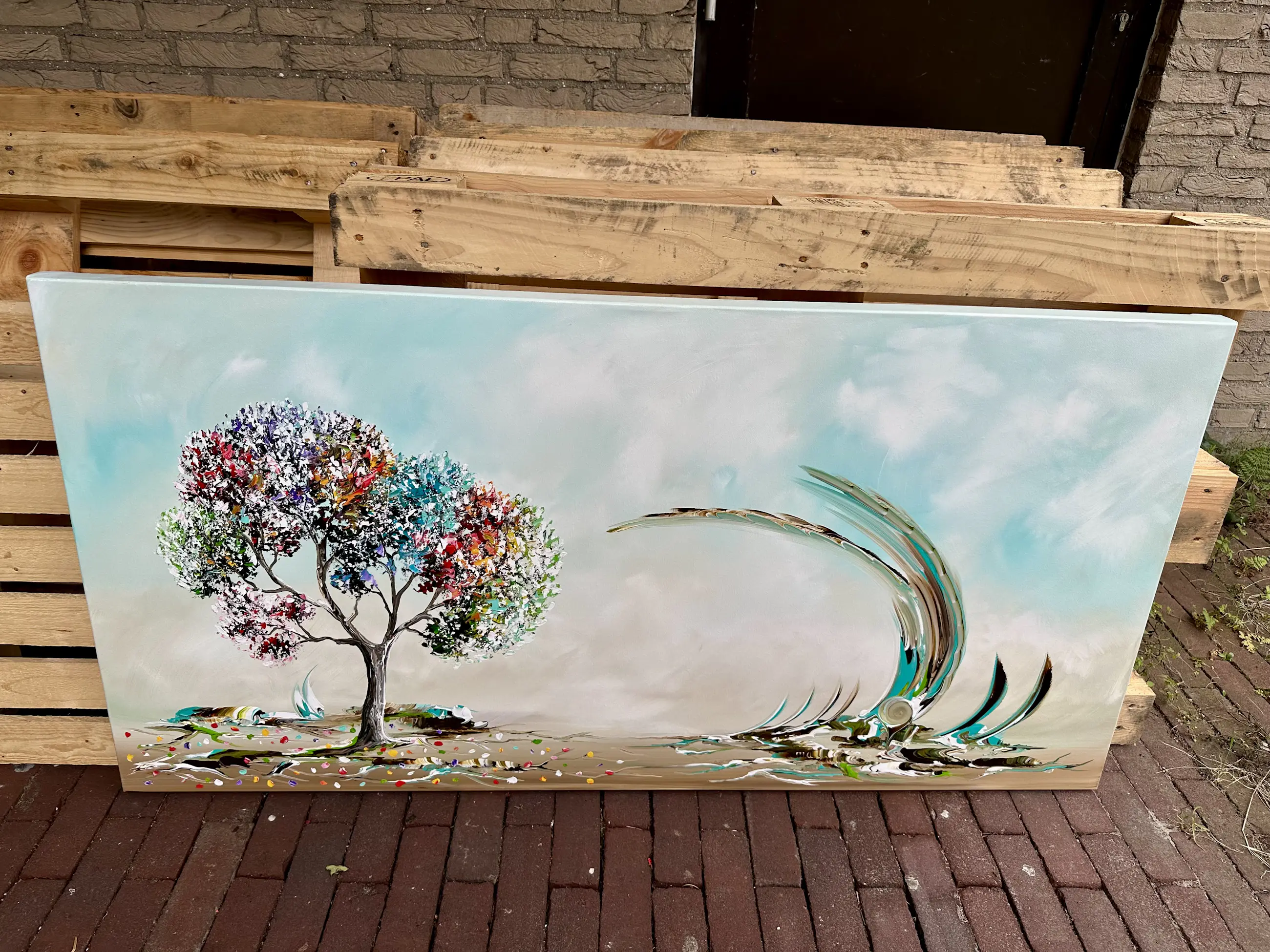 Origineel schilderij van kunstenaar Gena. Wordt geleverd met een certificaat van echtheid. Acrylverf Amsterdam op doek.Zijkanten zijn mee geschilderd, zodat geen lijst nodig direct op te hangen.Het schilderij is voorzien van een vernislaag, dus extra beschermd tegen stof, vuil en vochtinvloed! Formaat: 70x140cm 3D