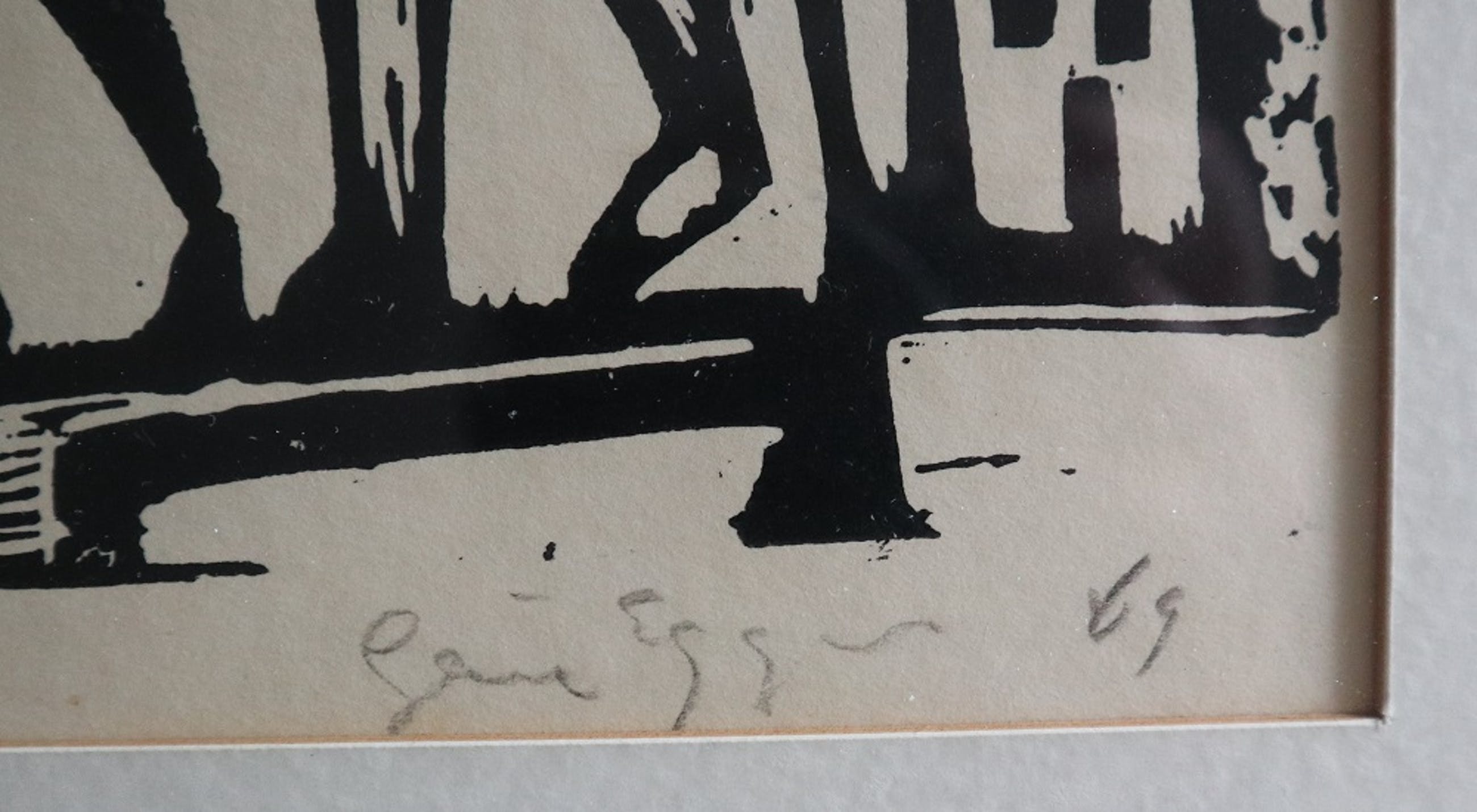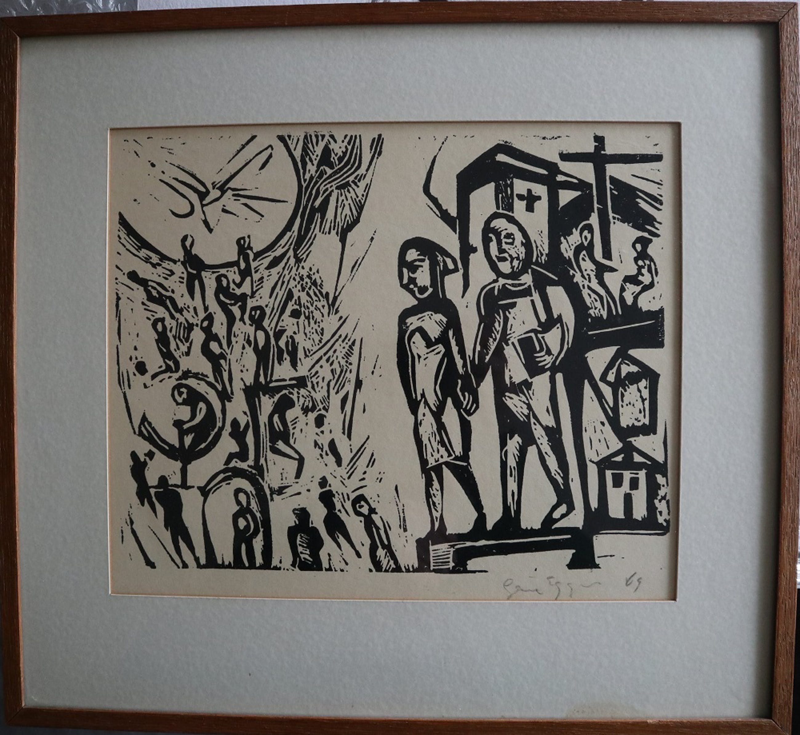 Mooie monotype van deze Amsterdamse-Limburger, Print heeft een religieus karakter maar heeft de expressie als veel van zijn niet religieuze werken. In origineel jaren 60 lijst.