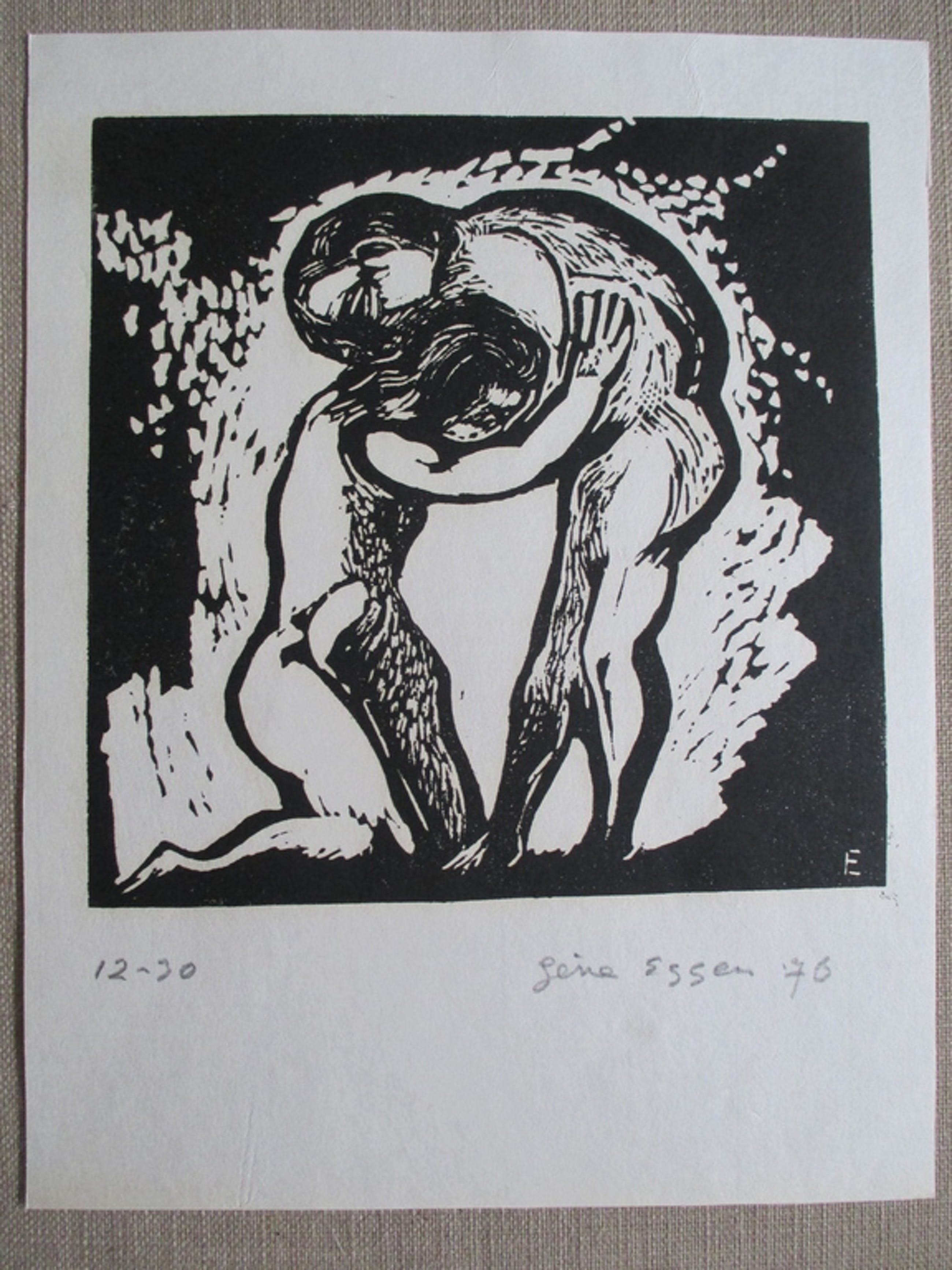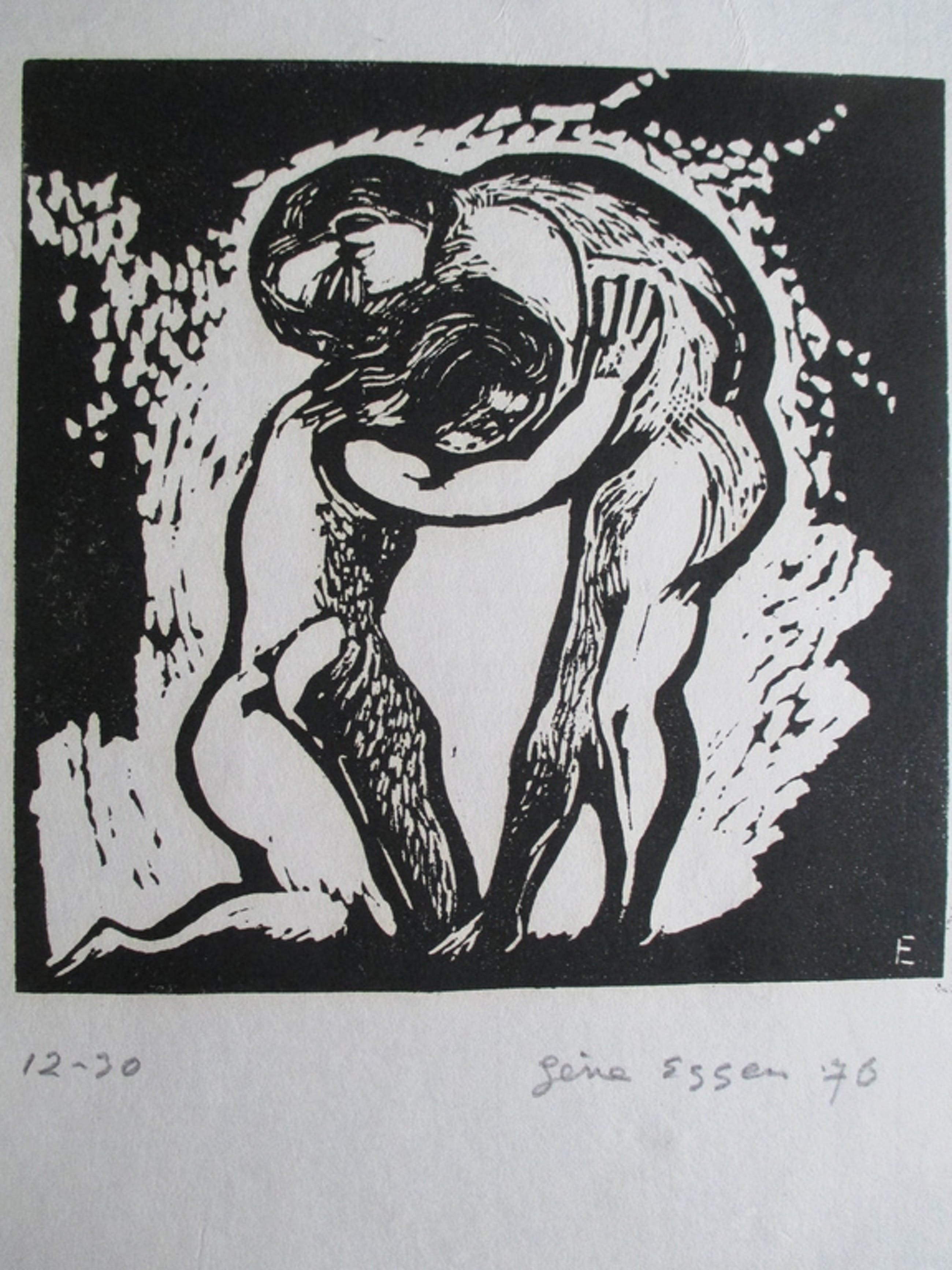 Prachtige houtsnede op dun geschept papier van Gène Eggen uit 1976 in perfecte staat. Genummerd 12/30 ex. en gedateerd en gesigneerd in potlood. Ook monogram in het blok. Afm. blad 24,3x31,5, beeld 21,2x21,2 cm.