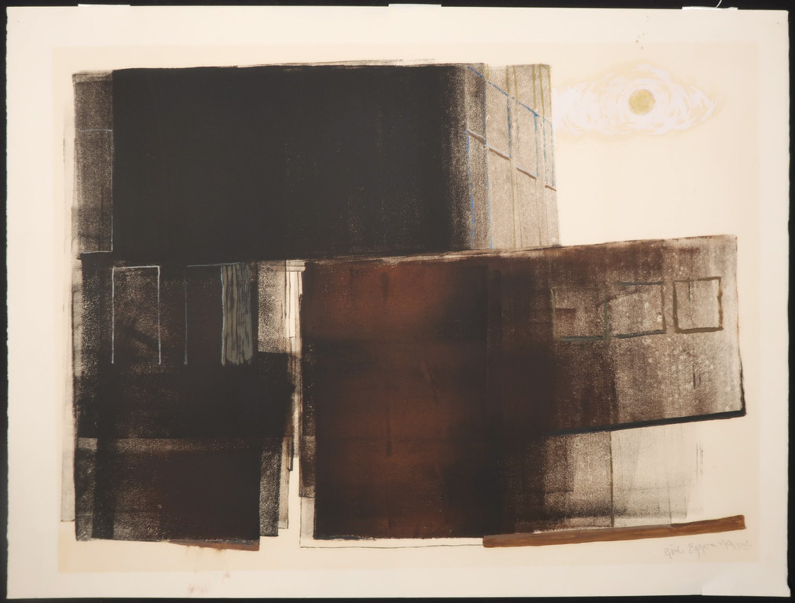 Conditie: Beeld is egaal vergeeld. Klein scheurtje in de witrand rechtsonder. Rechtsboven/linksonder in de compositie enkele oneffenheden die mogelijk zijn ontstaan tijdens vervaardiging.