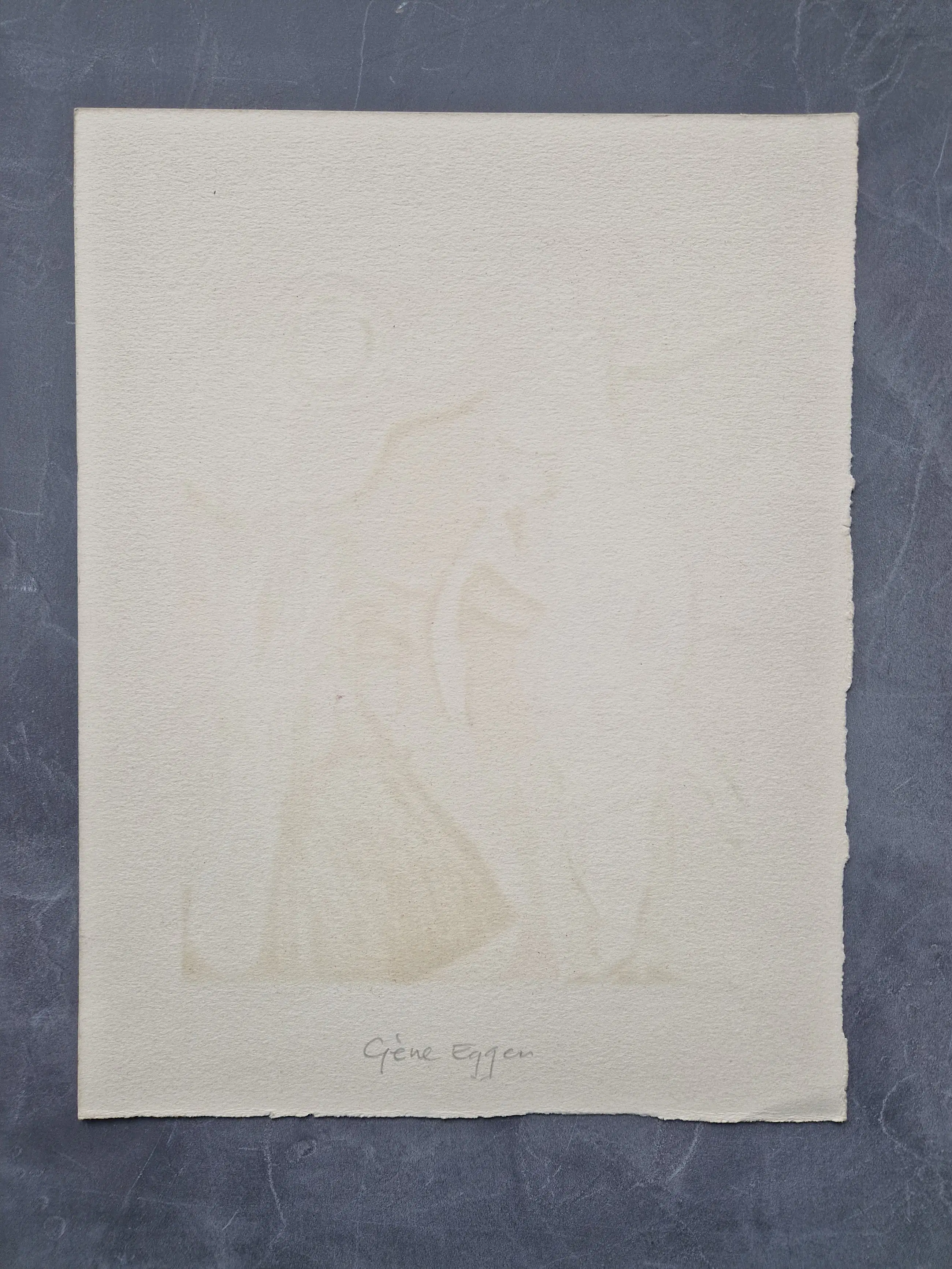 Gène Eggen begon in 1943 zijn schildersopleiding aan de Rijksacademie te Amsterdam bij professor Campendonk. Karel Appel, Corneille en Pieter Defesche zijn jaargenoten van hem. Na zijn studie ging hij weer terug naar Ulestraten om er tot zijn dood in 2000 te wonen en te werken. Hoewel Eggen is opgeleid als schilder/graficus heeft hij in veel technieken gewerkt. Als tekenaar, schilder, monumentaal kunstenaar, graficus én beeldhouwer heeft hij gezorgd voor een omvangrijk oeuvre. Ook veel monumentale opdrachten met name voor kerken, heeft Eggen uitgevoerd.