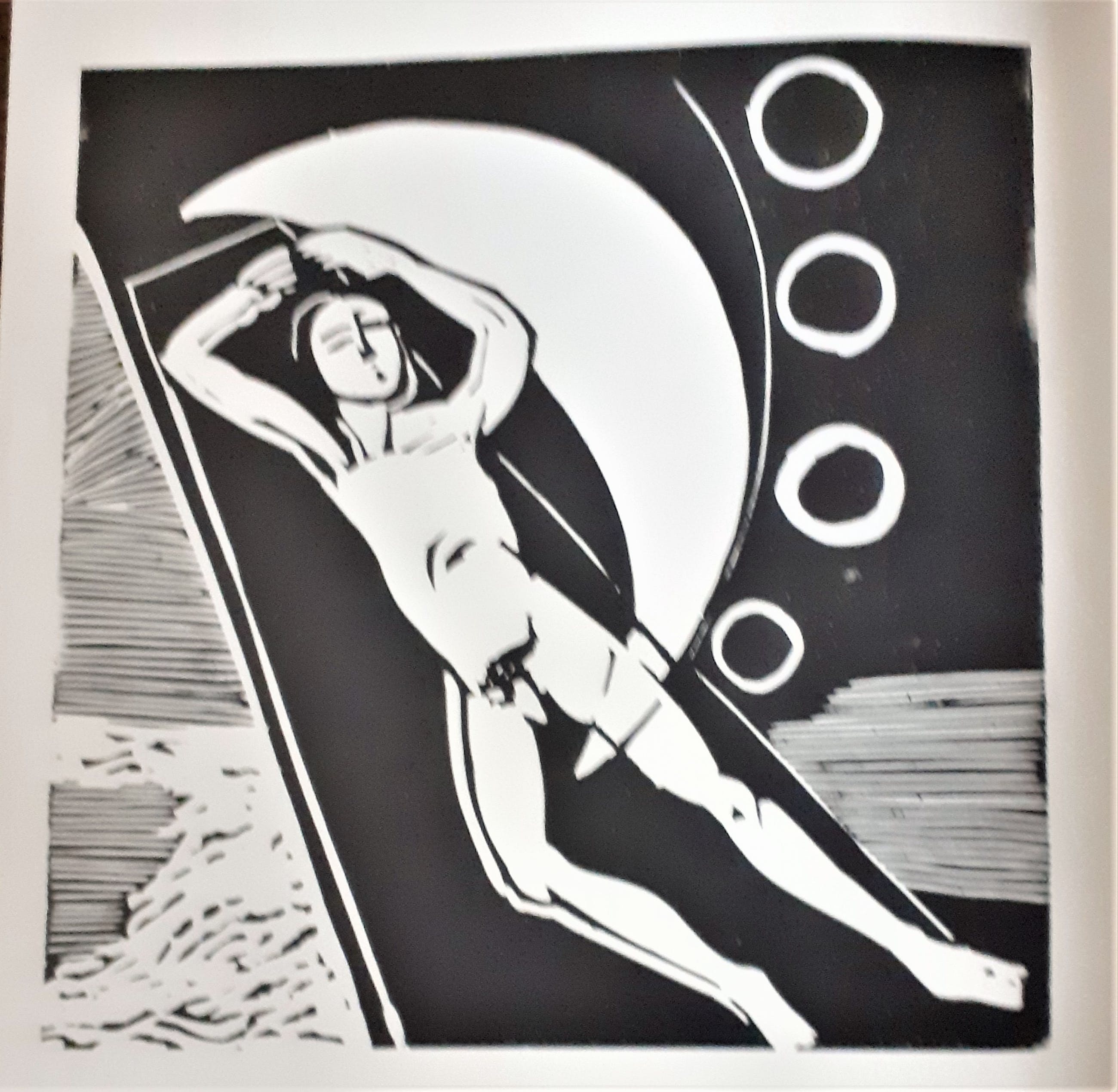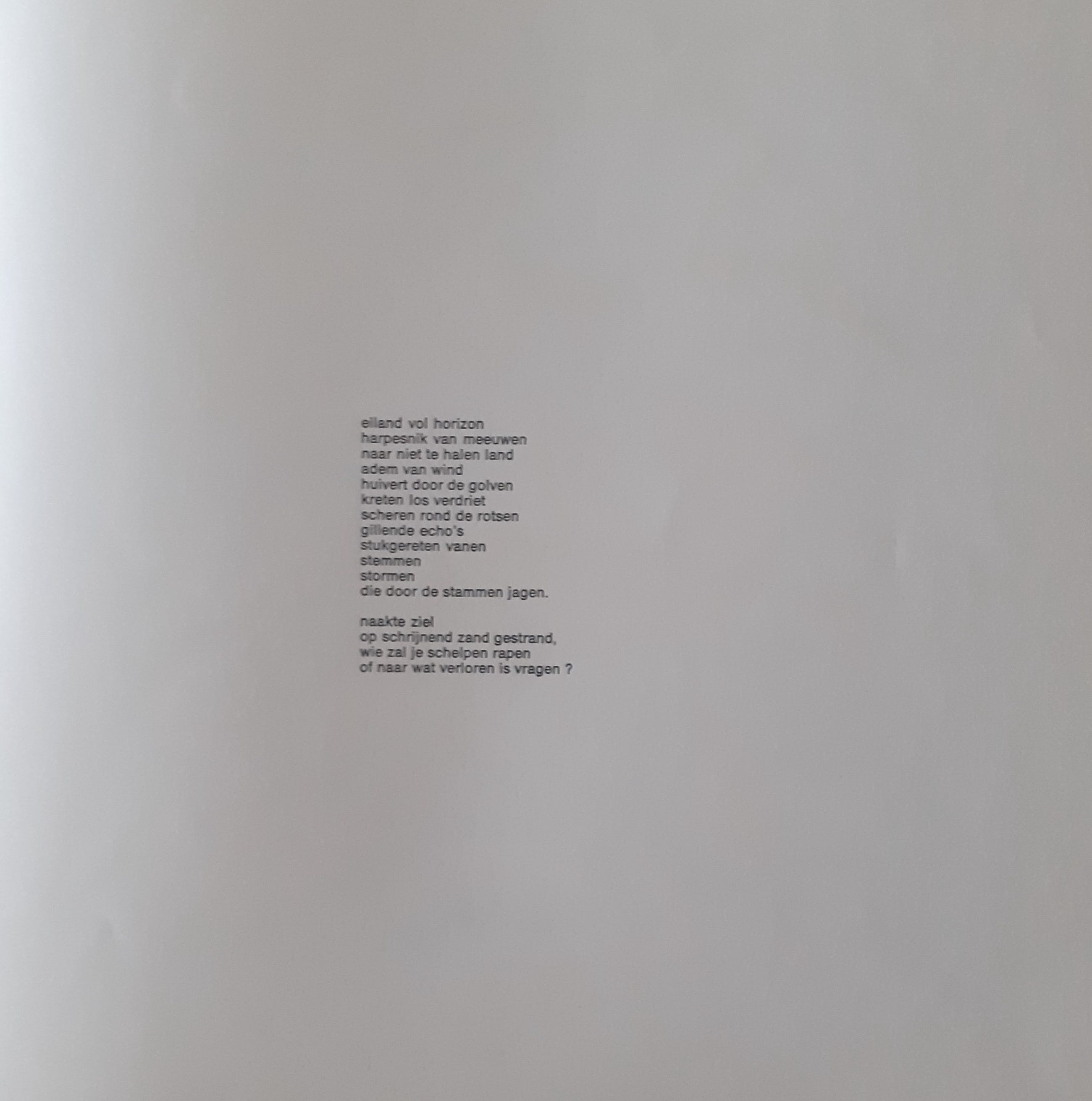 Linosneden van Gène Eggen en gedichten van Emmy Swerts 5 losse bladen met gedichten en bijbehorende lino's in een map. Gesigneerd door Eggen en Swerts. Gelimiteerde oplage, no 25/100.