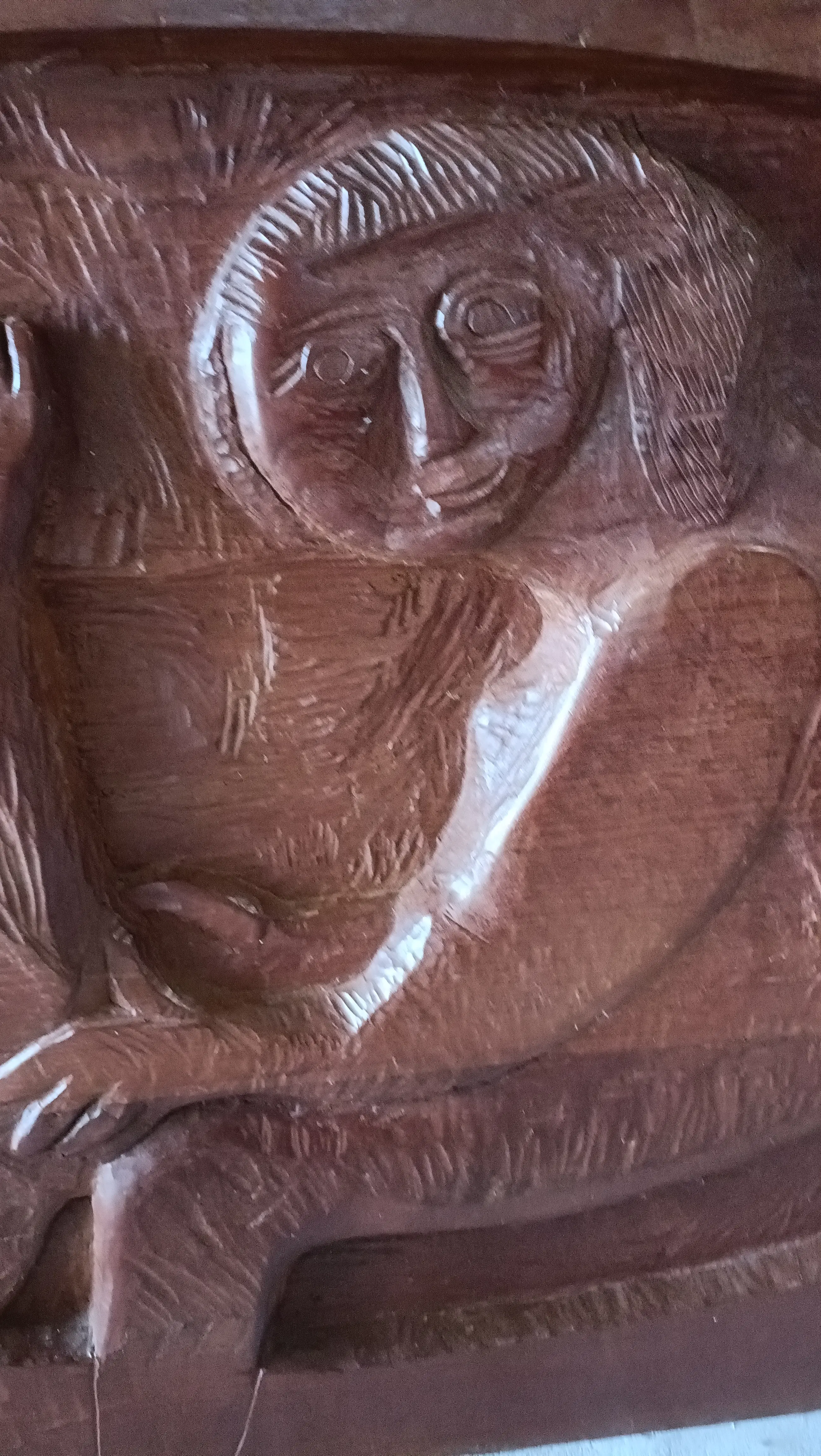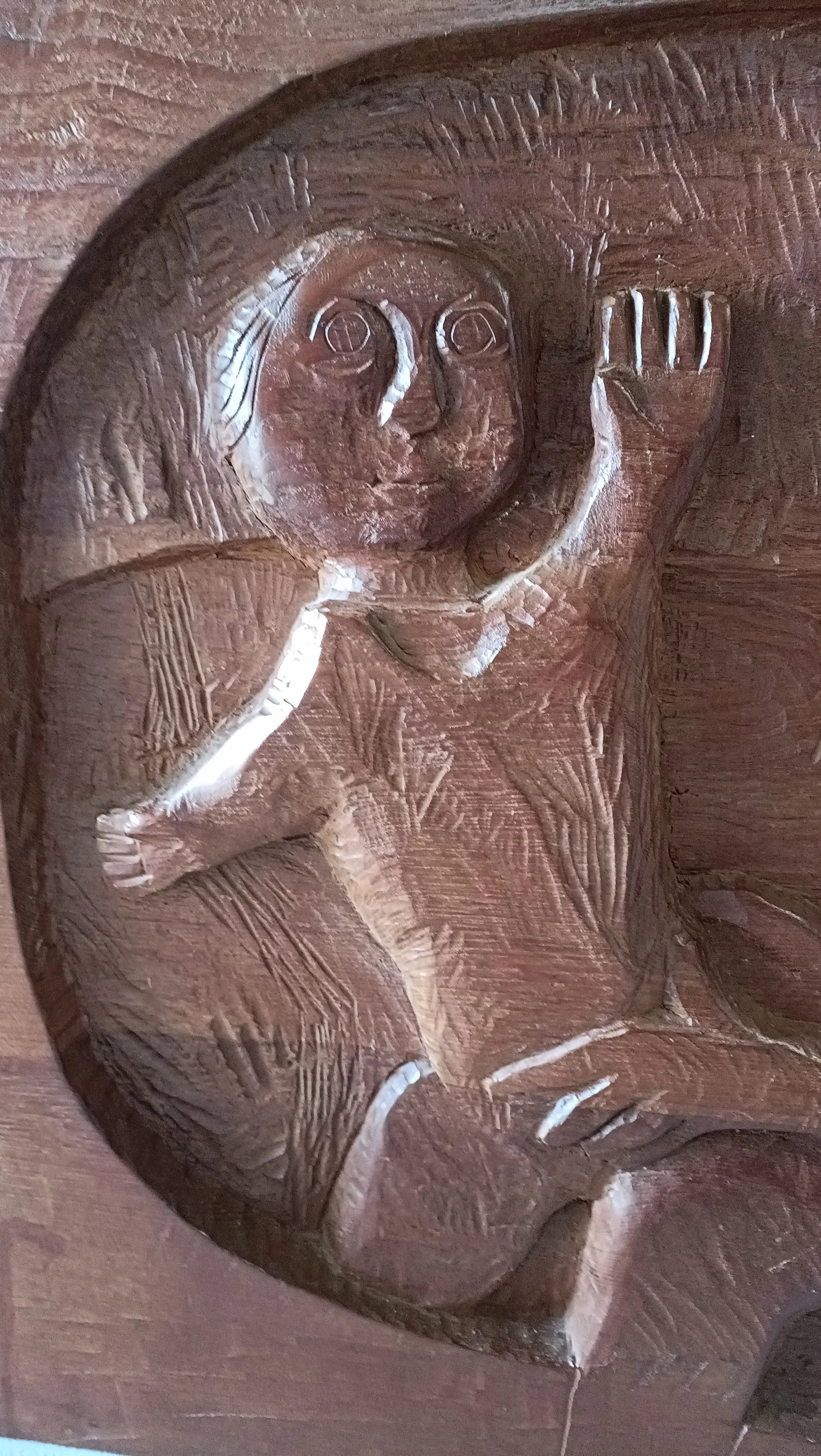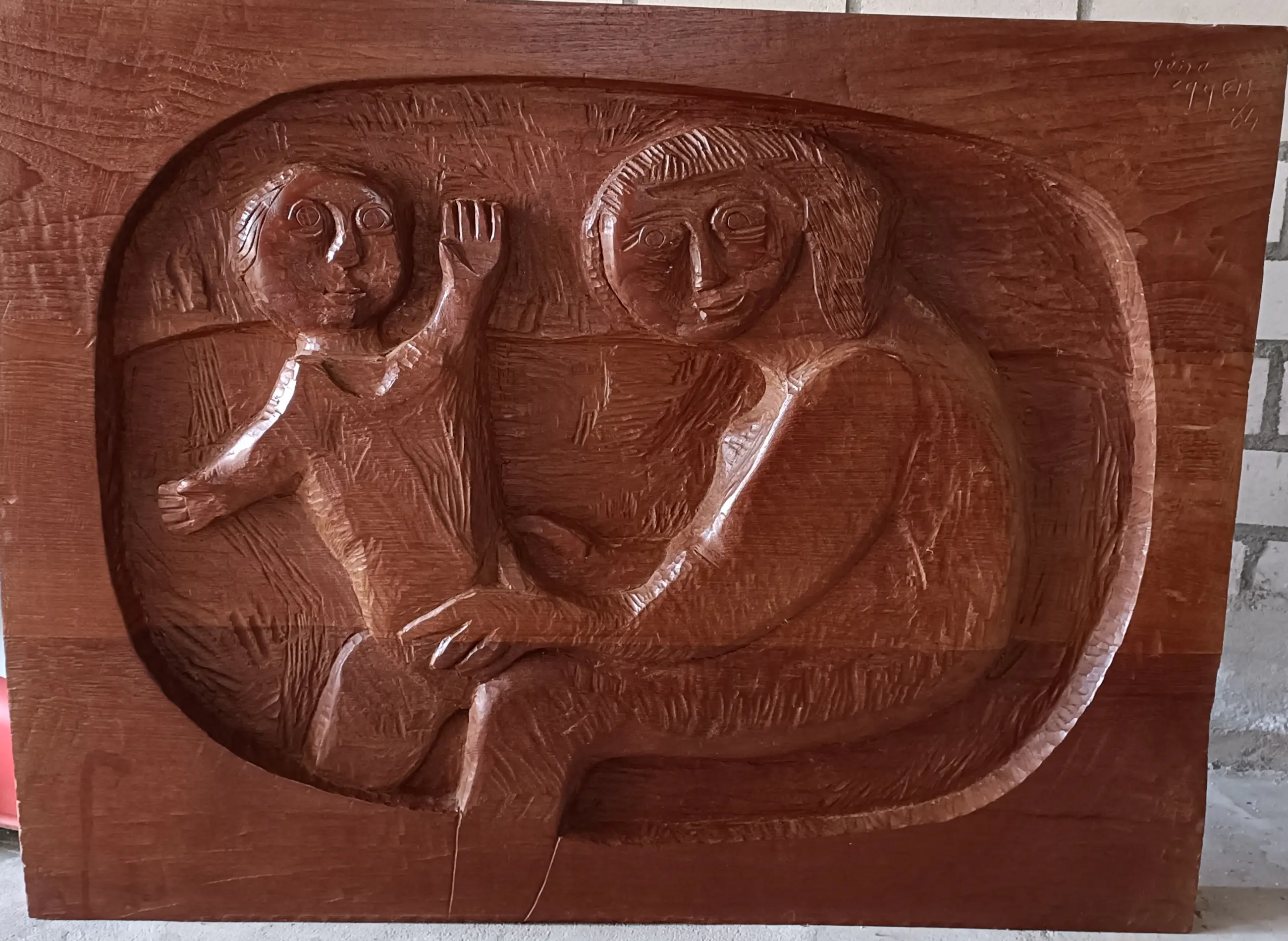 Houten paneel met originele bevestiging aan de achterzijde.