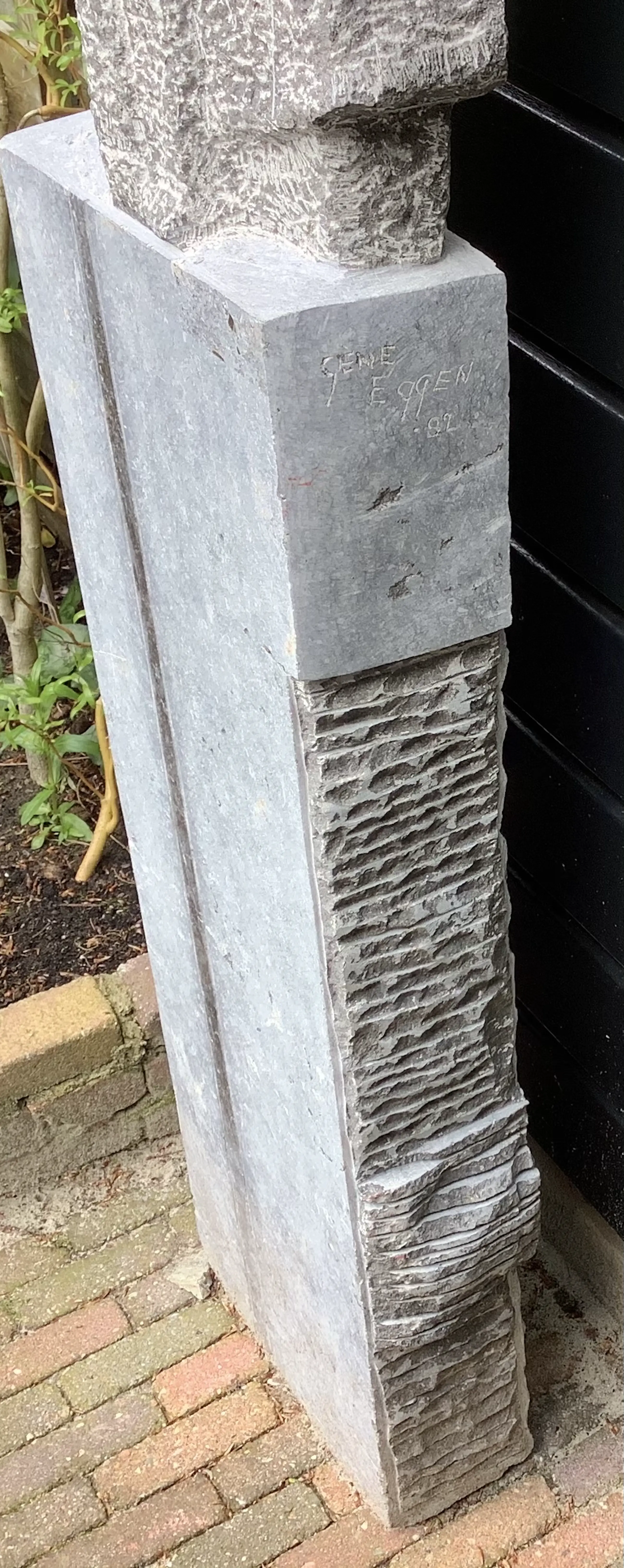 Uniek beeld van Gene Eggen. Gesigneerd en gedateerd. Gehouwen uit graniet. Ideaal voor buiten. Zeer zwaar.