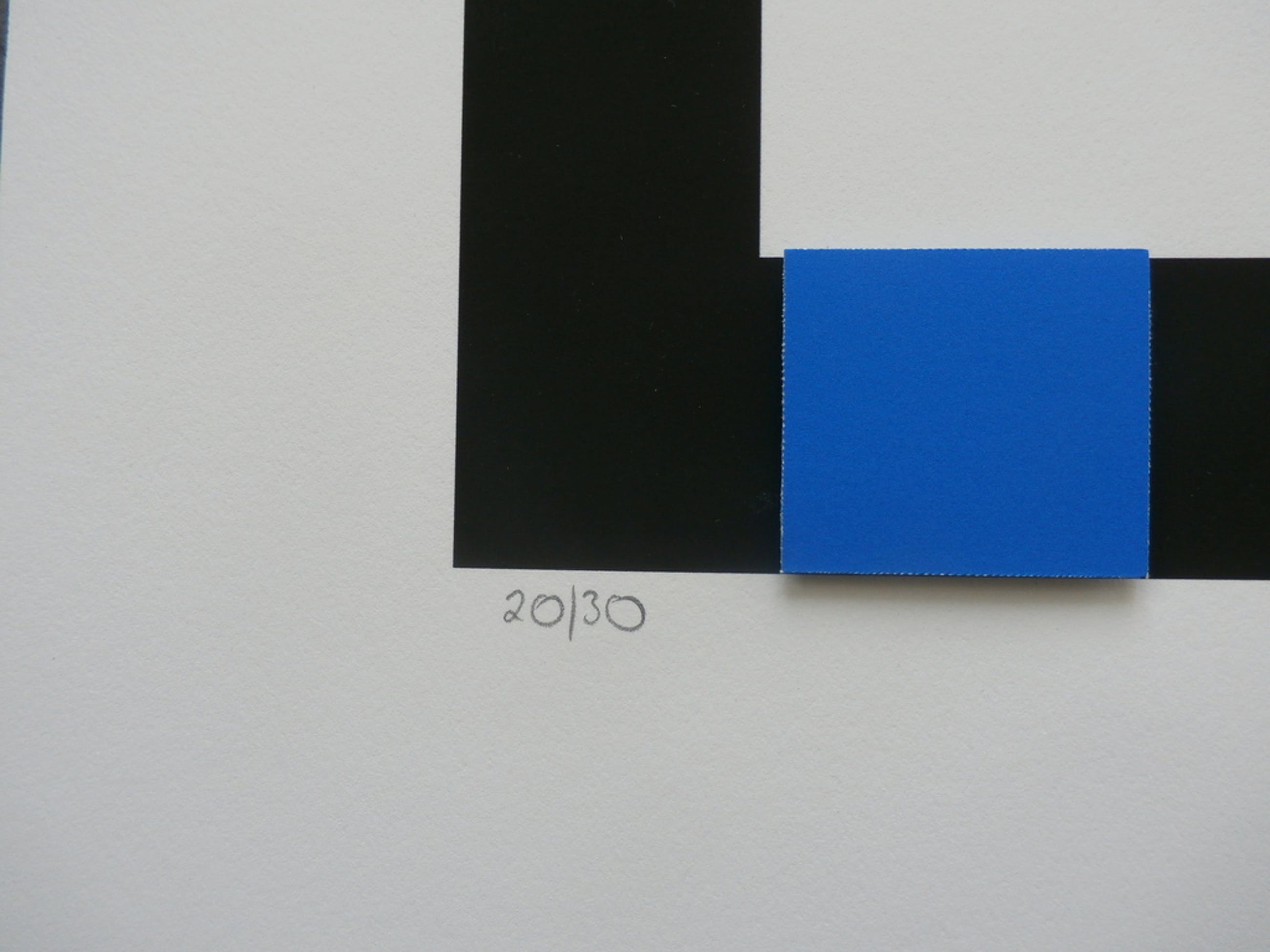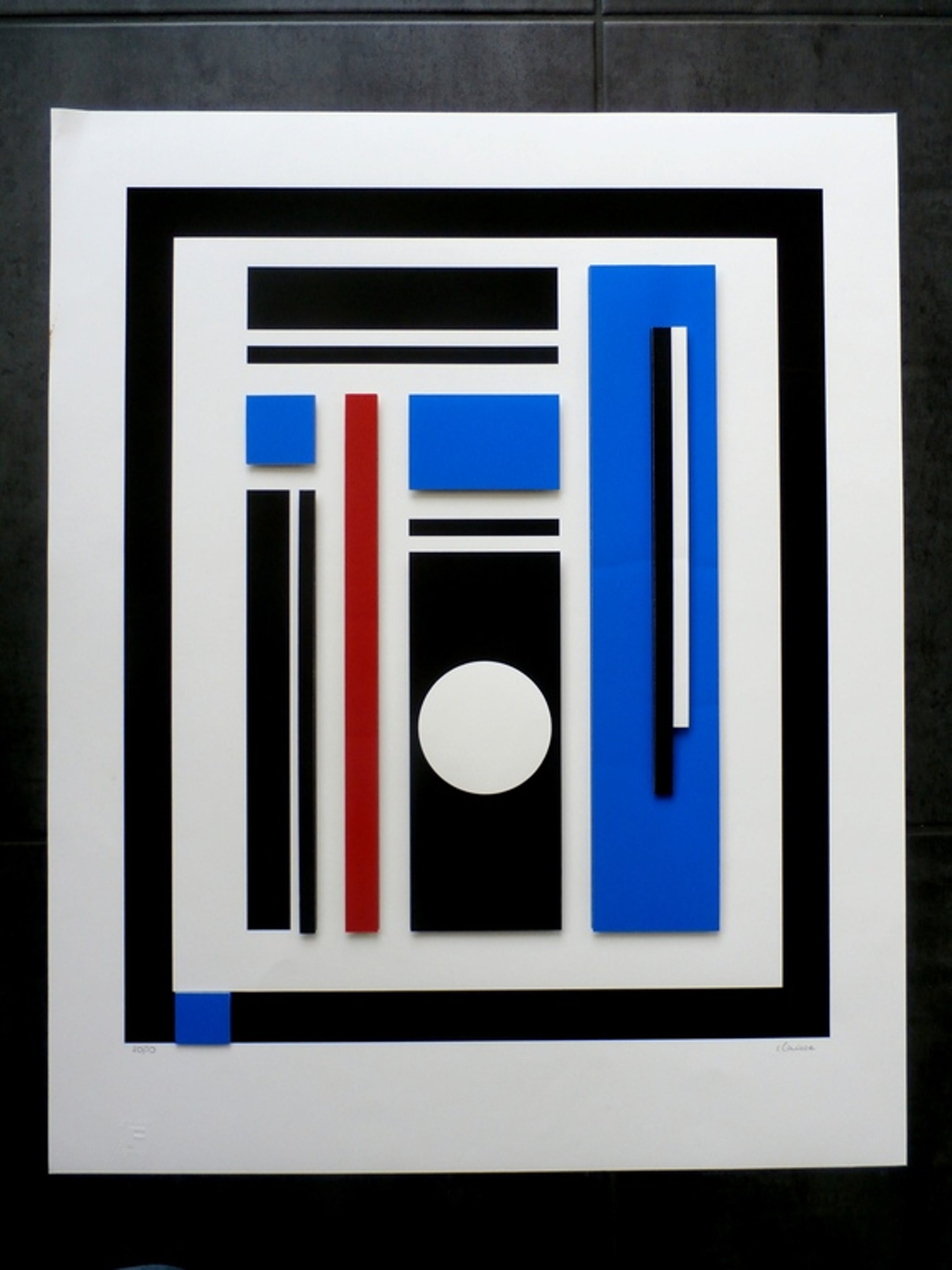 3D print van de bekende Franse kunstenares Genevieve Claisse, wier werk gerekend wordt tot de naoorlogse geometrische abstractie. Ze leeft en werkt in Parijs. Nummer: 20/30. Het werk is rechtsonder door de kunstenaar, met potlood, gesigneerd. Afmetingen blad: H75 x b61 cm. Conditie: in goede staat. Rechtsboven zit er een kleine vouw in het hoekje van het witte blad. Bij inlijsting valt dit onder de passe-partout.