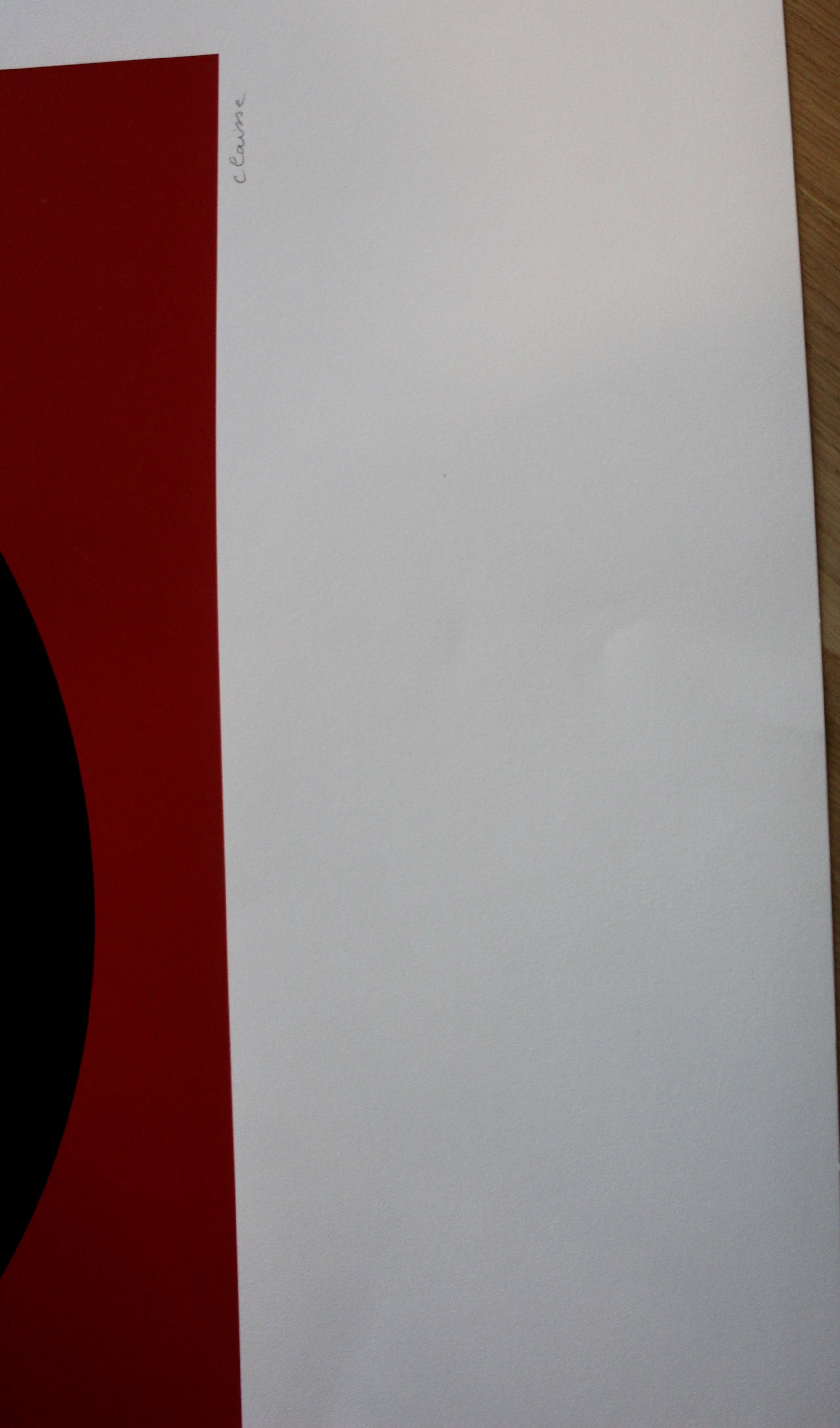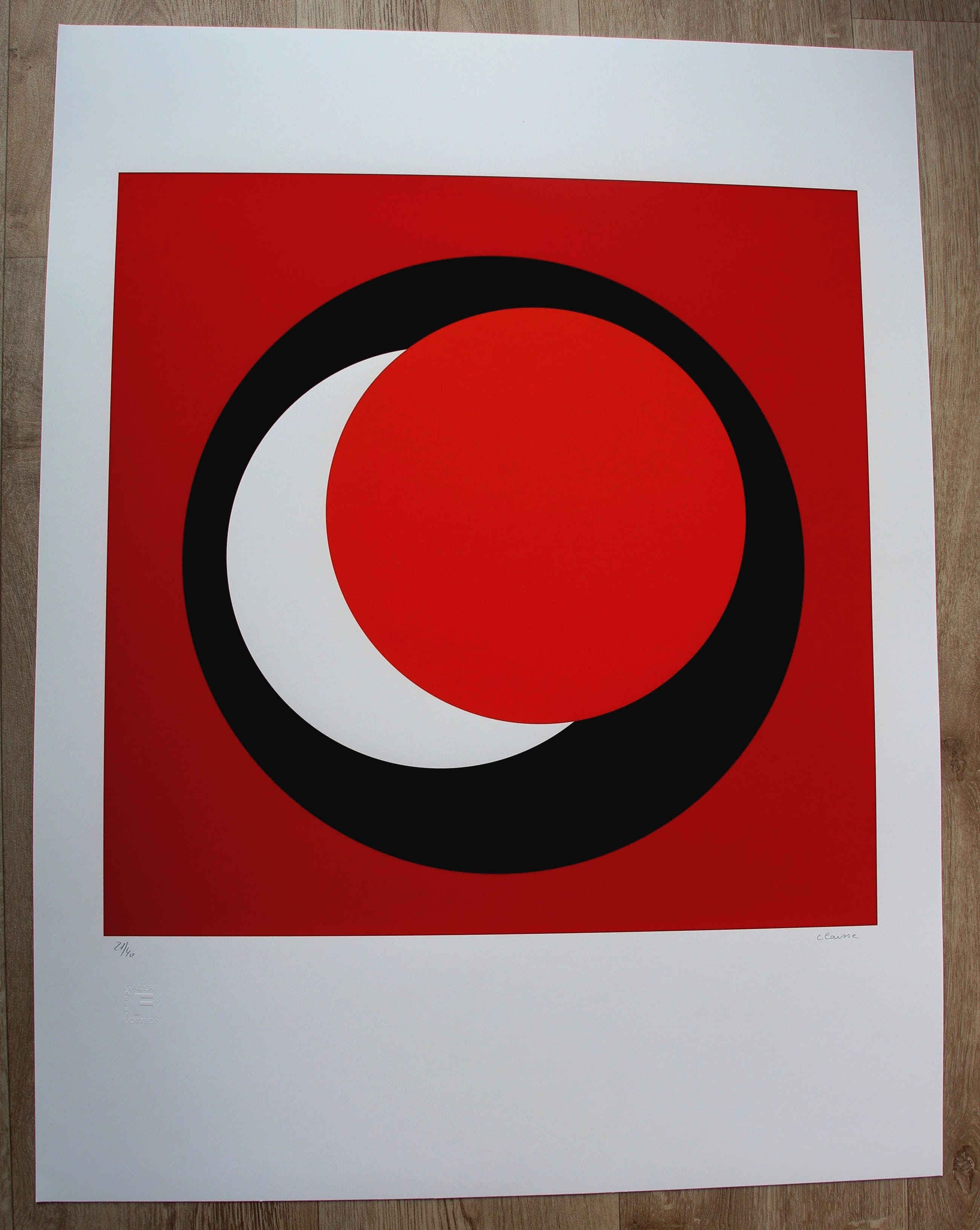 Giclee van de bekende Franse kunstenares Genevieve Claisse, wier werk gerekend wordt tot de naoorlogse geometrische abstractie. Ze leeft en werkt in Parijs. Titel: Circle rouge. Nummer: 21/40. Afmetingen blad: H80 x b60cm. Afmetingen voorstelling: H51 x b51cm.