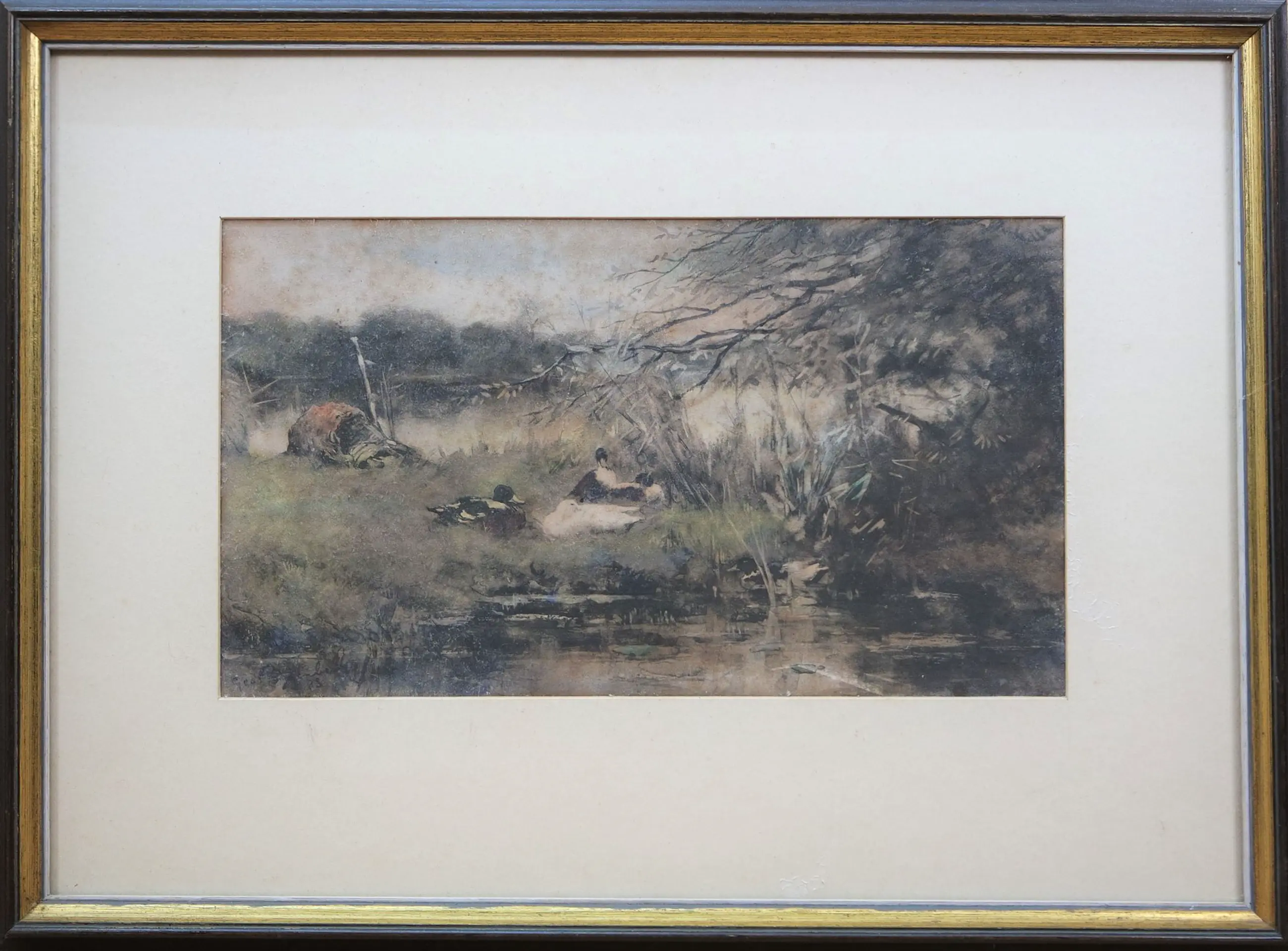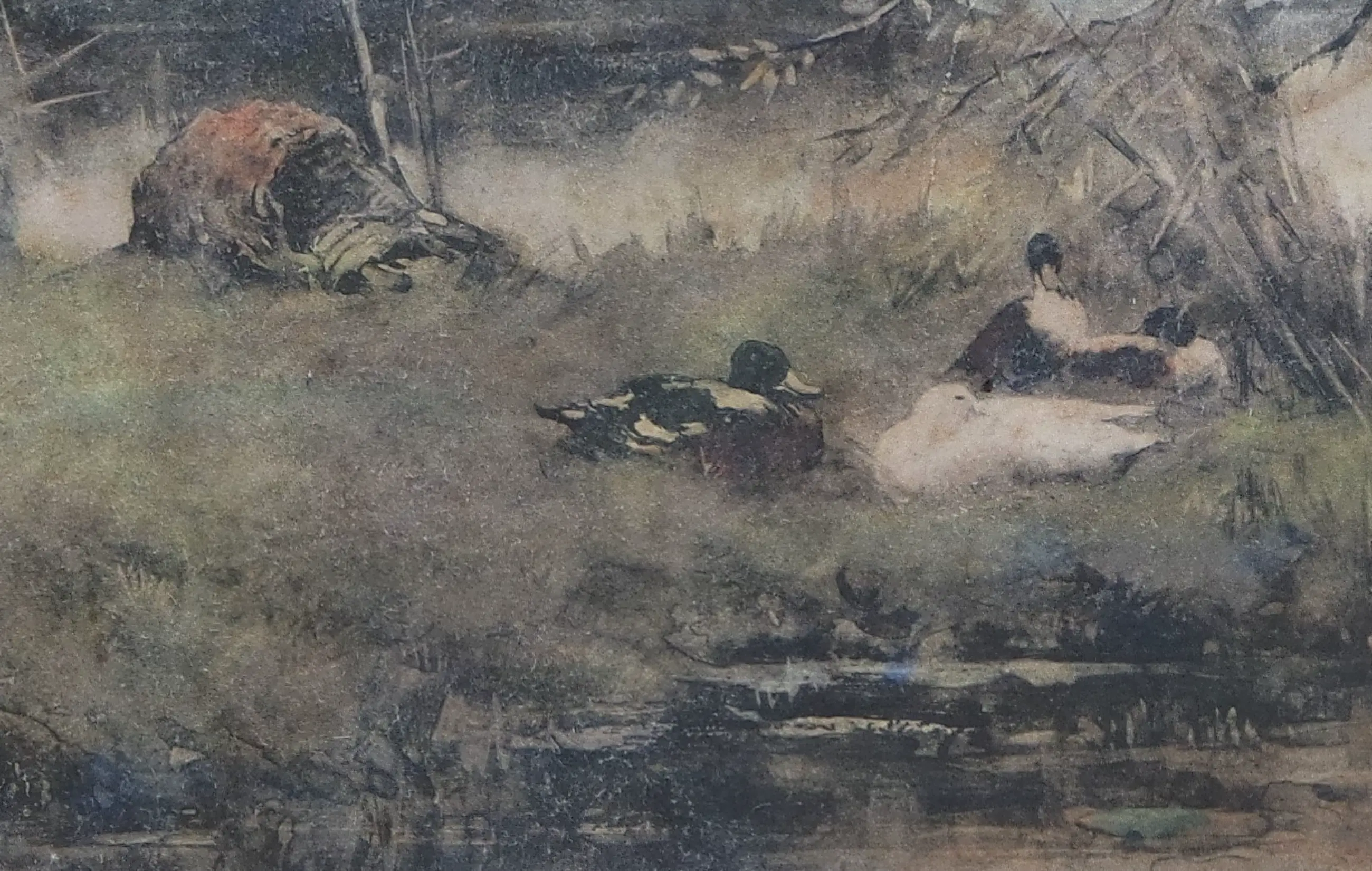 Een prachtig kunstwerk ( titel: "landschap met eenden", kleurenlitho ) van de Nederlandse kunstenaar Geo Poggenbeek (1853-1903). Met een mooie lijst en passe-partout. In de druk gesigneerd, links onder en gedateerd 1888. De conditie van het werk is goed. Het kunstwerk is te bezichtigen bij Kunsthandel Martins te 2e Exloermond (Drenthe).