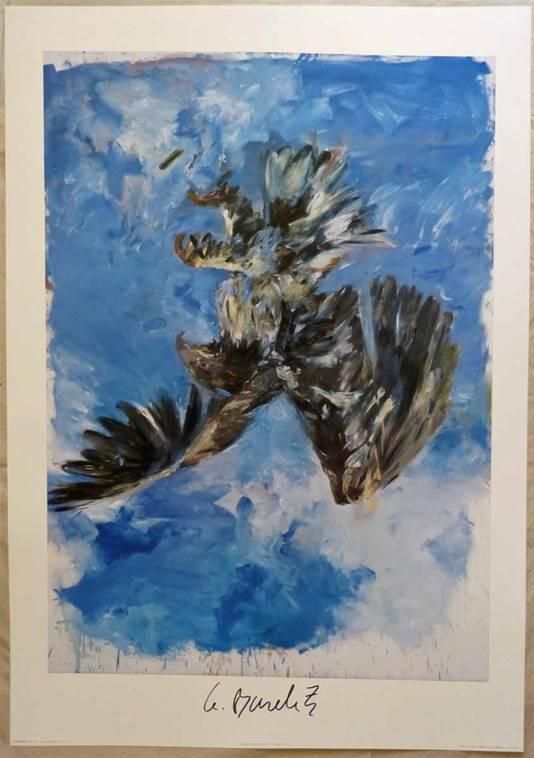 Sehr schöne Offsetlithographie von 2007 auf dünnem Karton. Titel: Adler. Größe: 100cm x 70cm. Zustand: sehr gut. Unter dem Motiv die Gefälligkeitssignatur des Künstlers. Versicherter Versand innerhalb Deutschlands 20.- Euro, EU und weltweit auf Anfrage. Dies ist ein Privatverkauf, dies bedeutet, mit Abgabe eines Gebotes erklären Sie sich ausdrücklich auf eine Ihnen gesetzlich zustehende Garantie auf Gebrauchtwaren und Neuwaren völlig zu verzichten. Garantie und Umtausch sind ausgeschlossen.