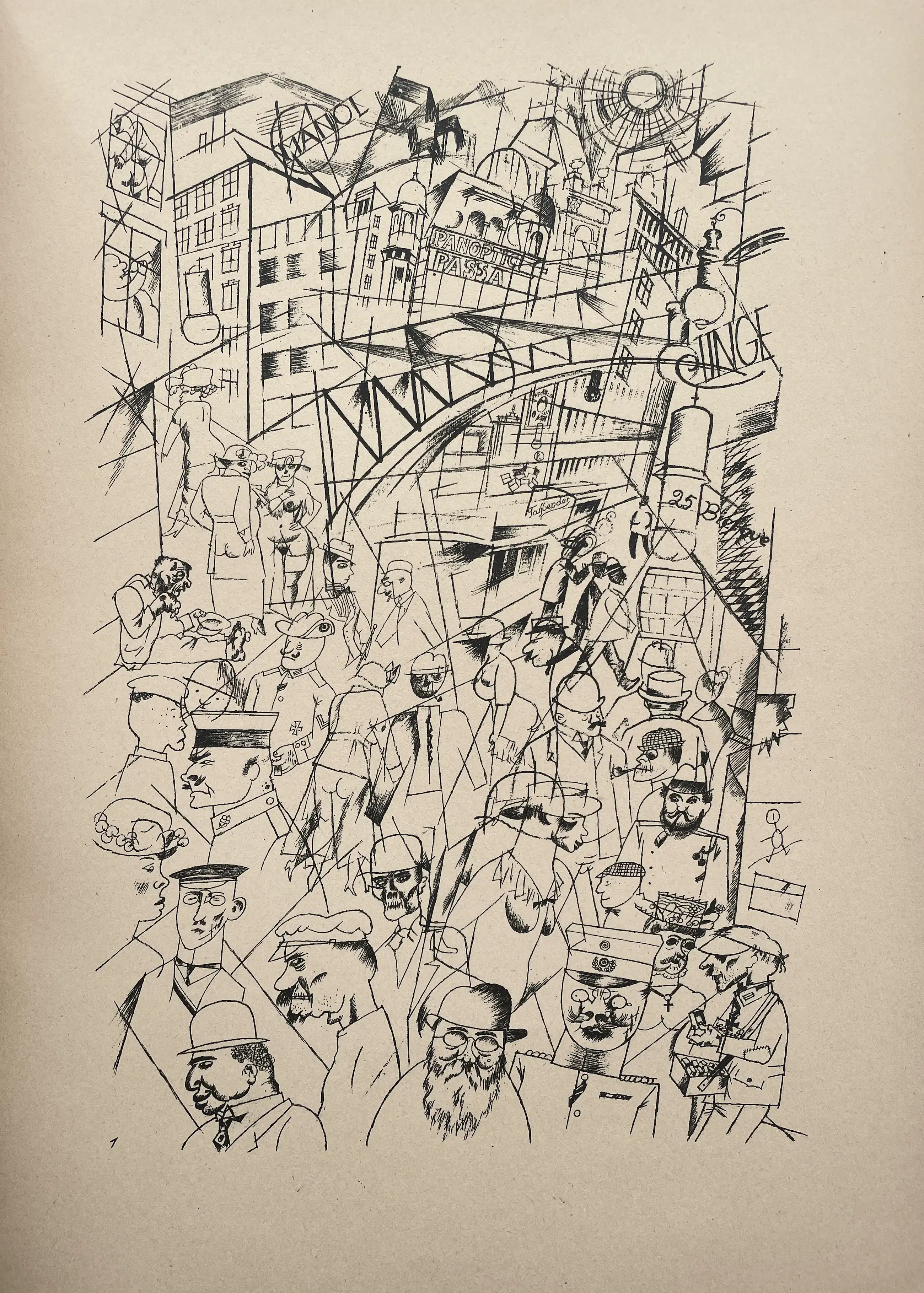 Hier is editie D, die volgens Dückers "uiterst zelden wordt aangeboden". Op 23 april 1923 werd het werk op last van de arrondissementsrechtbank Charlottenburg in beslag genomen. Dückers: "Het totale aantal volledige uitgaven moet echter hoe dan ook worden teruggebracht, aangezien een van de uitkomsten van het proces tegen Grosz en de redacteuren wegens 'verspreiding van obscene geschriften' de inbeslagname was" ... van talrijke motieven.