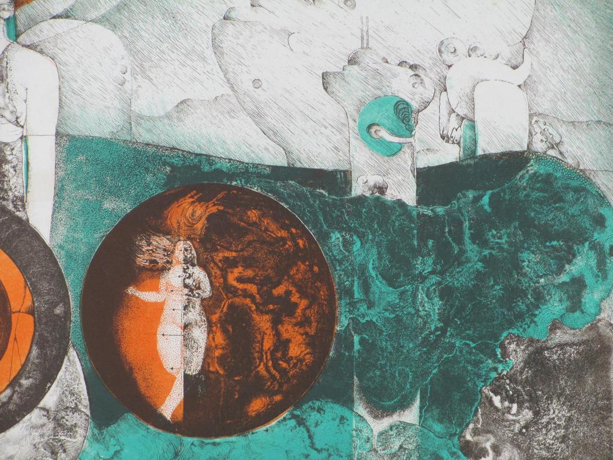 Kleurenlitho door Georg Hadeler