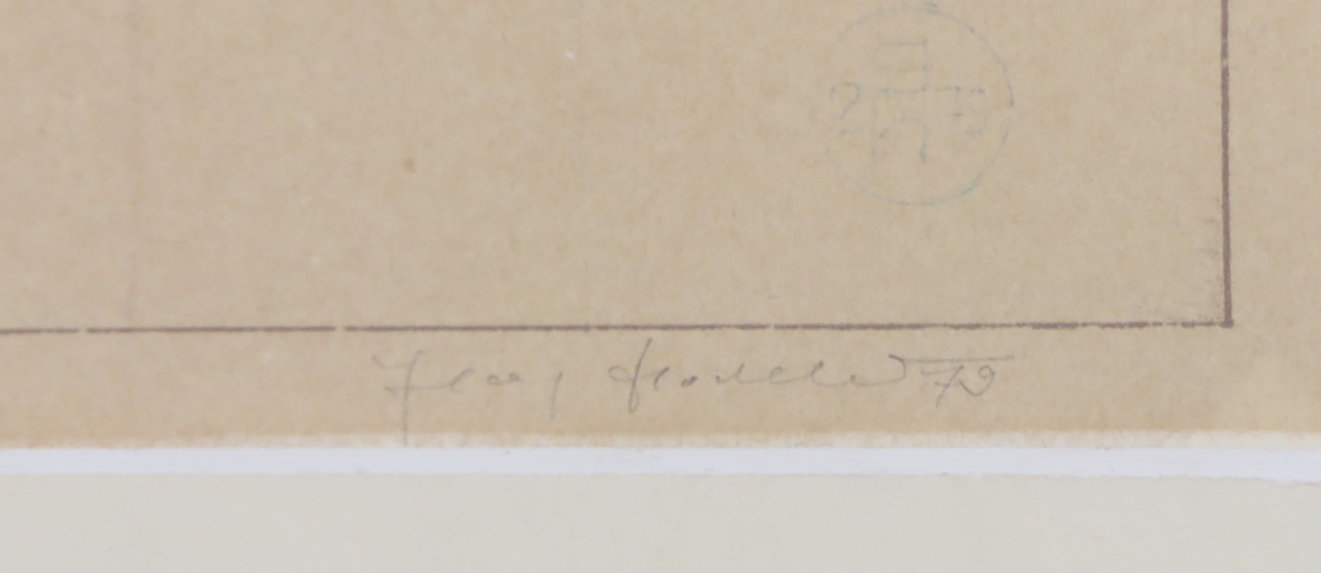 | Het werk is verkleurd en heeft wat lichte krasjes/vlekjes in het beeld. Passe-partout is verkleurd en heeft wat waterschade. | |||
