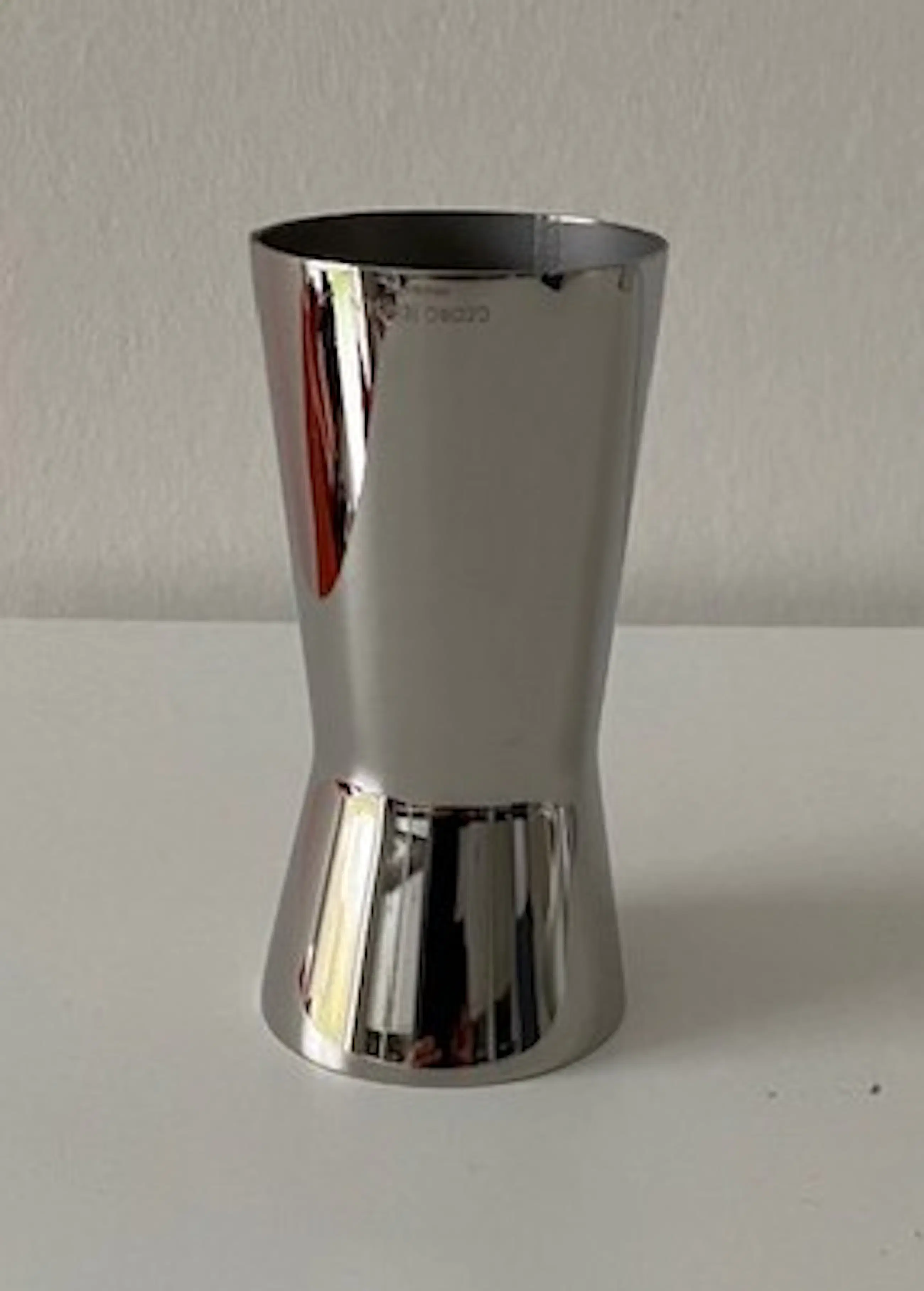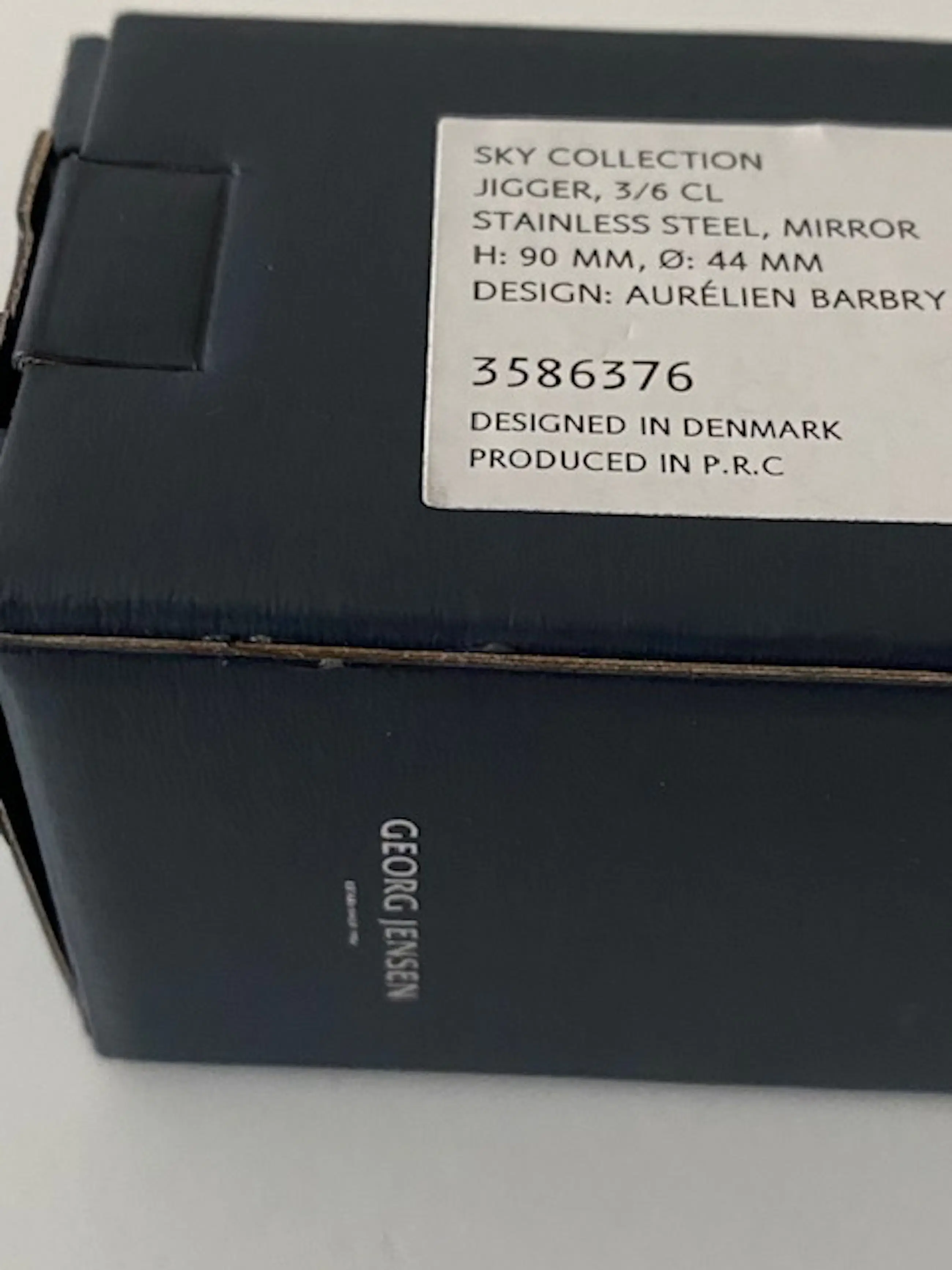 Georg Jensen Denmark Sky collection maatbeker (jigger) Dubbele maatbeker voor cocktails RVS Ontwerp Aurelien Barbry 2017 Nieuw in doos Hoogte 8,5 cm Gesigneerd Georg Jensen Gemerkt 1 en 3 cl