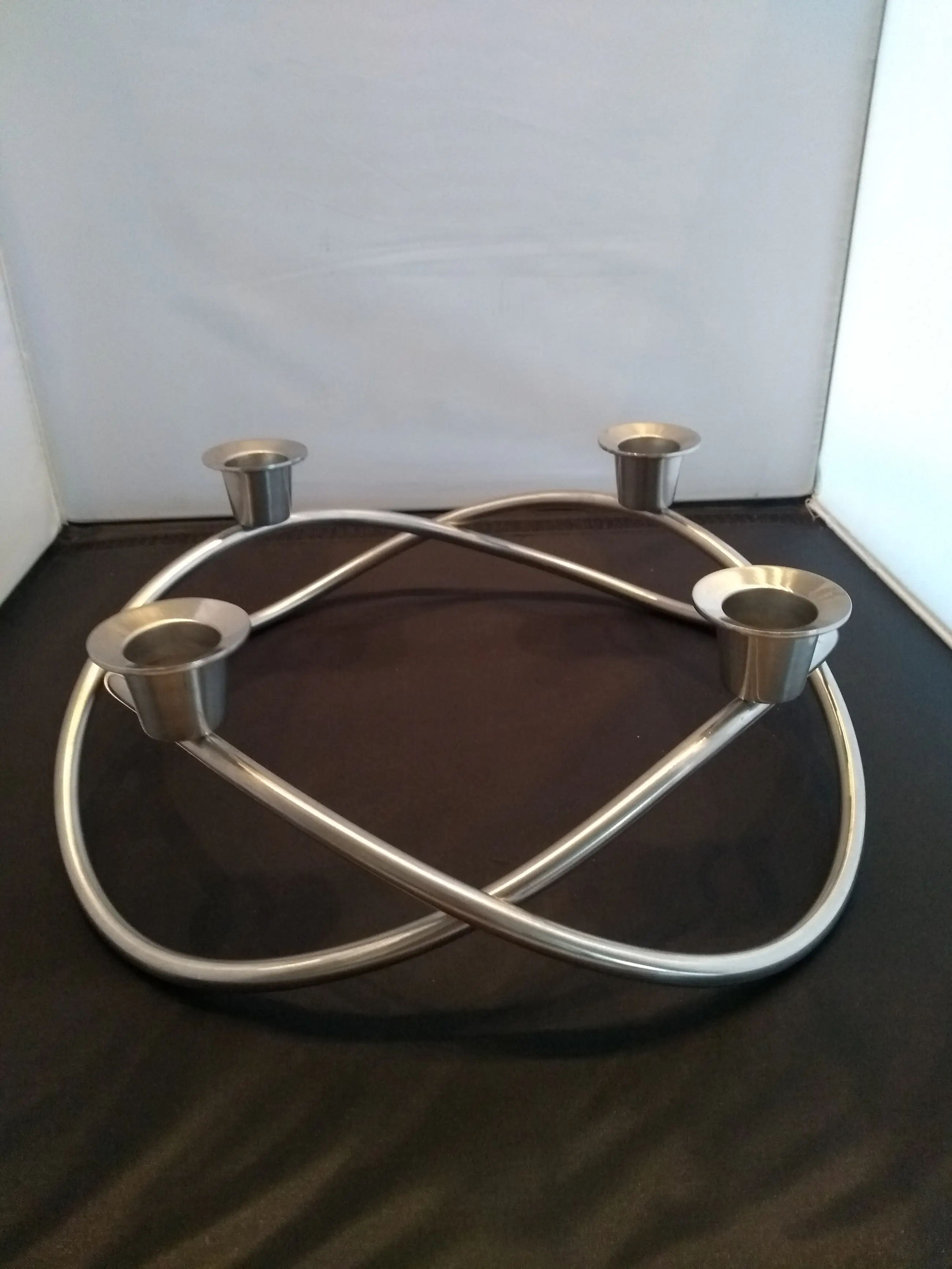 Glanzend RVS kandelaar seasons. Ontworpen door Maria Berntsen. Hoogte 9 cm,diameter 26 CM. Gewicht 758 gram. Perfecte staat,gemerkt met GEORG Jensen. Verzenden naar Nederland met track &trace is 18,1 euro. Mvg.