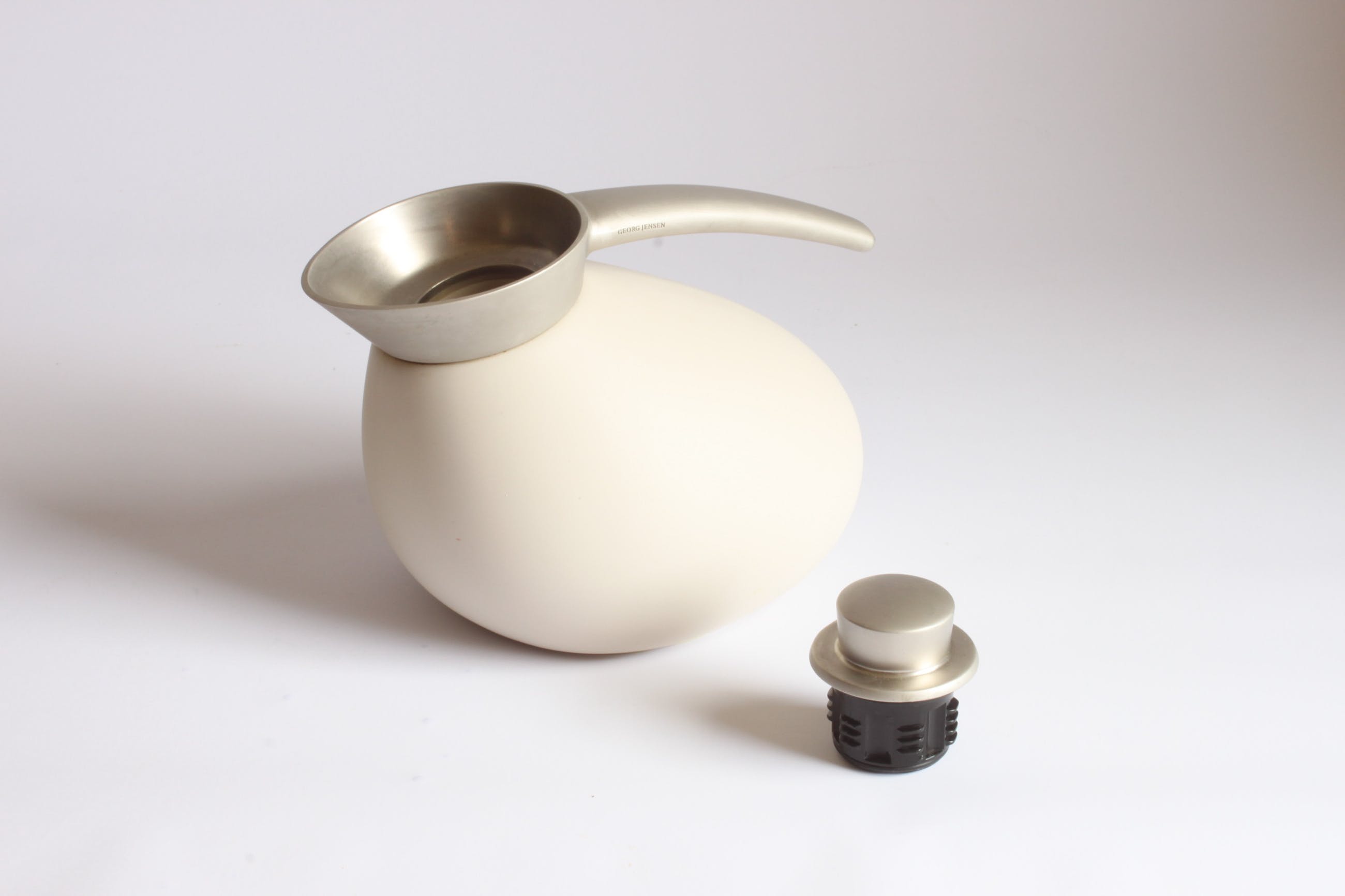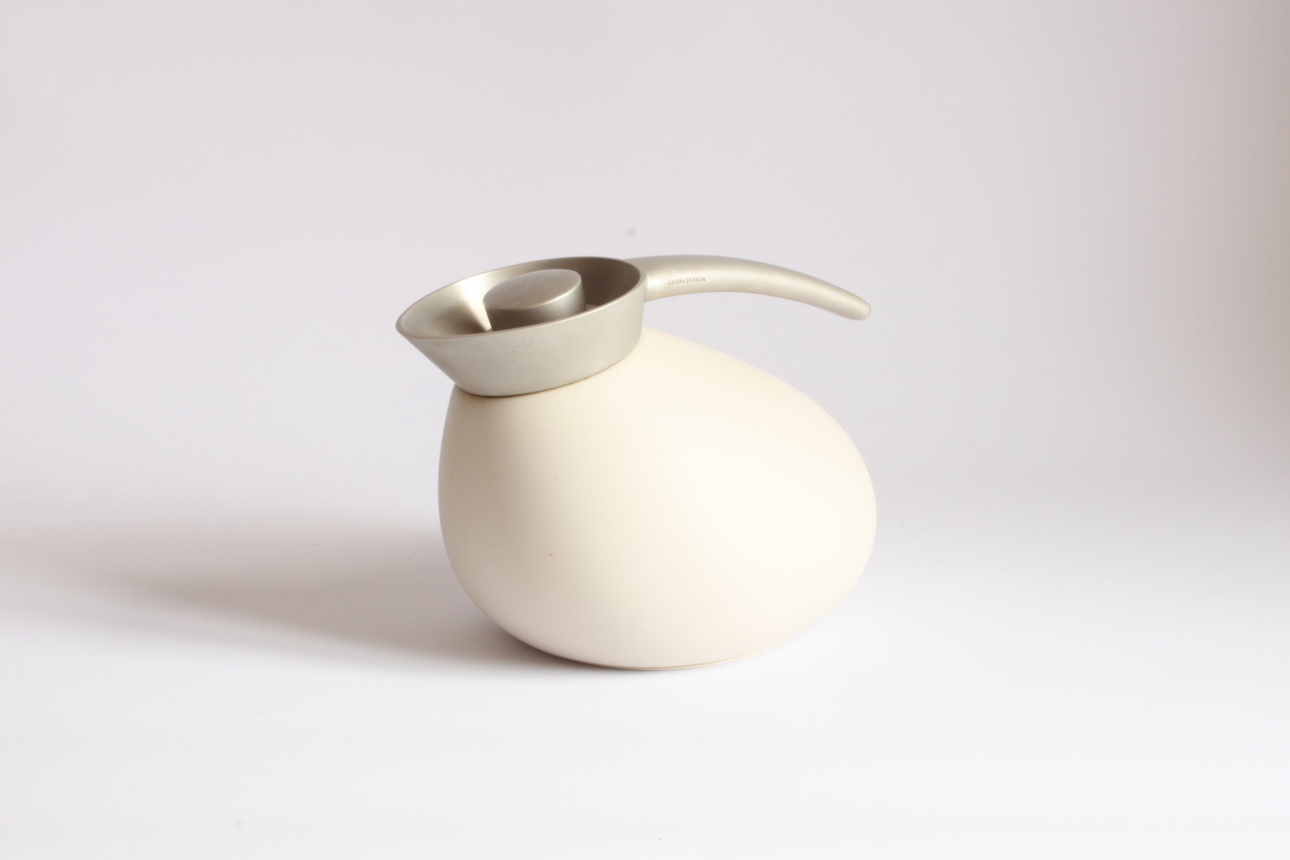 Deze kan, een ontwerp van Maria Berntsen voor Georg Jensen heeft de geabstraheerde vorm van een eendje.