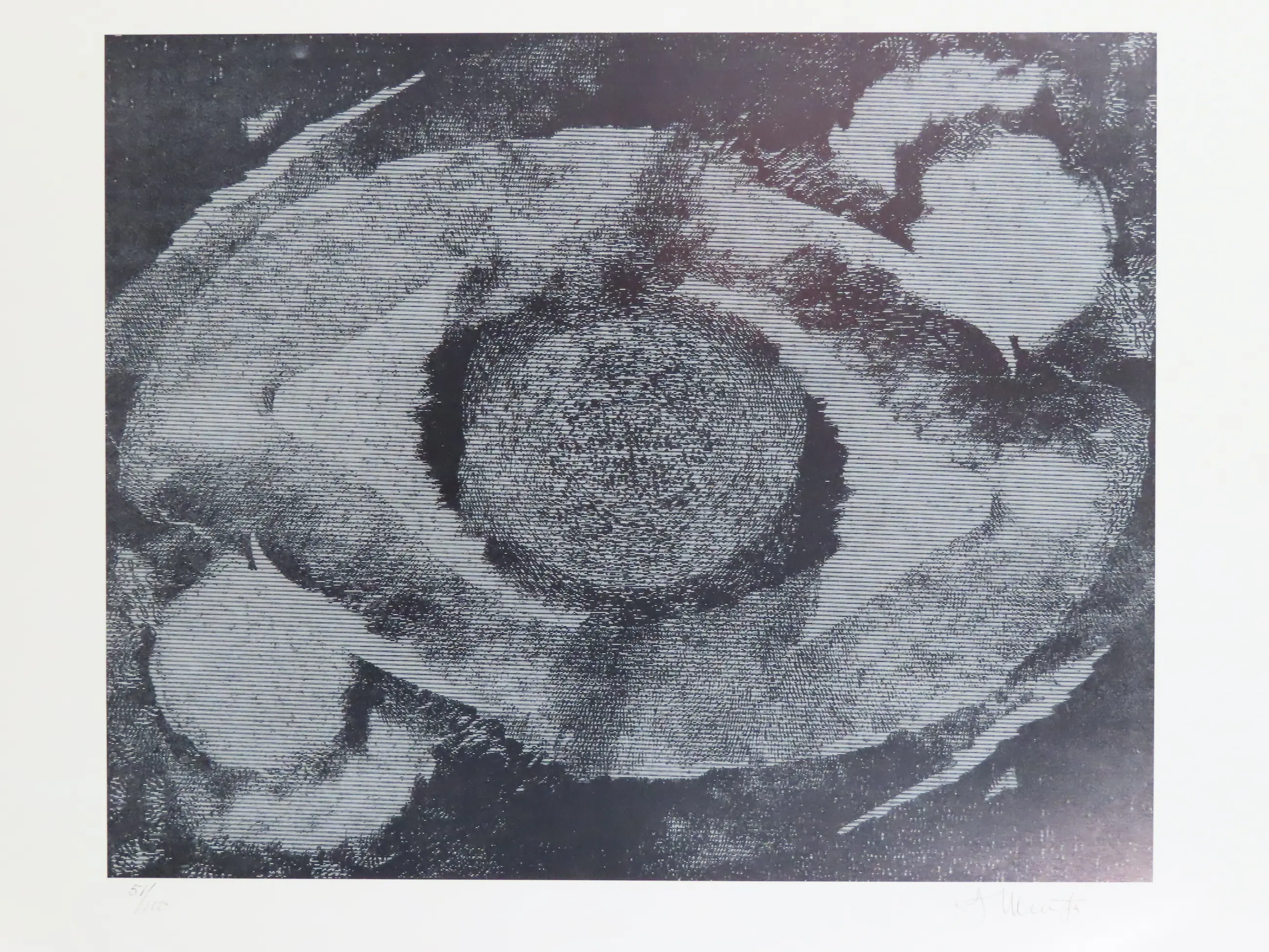 "Variographie". Georg Muche. Nemisee, Auge der Diana. Eén van de werken grafiekstukken uit zijn de serie Nemisee. Handgesigneerd en genummerd in pen.